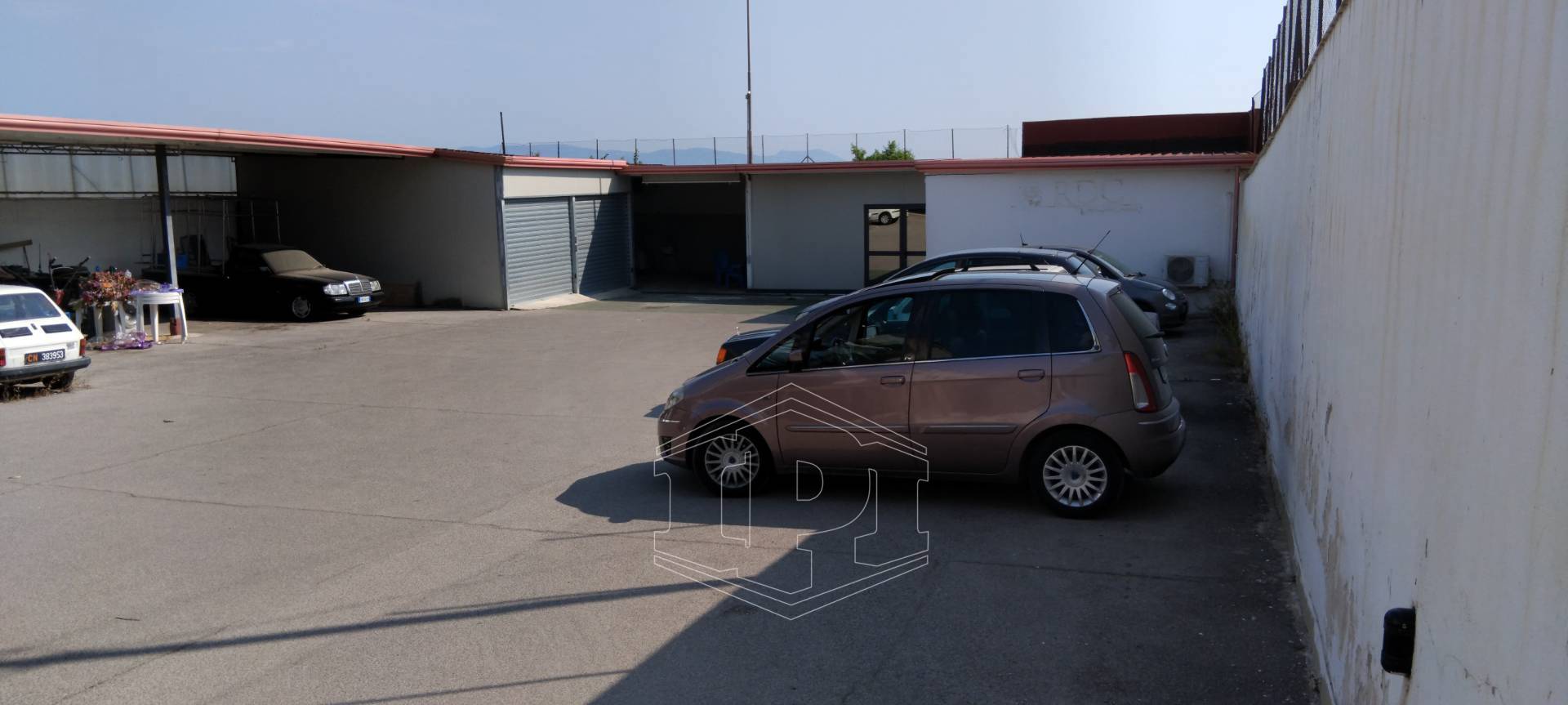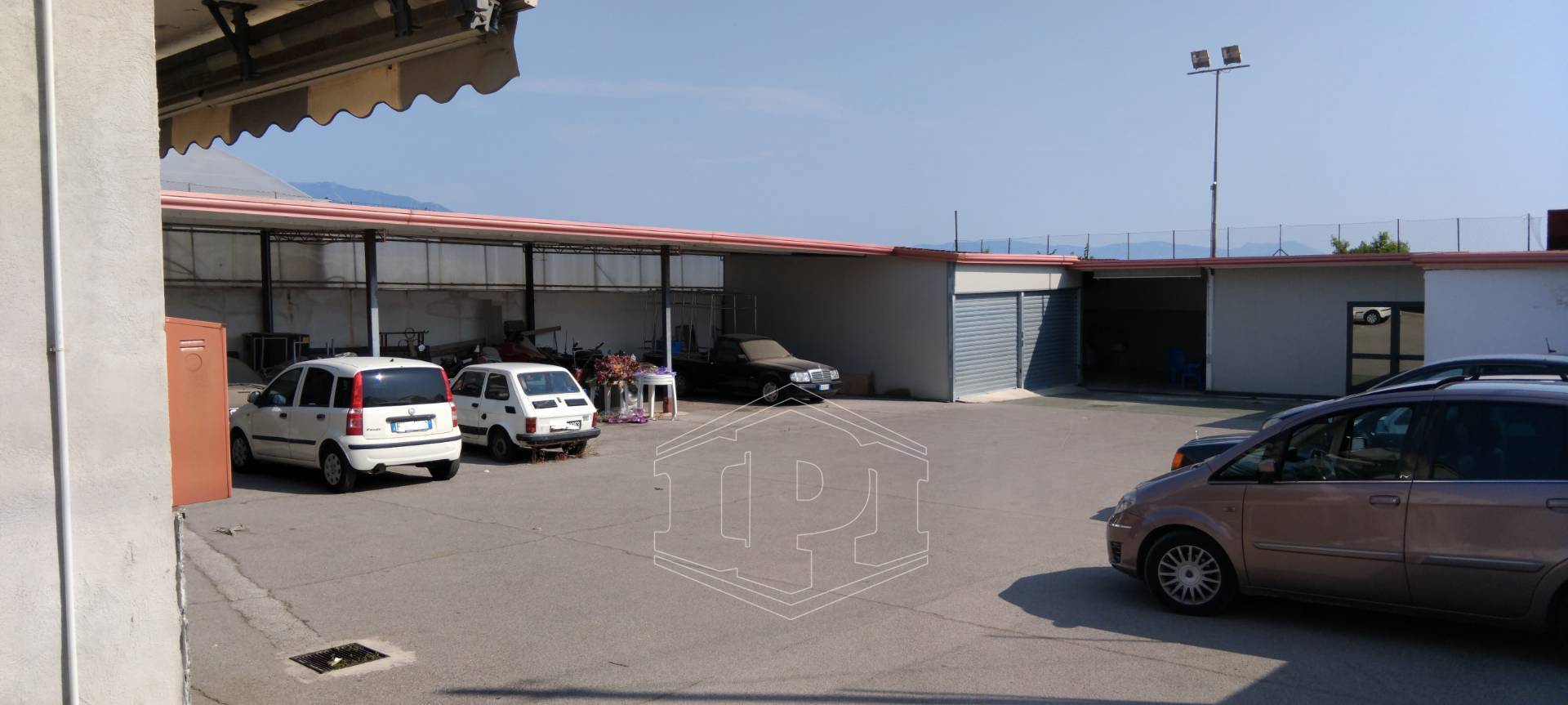 - L'area scoperta antistante è di circa 250 mq parzialmente coperta da tettoia