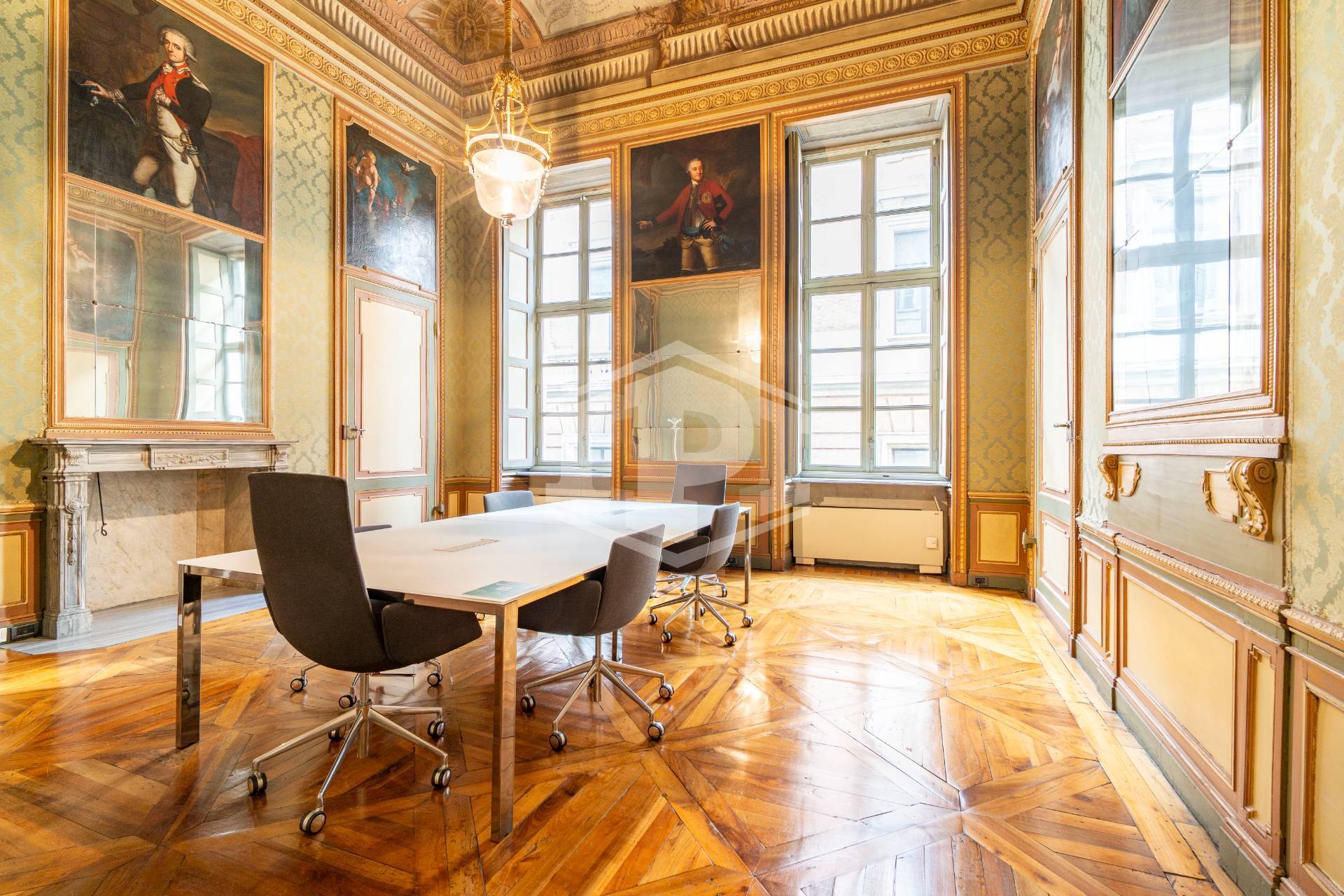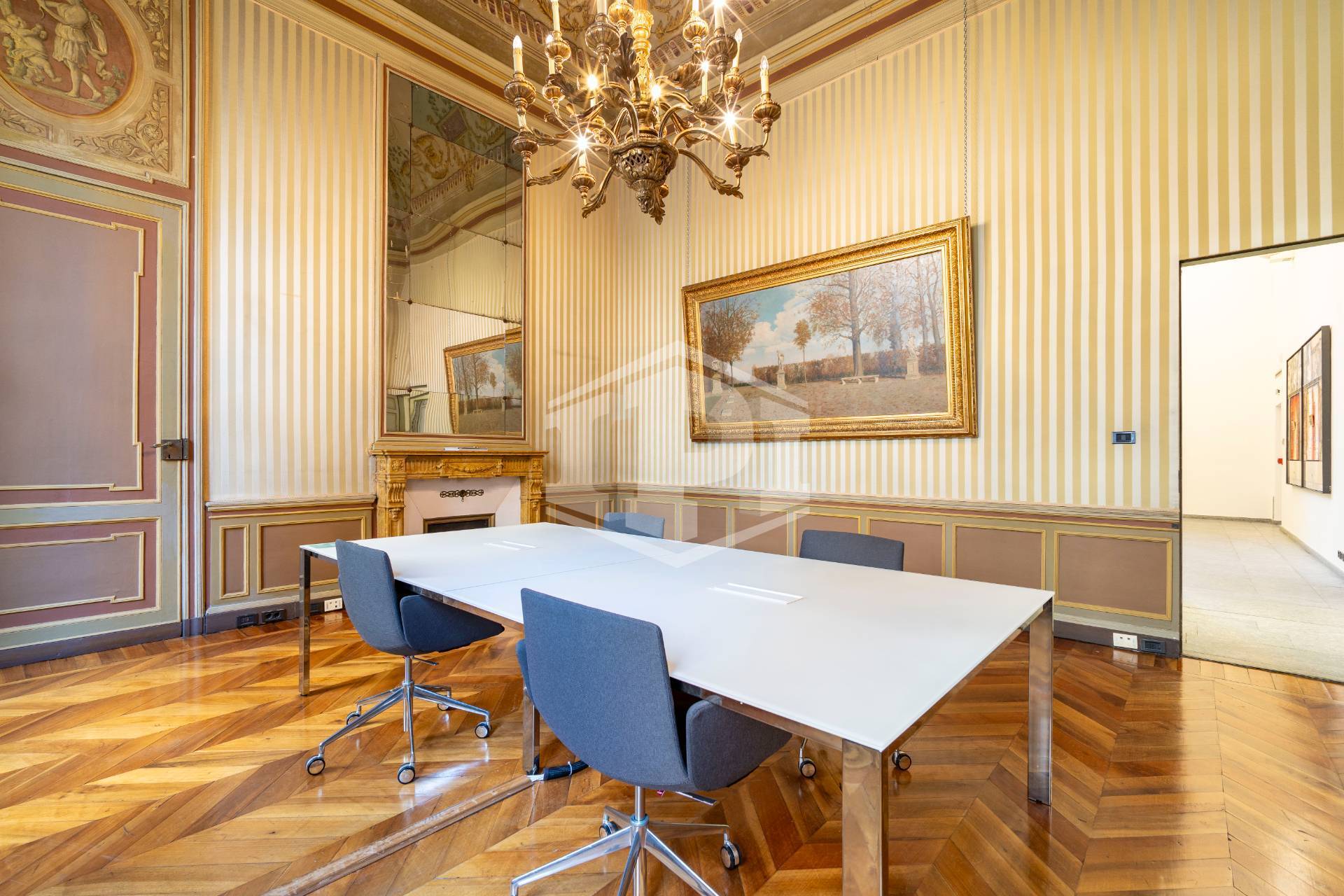 Il primo piano conserva elementi architettonici e decorativi originari dell'epoca di costruzione (tardo XVIII secolo), mentre i restanti livelli sono stati rifunzionalizzati ad uso direzionale, con soluzioni distributive moderne e flessibili, pavimenti sopraelevati, controsoffitti tecnici, partizioni modulari e layout ad elevata efficienza operativa.