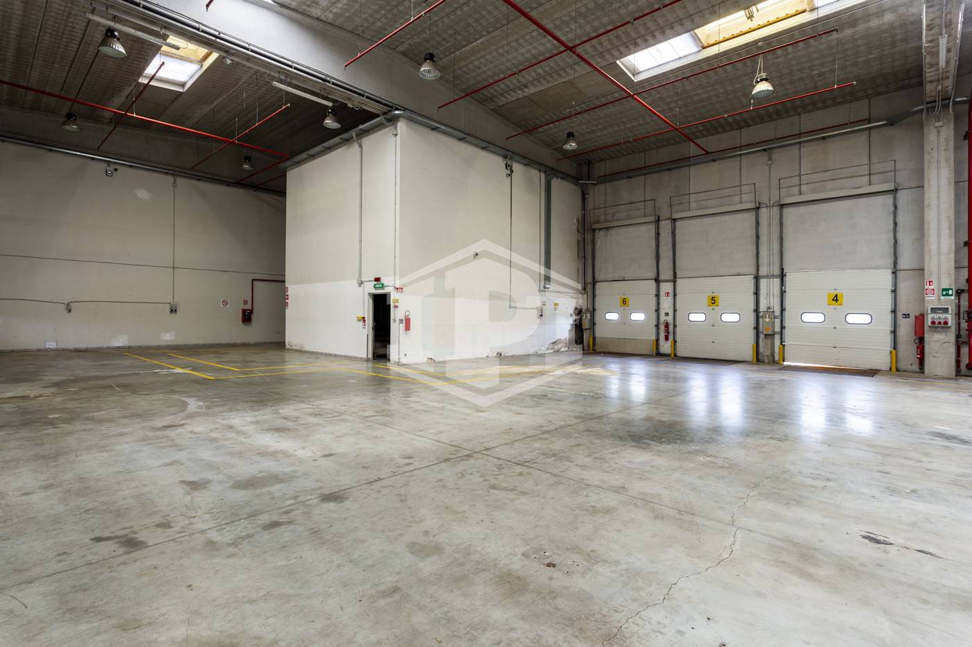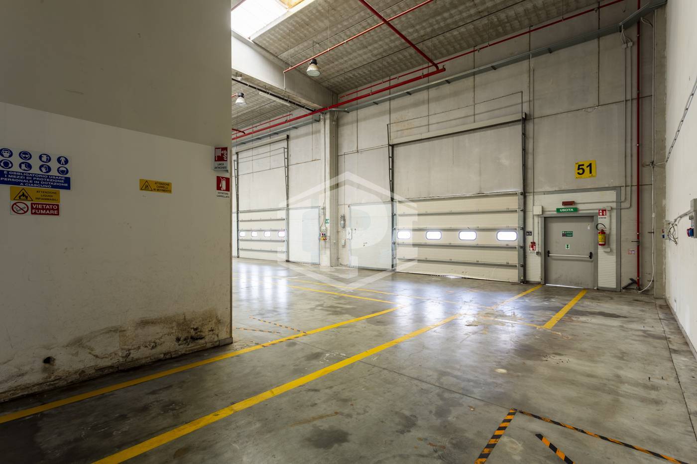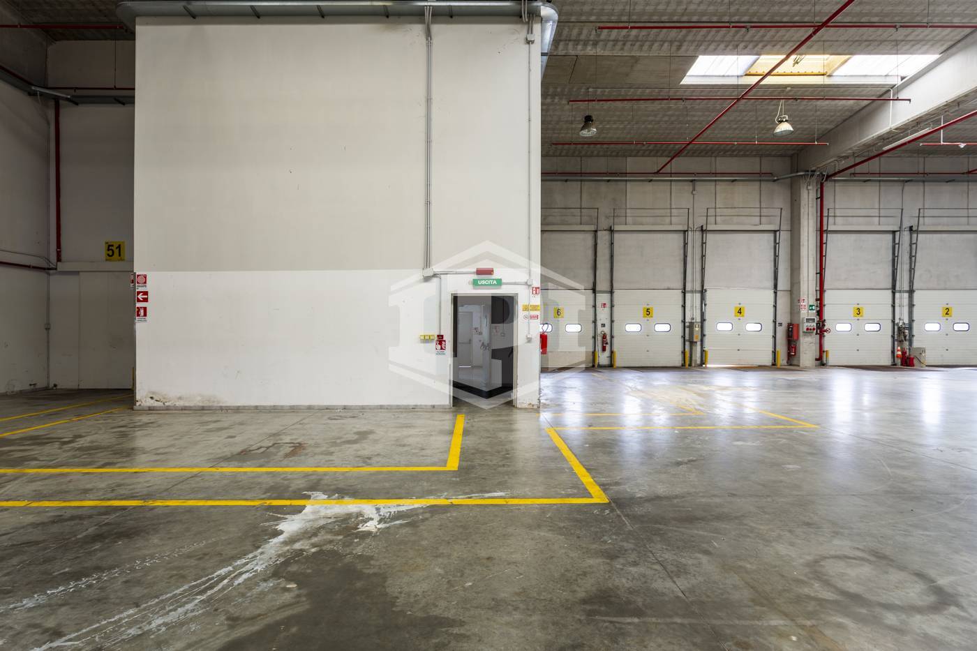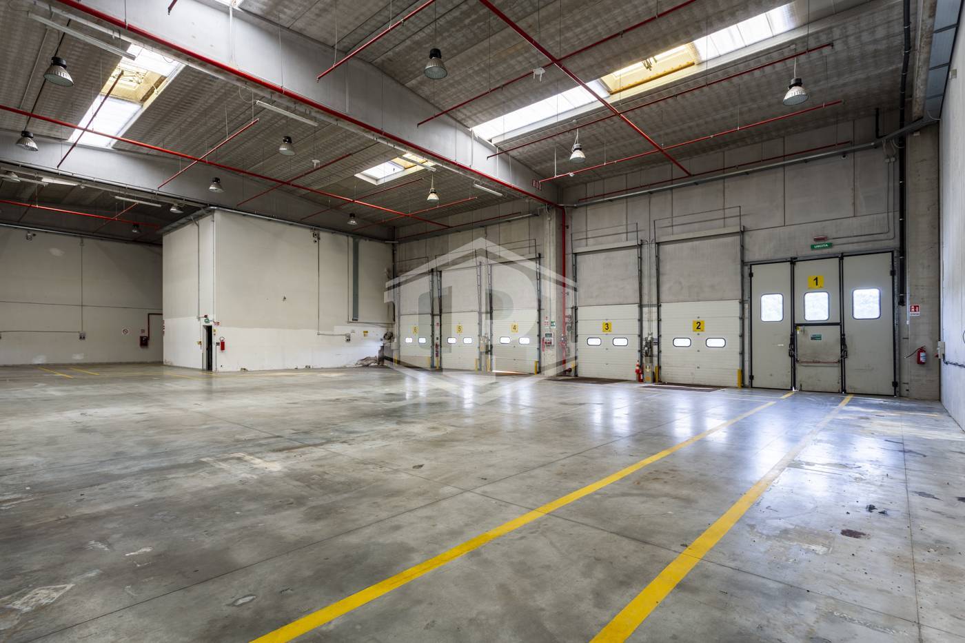 - piano terra: open space/magazzino di circa 668 mq con 10 bocche di carico frontali e 4 laterali, altezza sottotrave di 10,50;