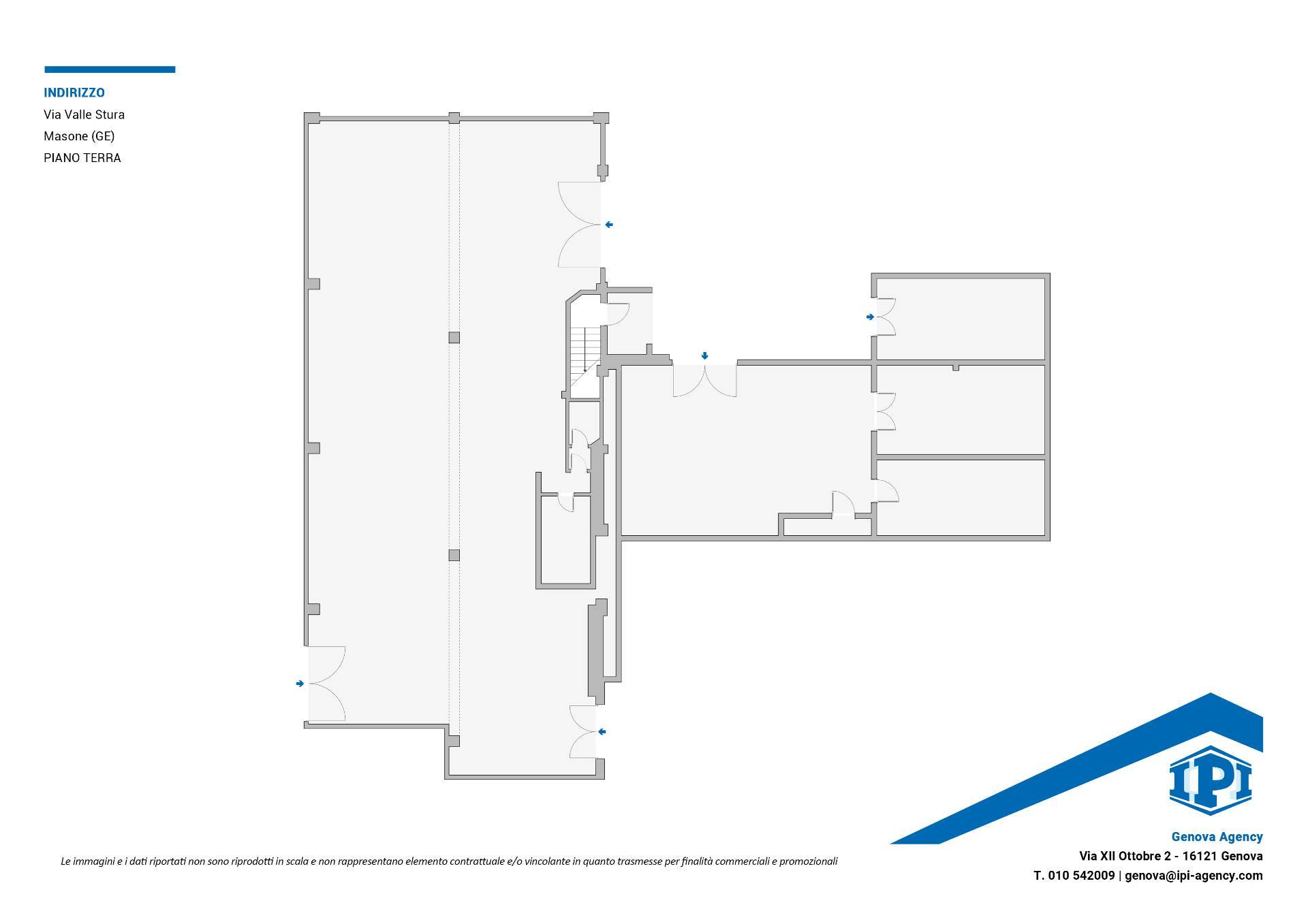 IPI Agency propone in vendita a Masone, in posizione strategica e comoda al casello autostradale di Masone (A26), capannone industriale di circa 1.150 mq (categoria D/8), con altezze interne di 9 mt c.a. (8 mt c.a. sottotrave) e tre accessi carrabili, dispone di piazzale esterno recintato di circa 1.000 mq.