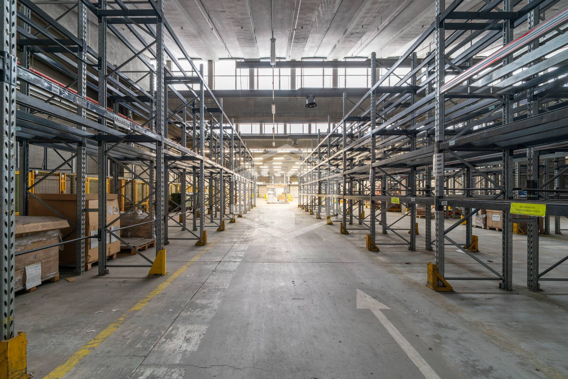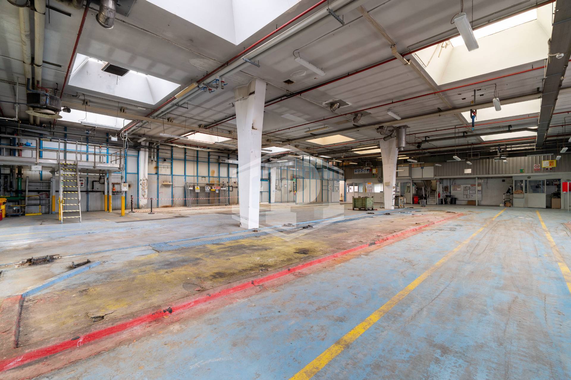 - Un capannone a uso magazzino, dotato di 4 baie di carico, di circa 5.560 mq, 3.500 dei quali con un'altezza interna di 6,50 mt e copertura a shed e i restanti 1.300 mq con un'altezza interna di 12 mt. Completa il compendio una palazzina in adiacenza di 4 piani fuori terra e uno interrato di circa 1.100 mq con destinazione uffici. La parte dedicata a magazzino è in ottimo stato di conservazione e immediatamente utilizzabile mentre gli uffici necessitano di minimi interventi per il riutilizzo