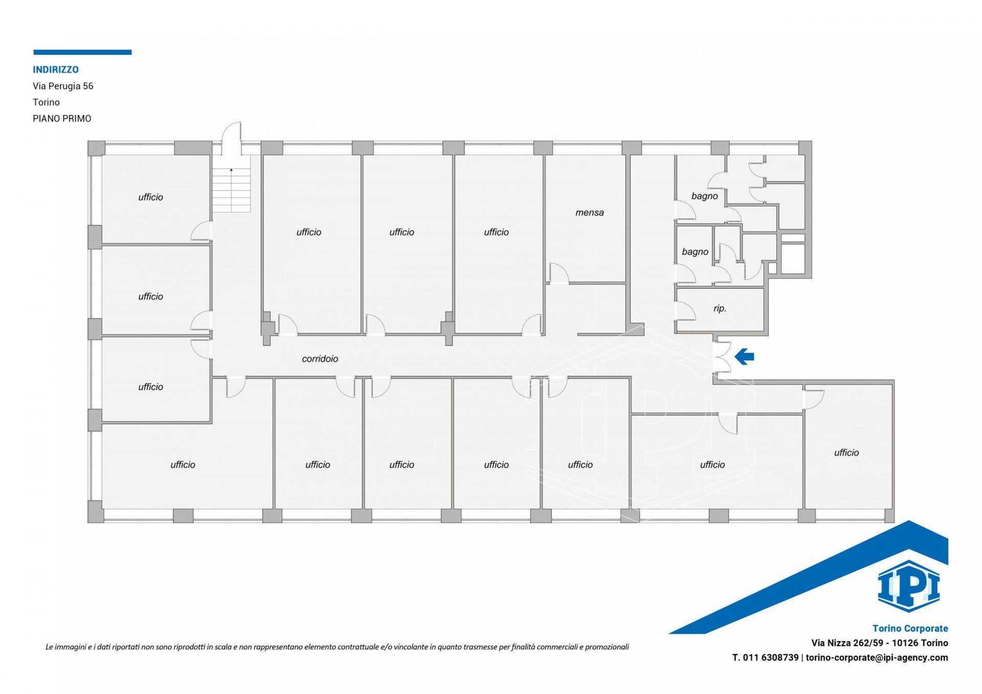 In immobile ad attuale destinazione direzionale situato in Via Perugia 56, composto da quattro piani fuori terra oltre piano autorimessa e piano sottotetto, proponiamo in vendita al primo piano porzione di spazi uffici di mq 530 con affaccio su Corso Novara.
