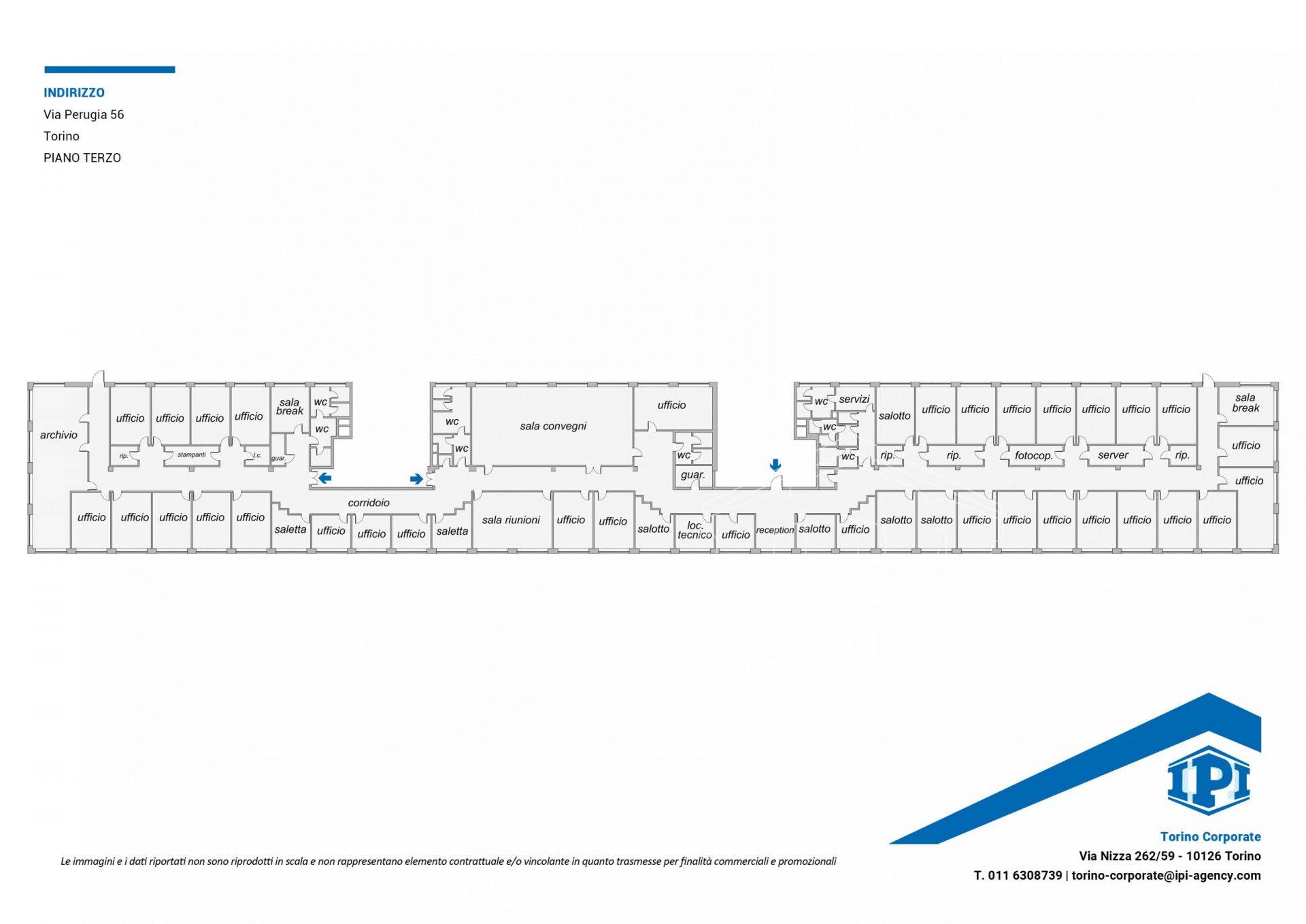 In immobile ad attuale destinazione direzionale situato in Via Perugia 56, composto da quattro piani fuori terra oltre piano autorimessa e piano sottotetto, proponiamo in vendita al terzo e ultimo piano porzione di spazi uffici di metri quadri 1.720.