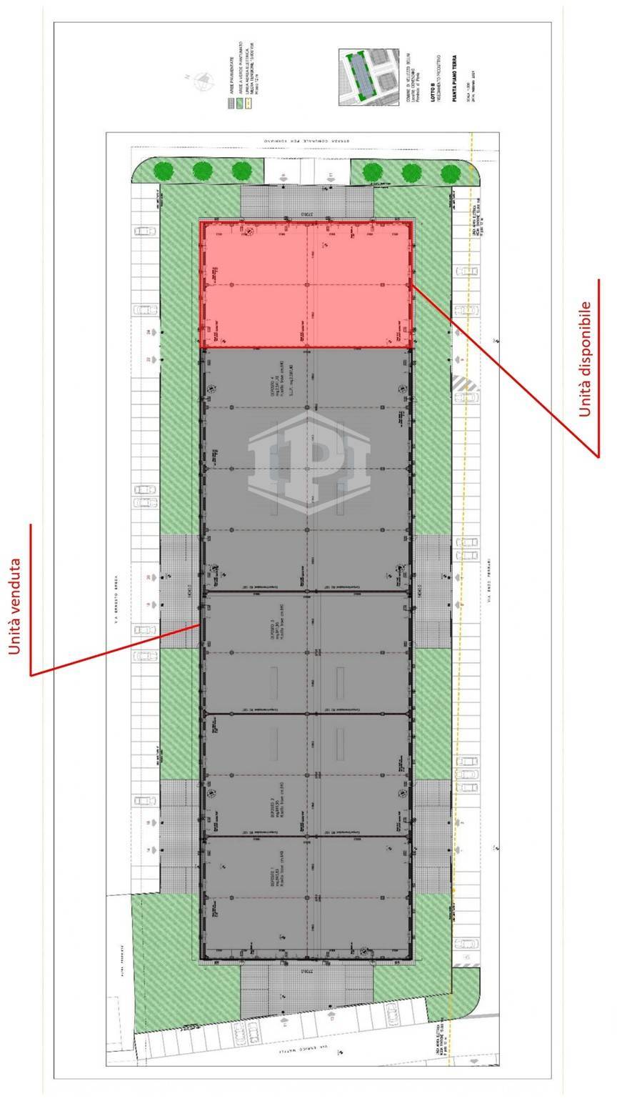Adiacenti al capannone, sono disponibili altri due lotti, D ed E, con una superficie fondiaria complessiva di circa 6.450 mq. I lotti hanno un indice di edificabilità del 60% e già presentano pilastri di 7 m di altezza, distanziati di 5 m l'uno dall'altro, per la futura costruzione di nuovi fabbricati.