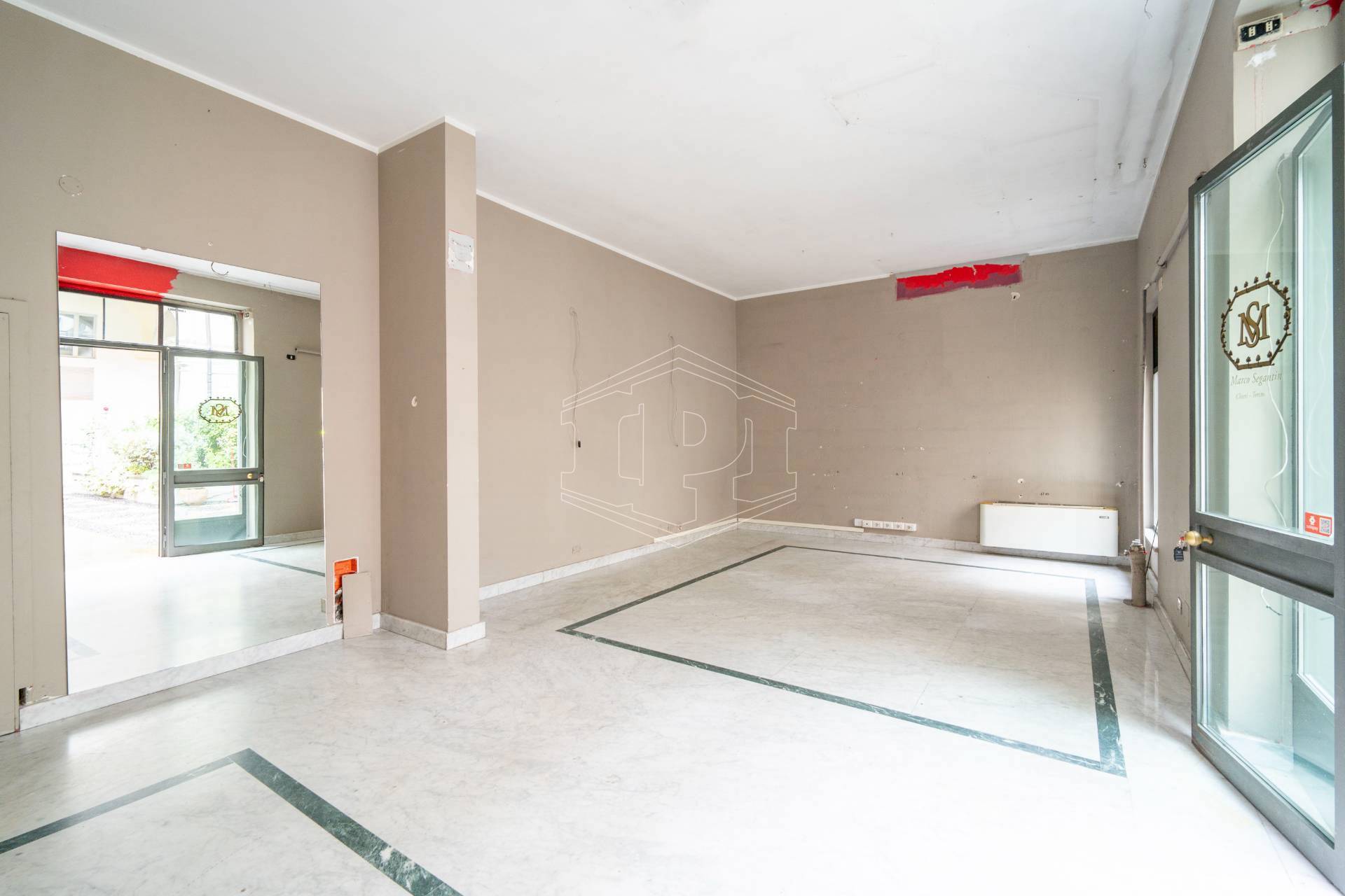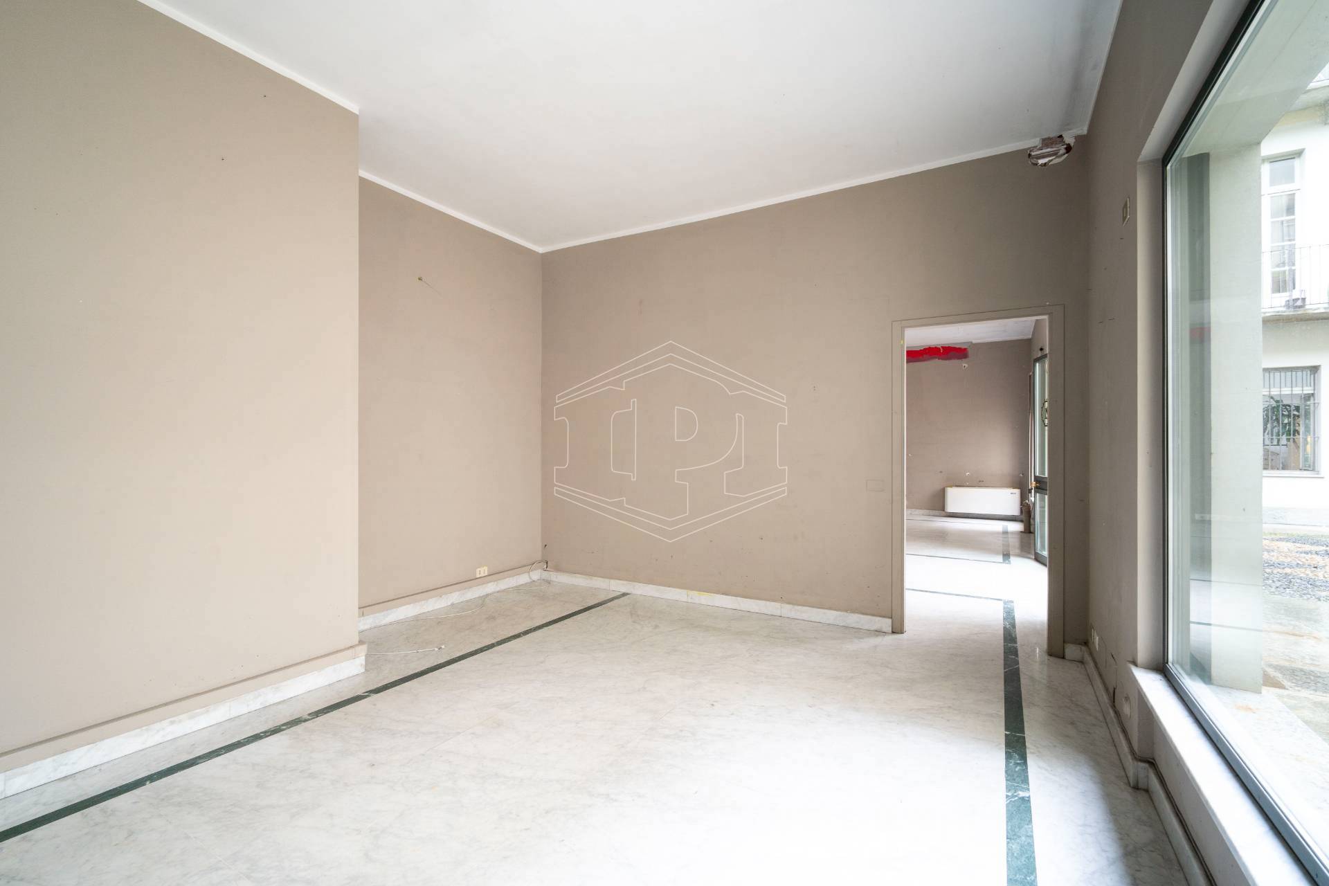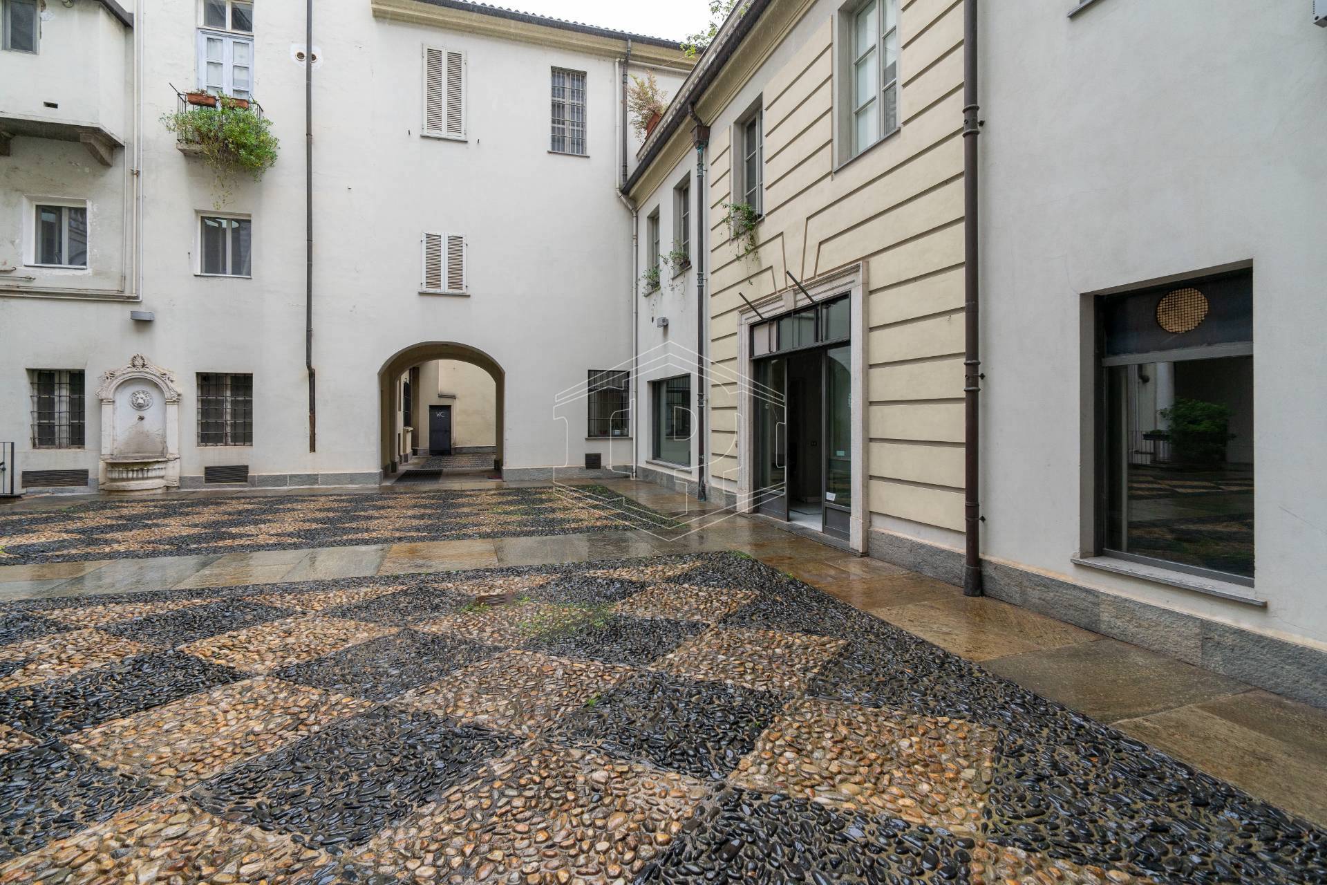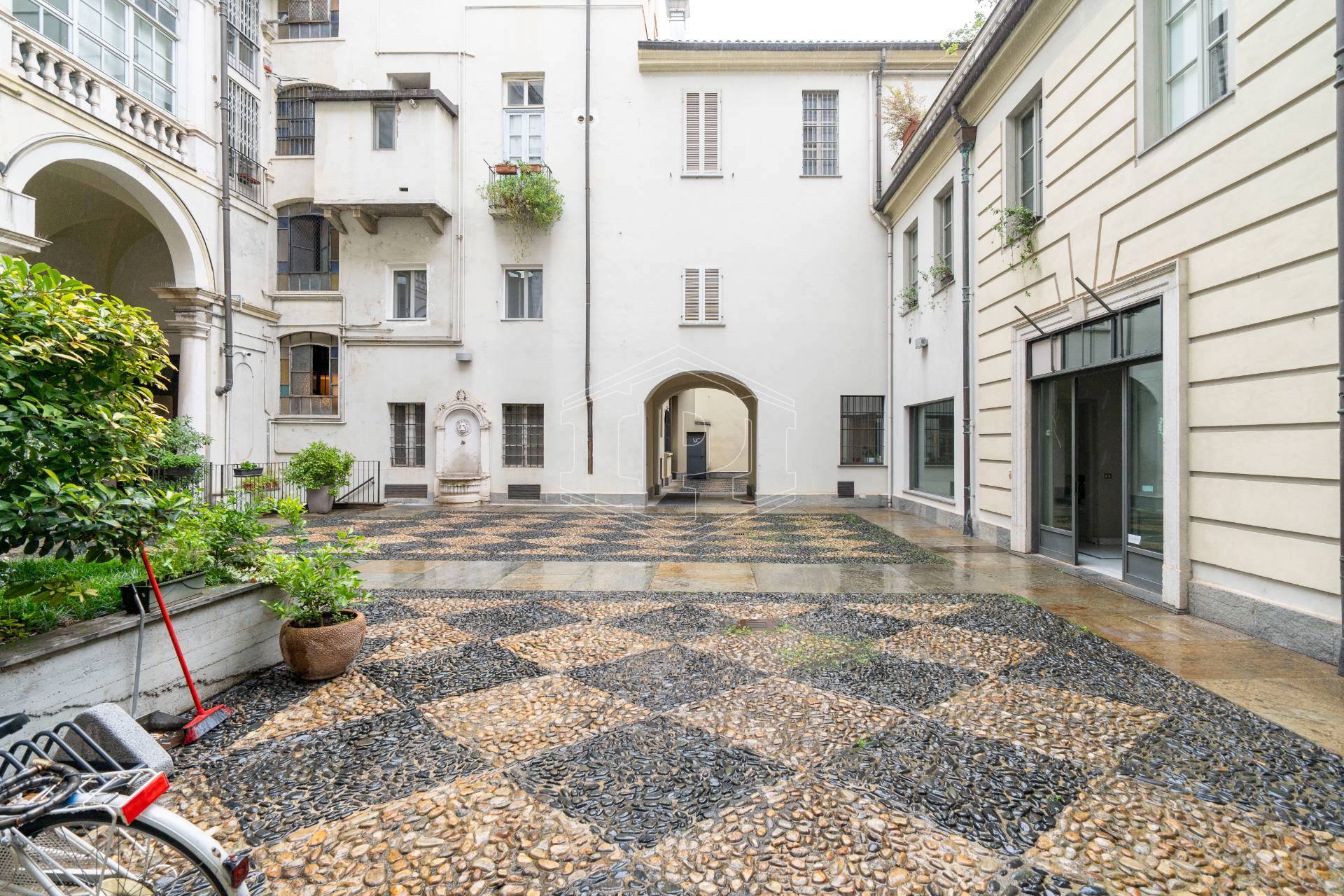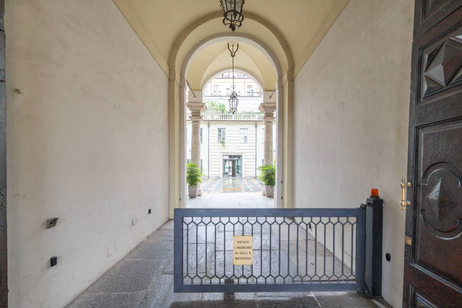 Lo spazio è ubicato nella corte di un elegante stabile d'epoca, ha una superficie complessiva di 107 metri quadri ed è dotato di tre vetrine con affaccio su Piazza Castello.