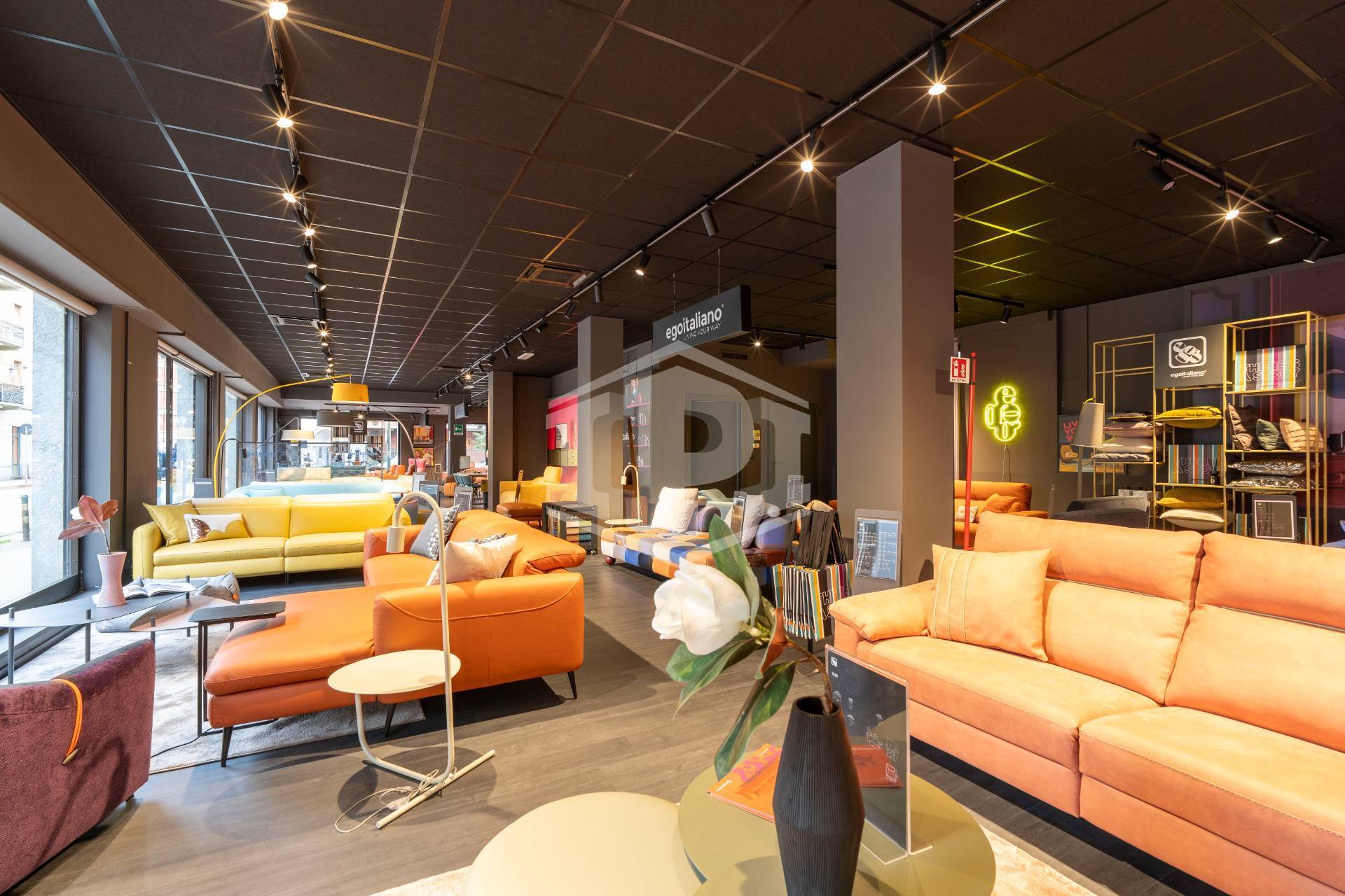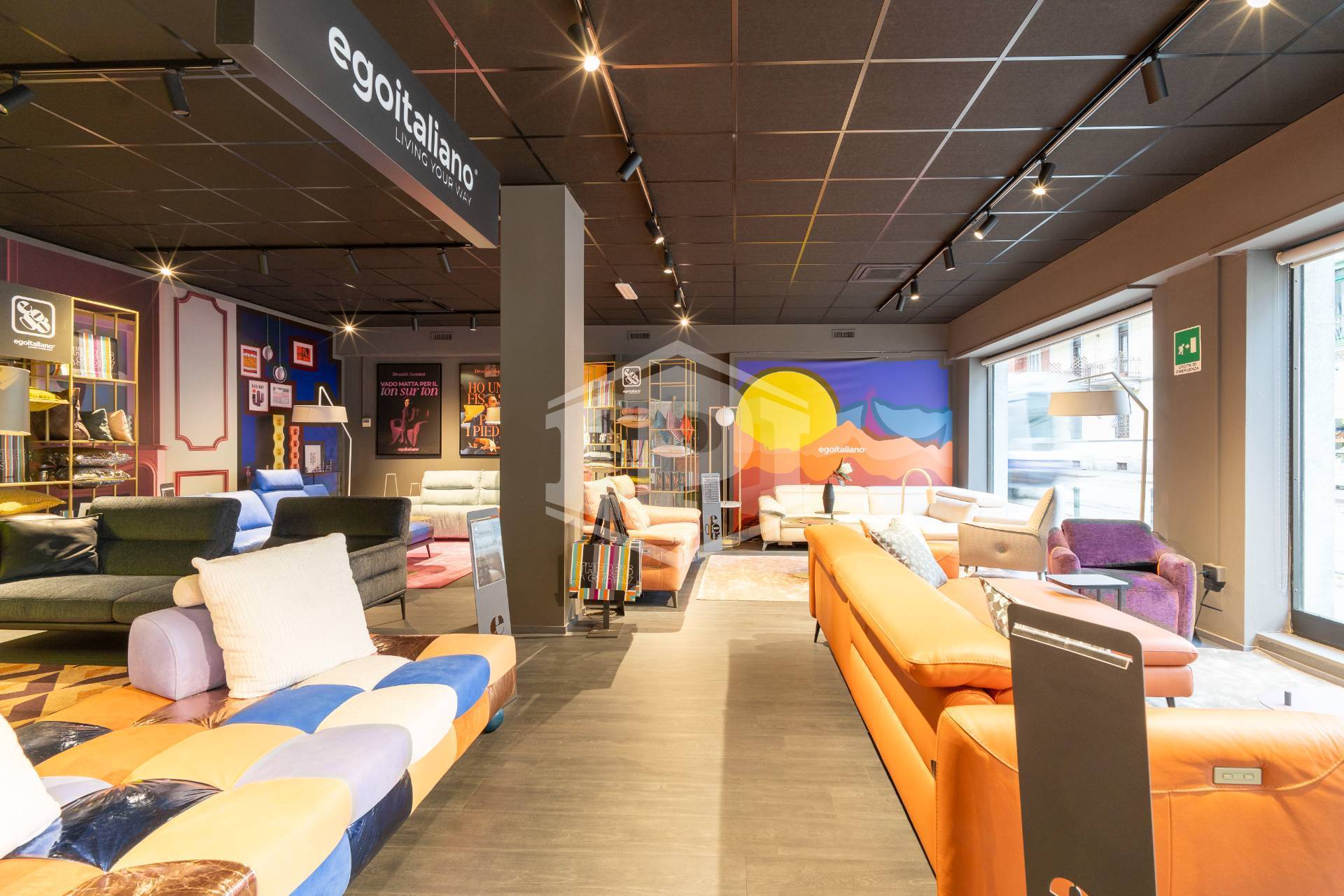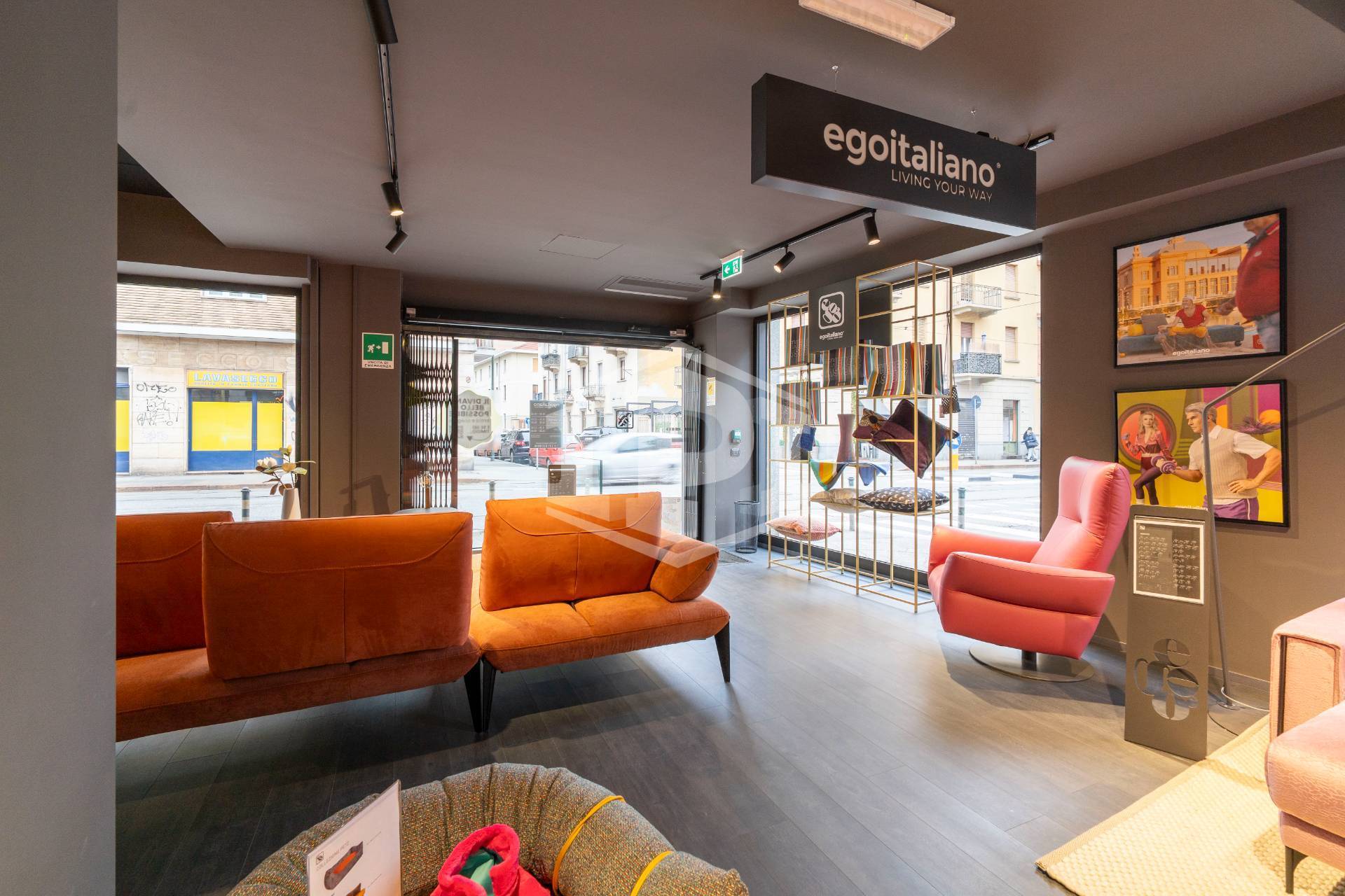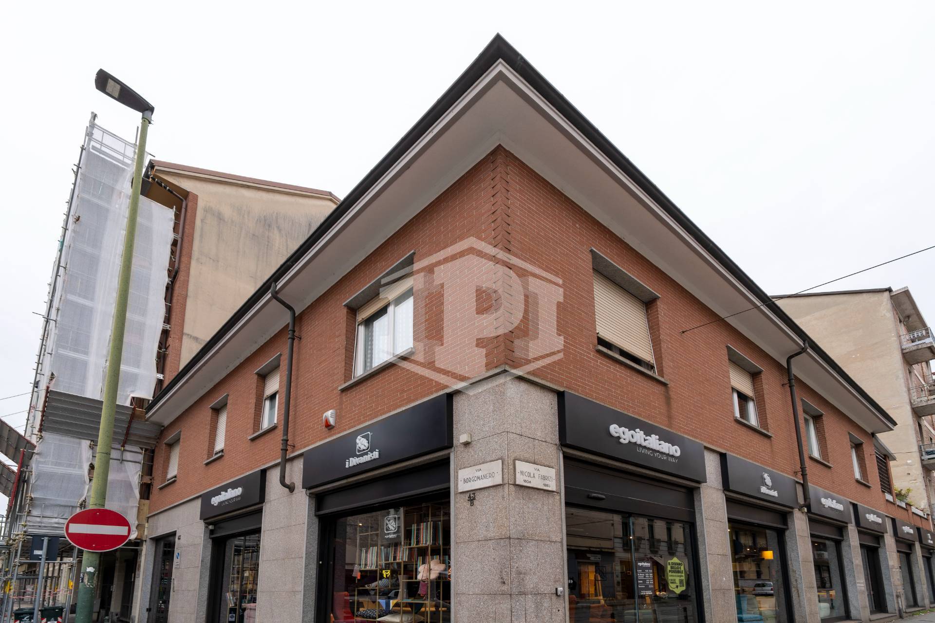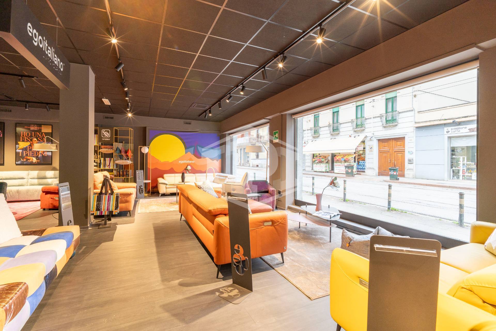 Il fronte, sviluppato su Via Nicola Fabrizi , è dotato di sei vetrine mentre le restanti due sono posizionate sul lato di Via Borgomanero.