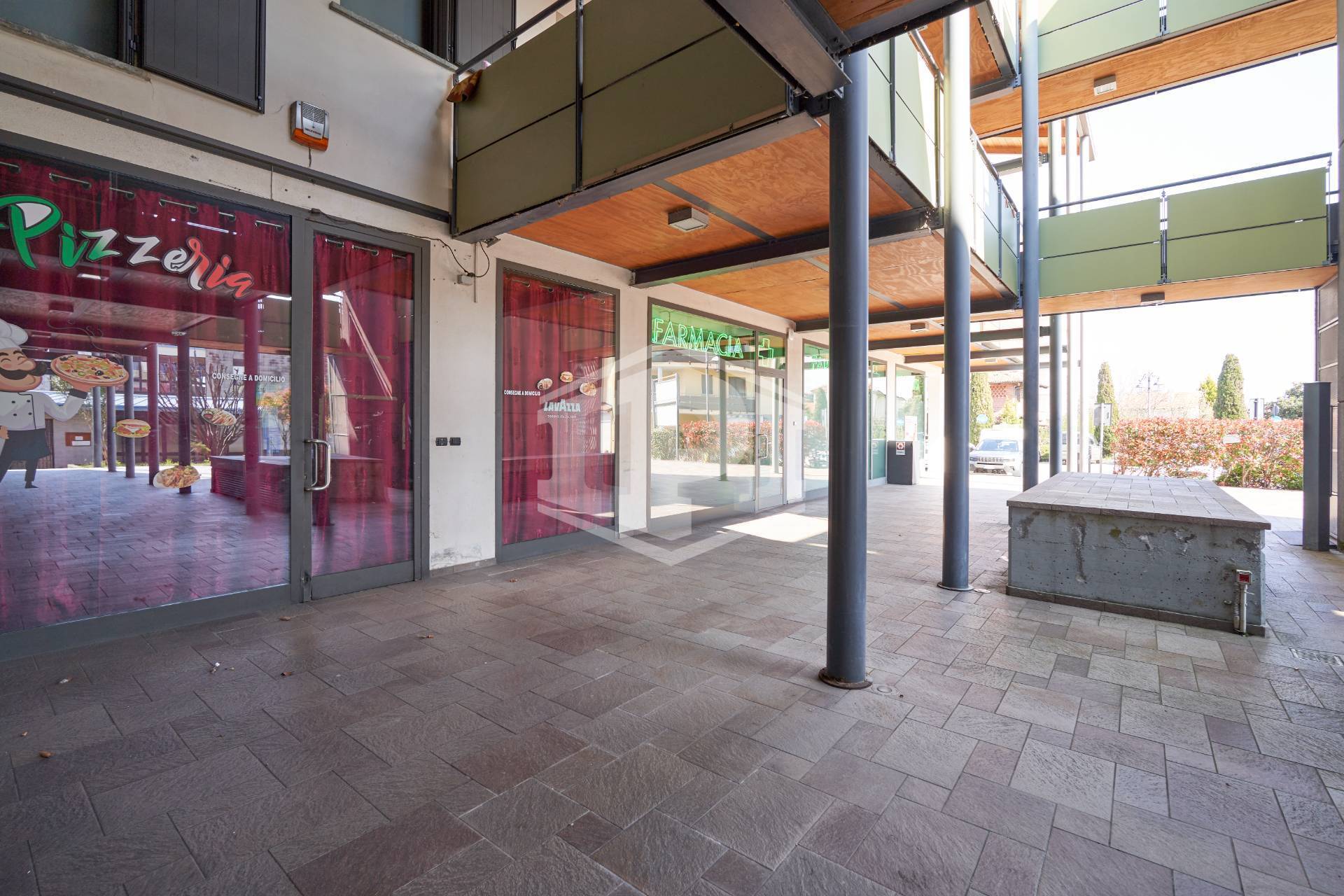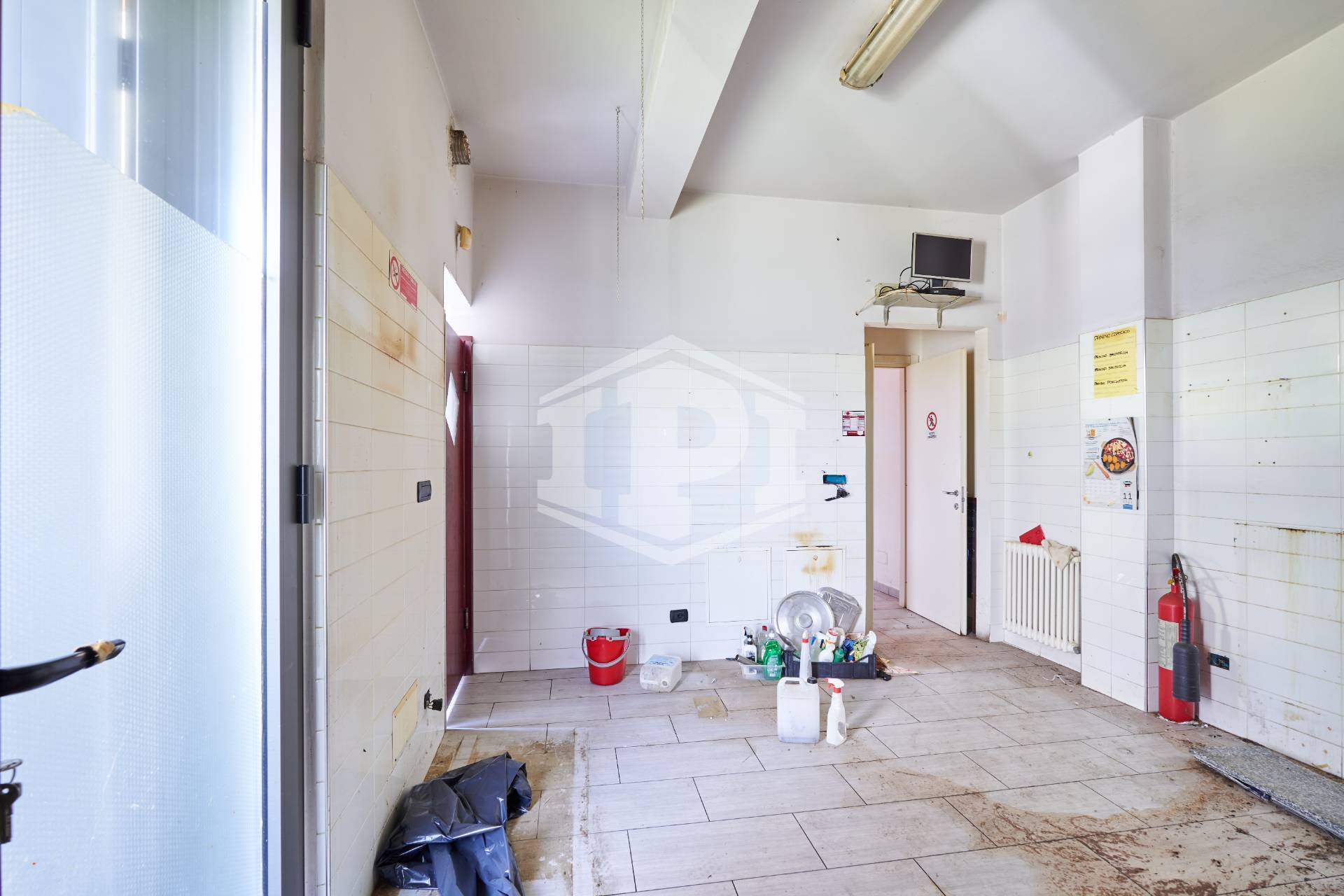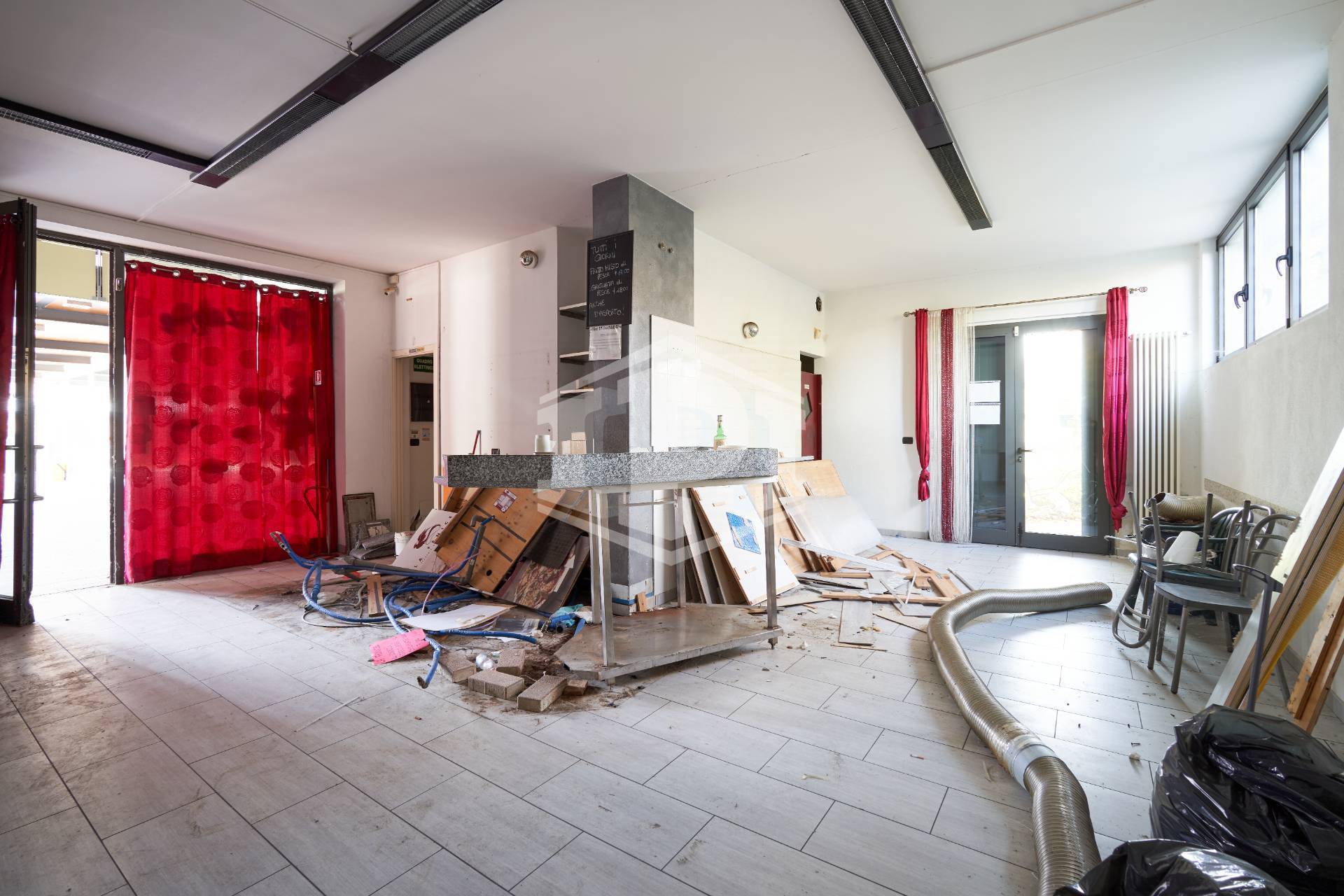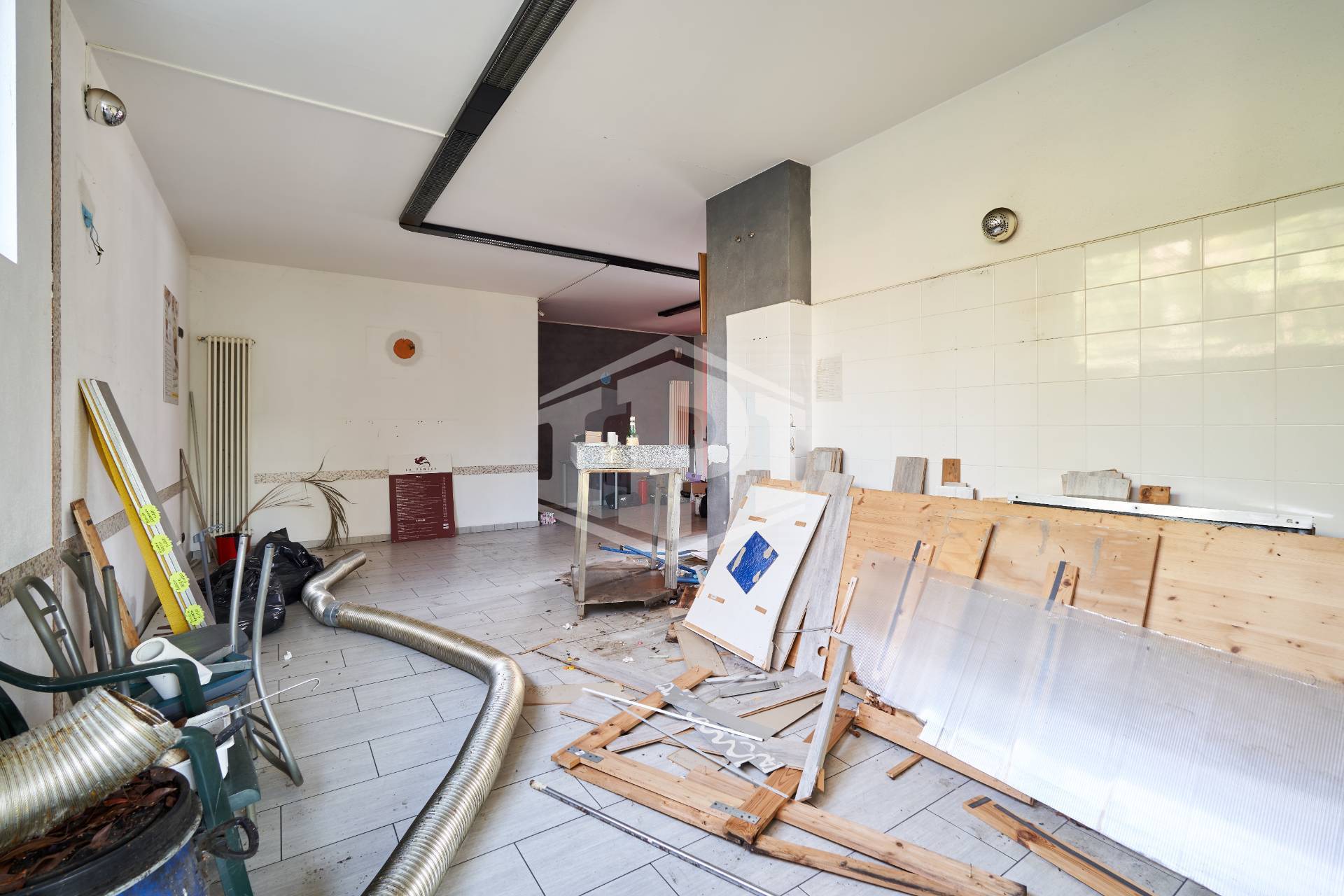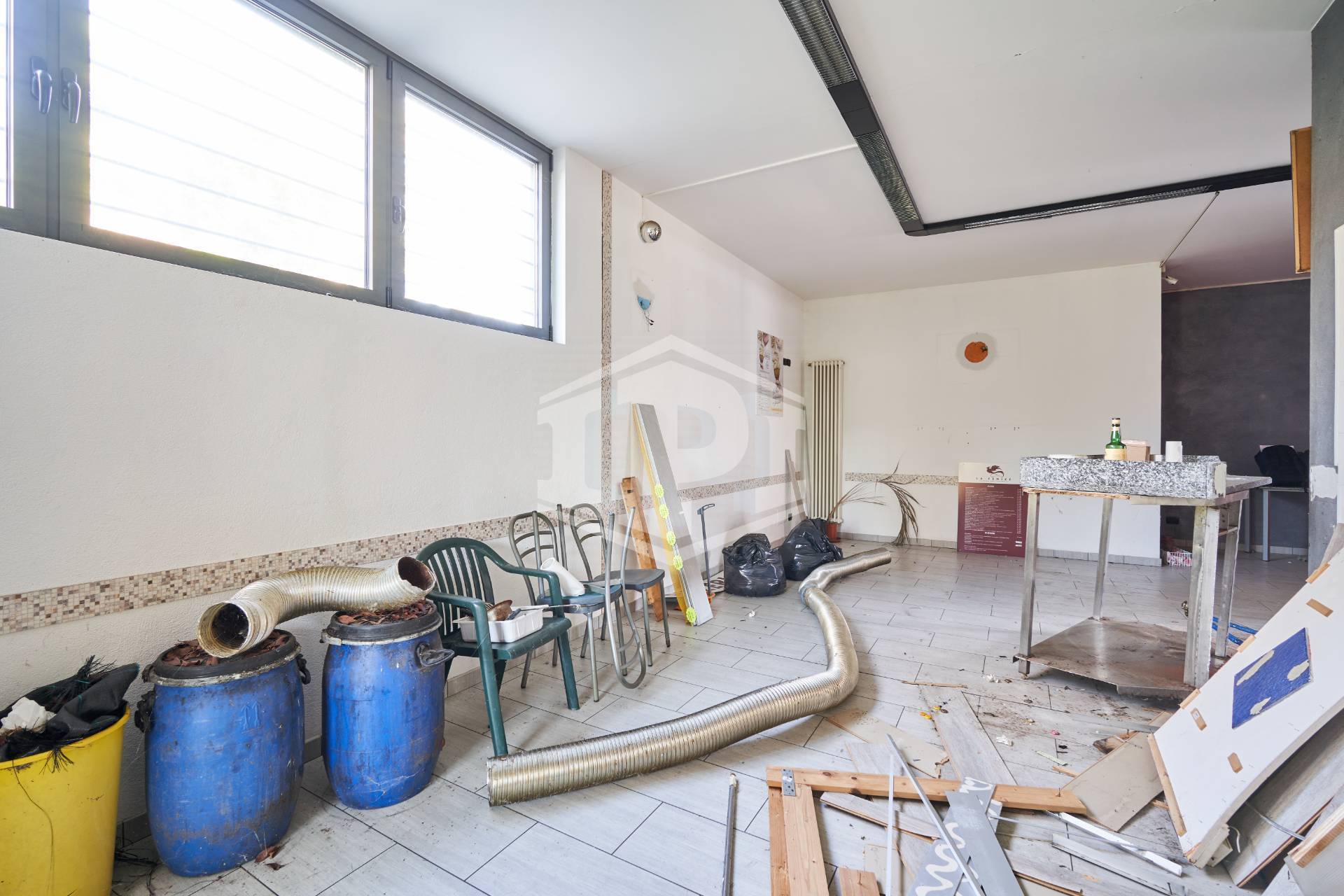 Negozio dotato di canna fumaria di 123 mq, composto al piano terreno da ampio vano open space, altro locale, bagno, portico e area esterna esclusiva, al piano interrato, collegato da scala interna, disimpegno, due locali di servizio e bagno.