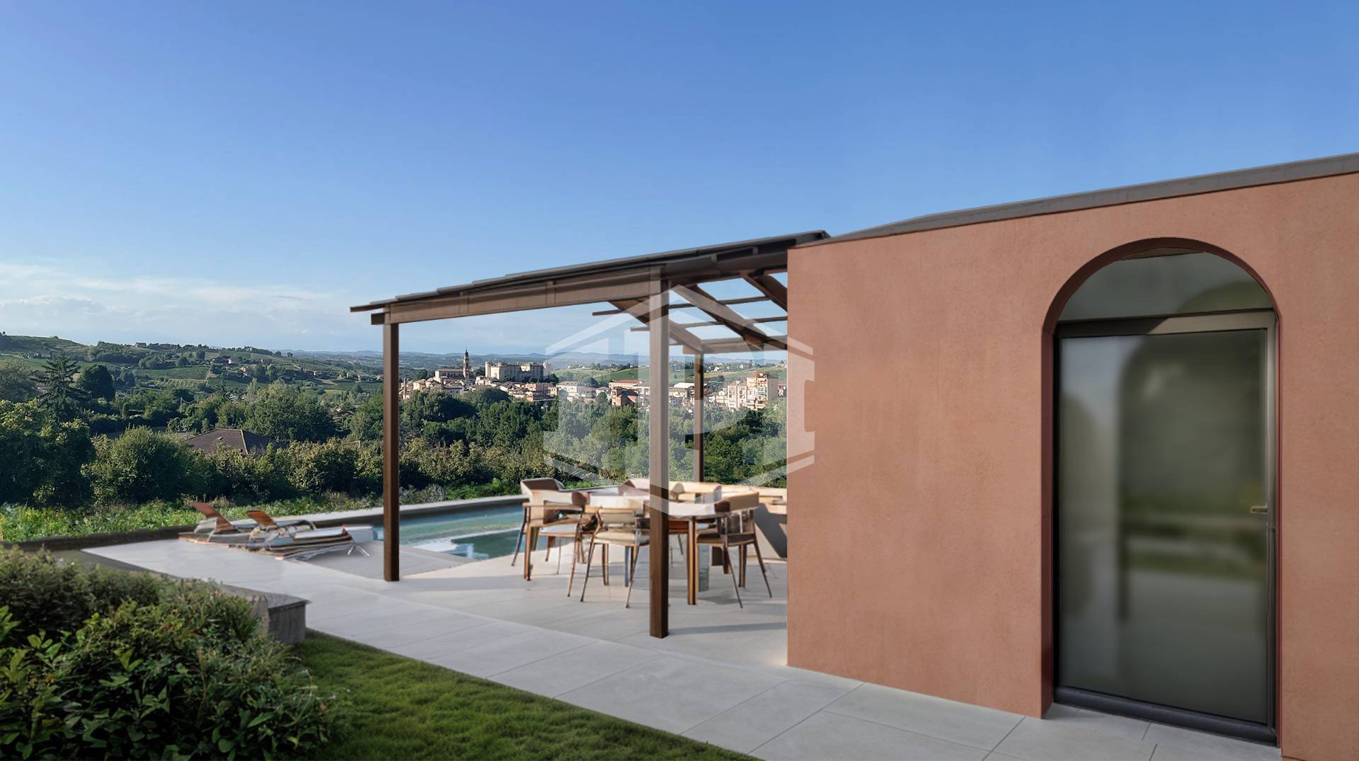 Area edificabile di 2.300 mq, con vista sul territorio circostante: in primo piano i vigneti, il castello di Costigliole d'Asti e come sfondo l'arco alpino e il Monte Rosa.