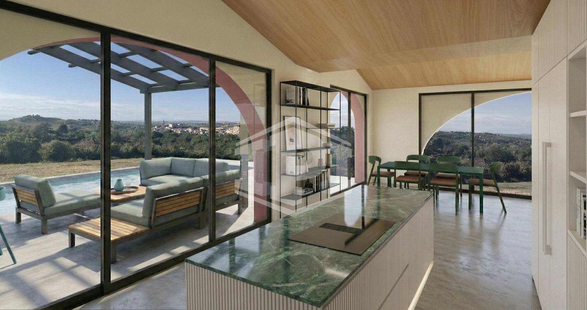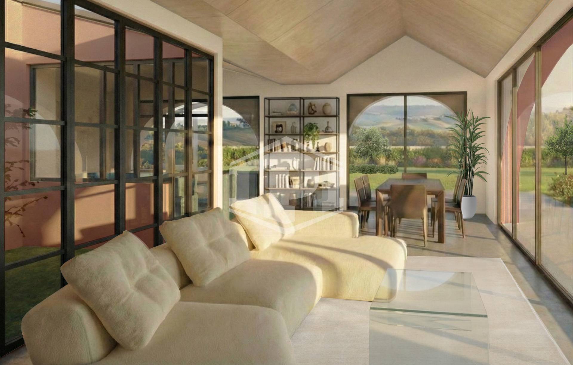 La proprietà mette a disposizione uno studio di fattibilità per la realizzazione di una villa che ben si integra con il paesaggio, attento all'ecosostenibilità (i render pubblicati sono puramente indicativi del progetto).