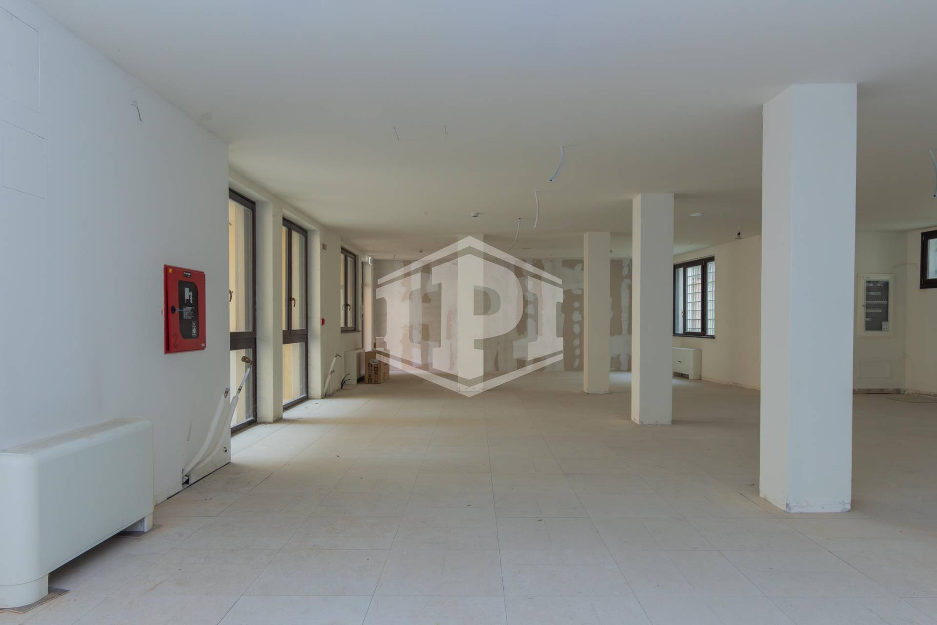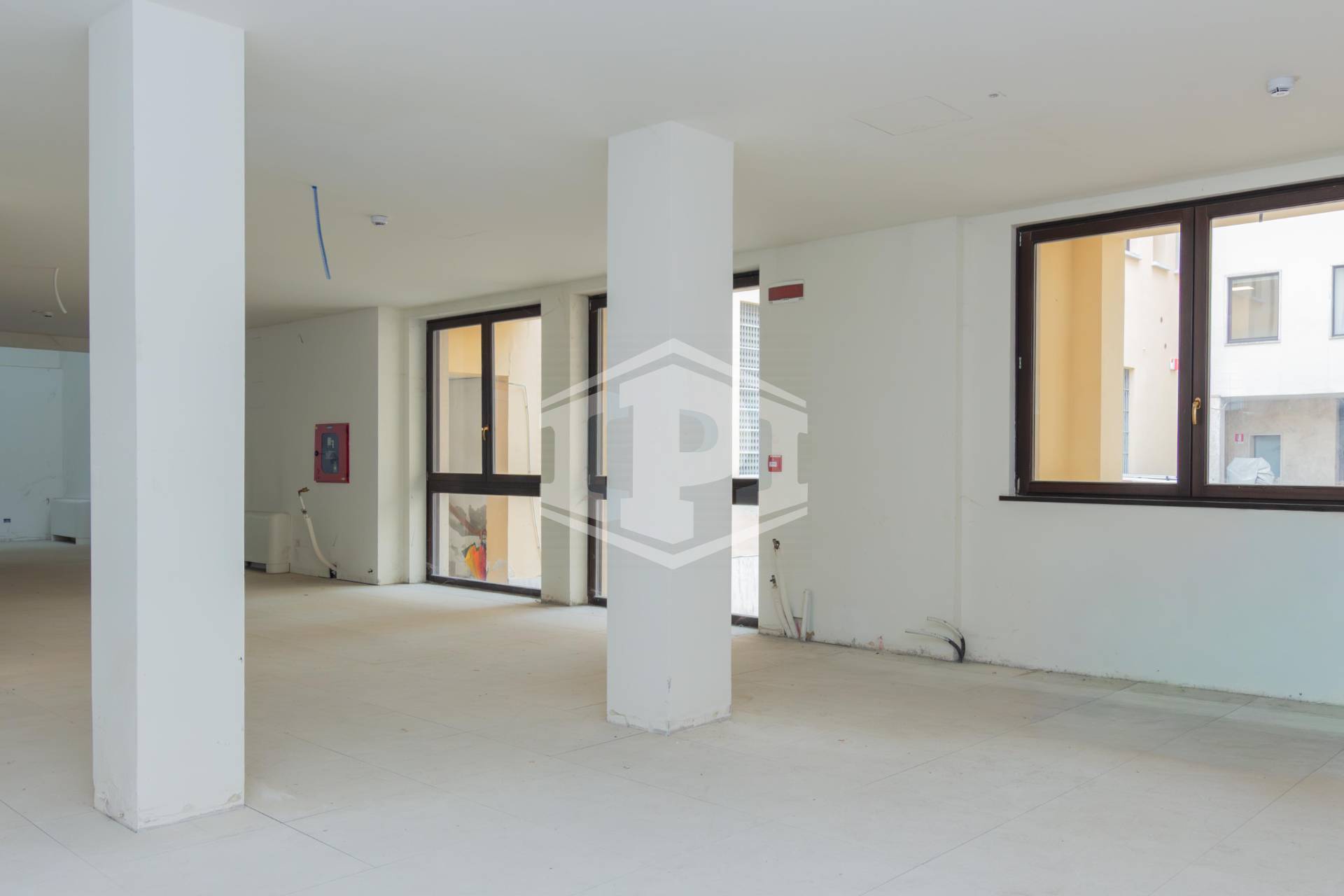 - Tecnologia: pavimentazione flottante con cablaggio integrato (ideale per postazioni IT complesse), controsoffitto con predisposizione impiantistica, sistemi antincendio ed evacuazione fumi.