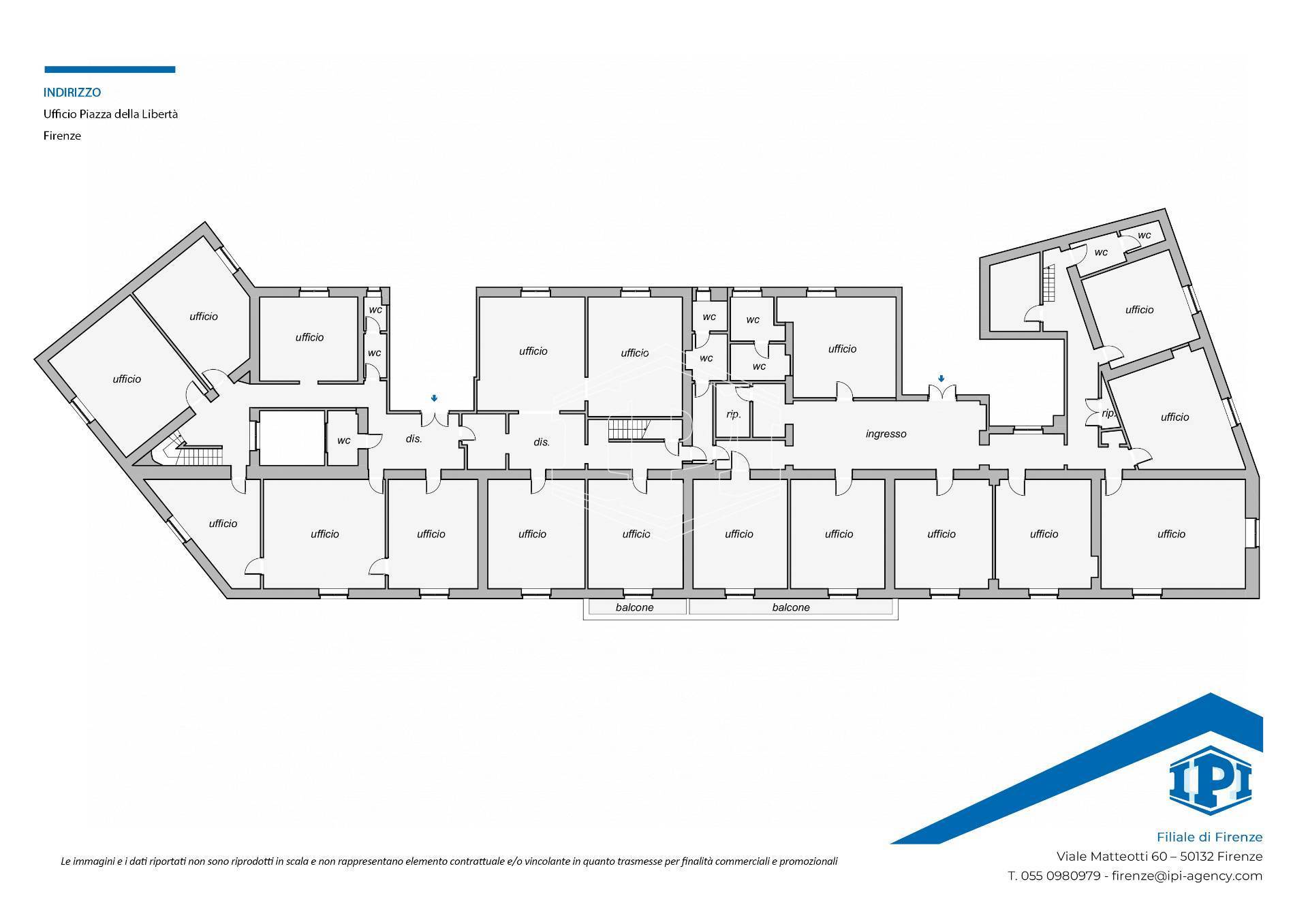 FIRENZE- più precisamente in Piazza della Libertà, IPI propone in locazione un esclusivo ufficio situato al secondo piano e piano ammezzato di un signorile palazzo del 1900, dotato di ascensore. L'immobile, con una superficie complessiva di circa 1010 mq, di cui piano secondo 825 mq ca, piano secondo ammezzato di 100 mq ca oltre a 85 mq ca di magazzini. Composto da 24 ampi vani, undici bagni e aree dedicate ai servizi.