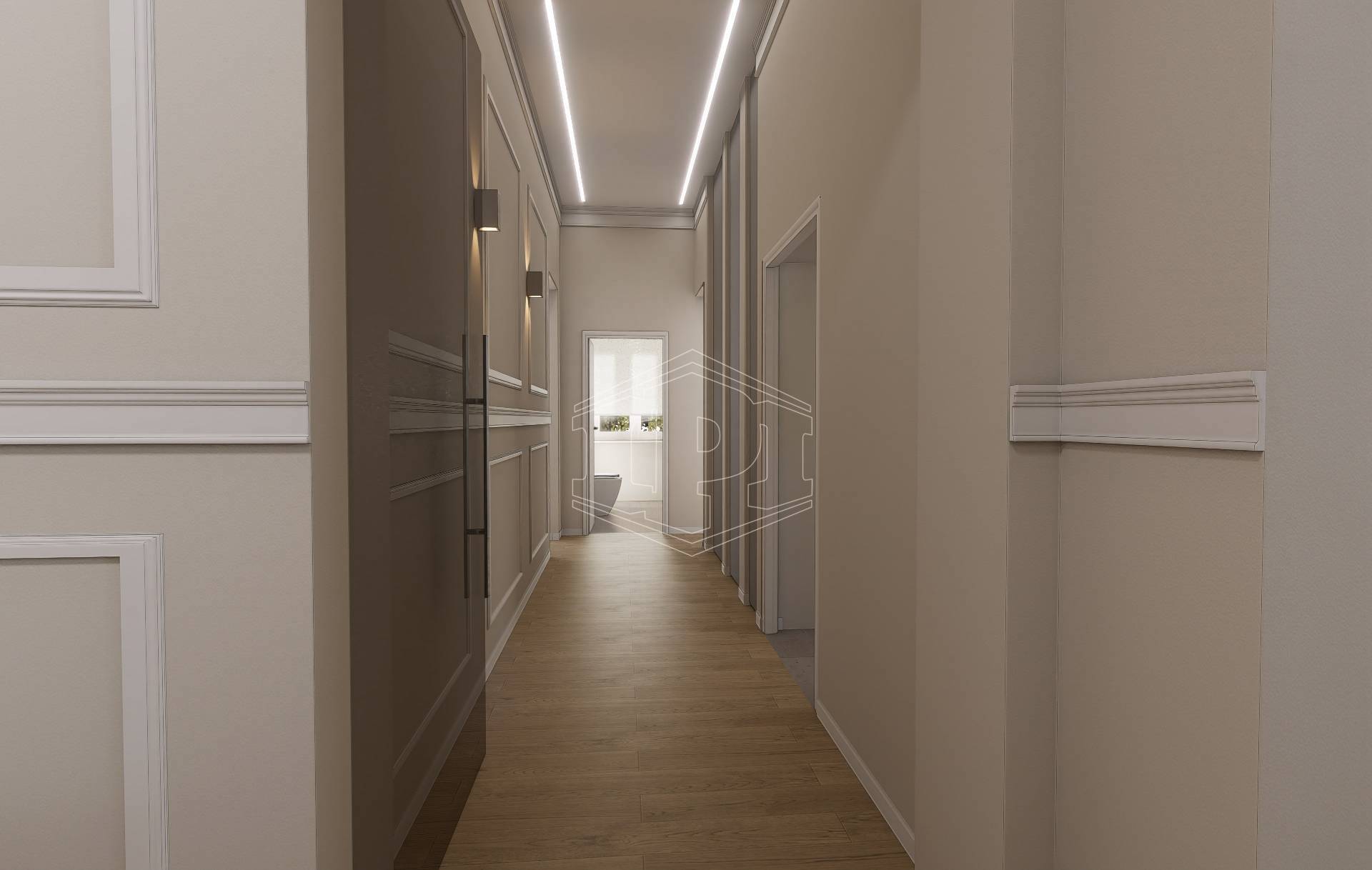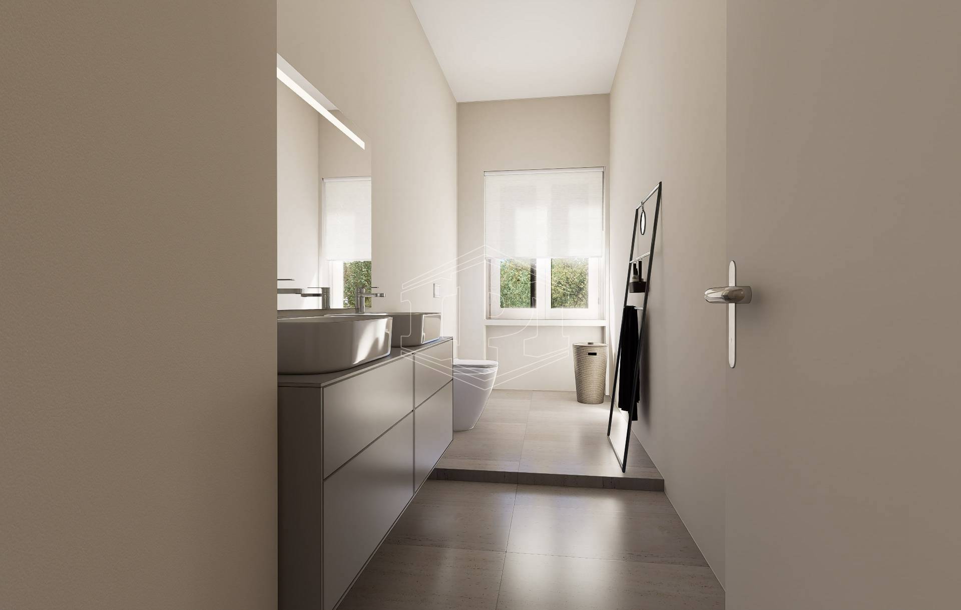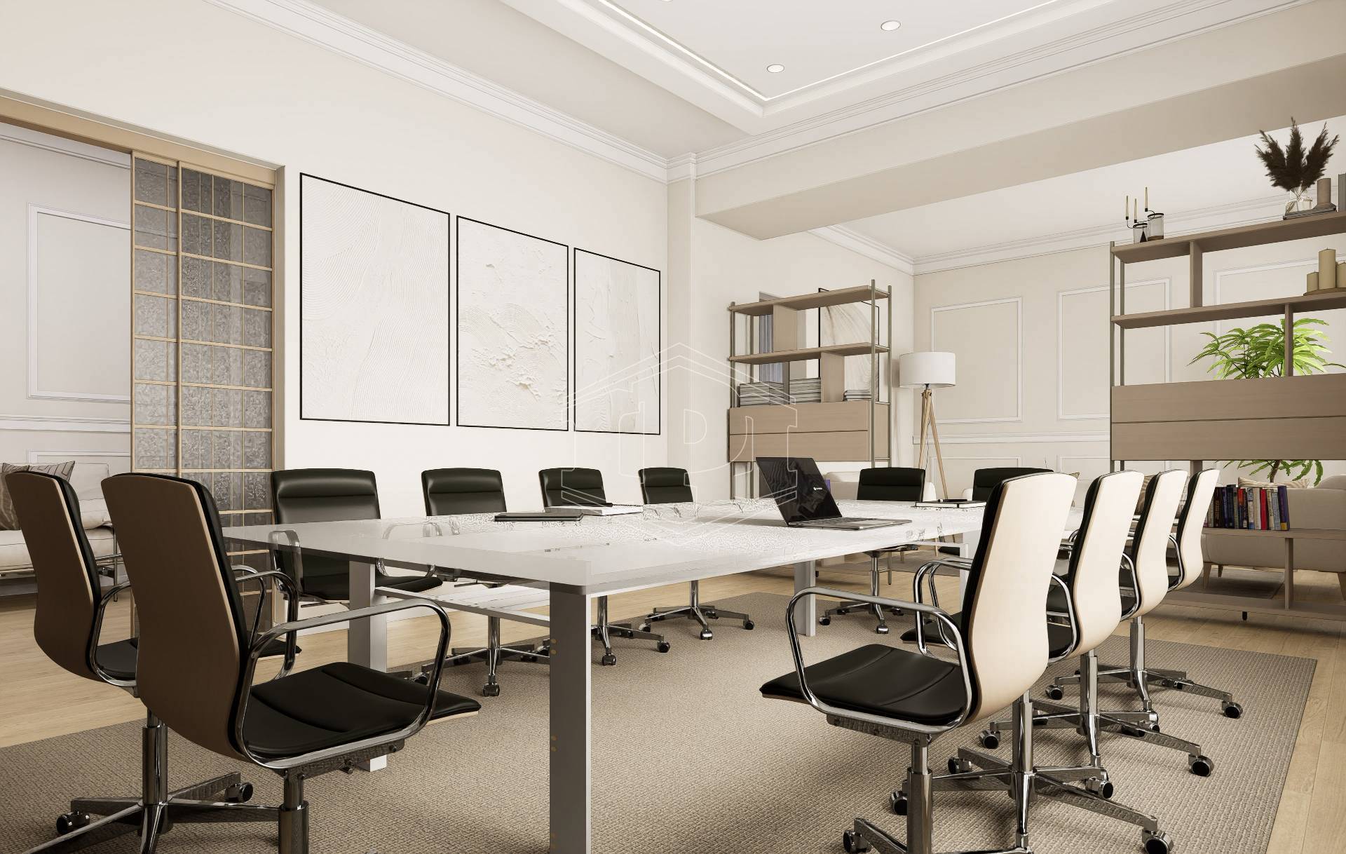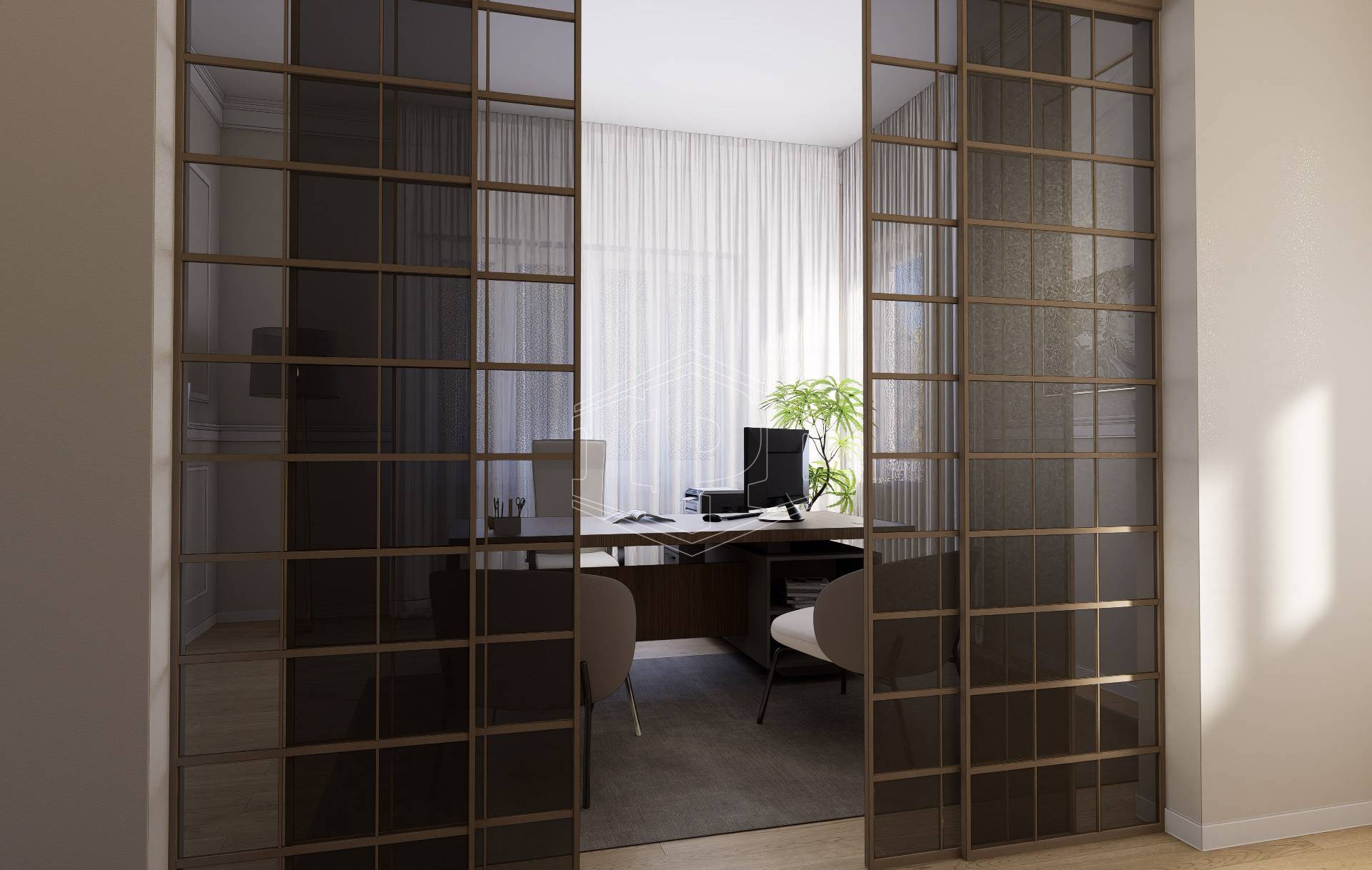 Ufficio di 219 mq, attualmente adibito ad abitazione con possibilità di cambio di destinazione d'uso, composto da: ingresso/reception, salone open space, tre vani, due bagni, archivio, ripostiglio. Completano la proprietà il giardino condominiale a cui si accede dal balcone e il box auto al piano interrato acquistabile a parte a € 40.000.