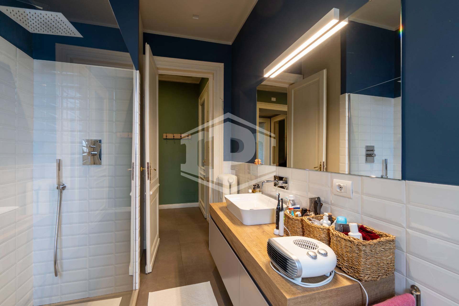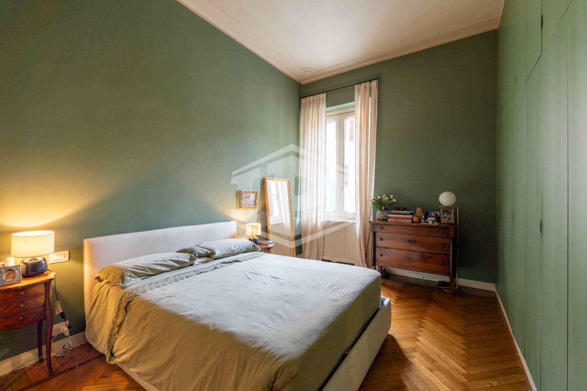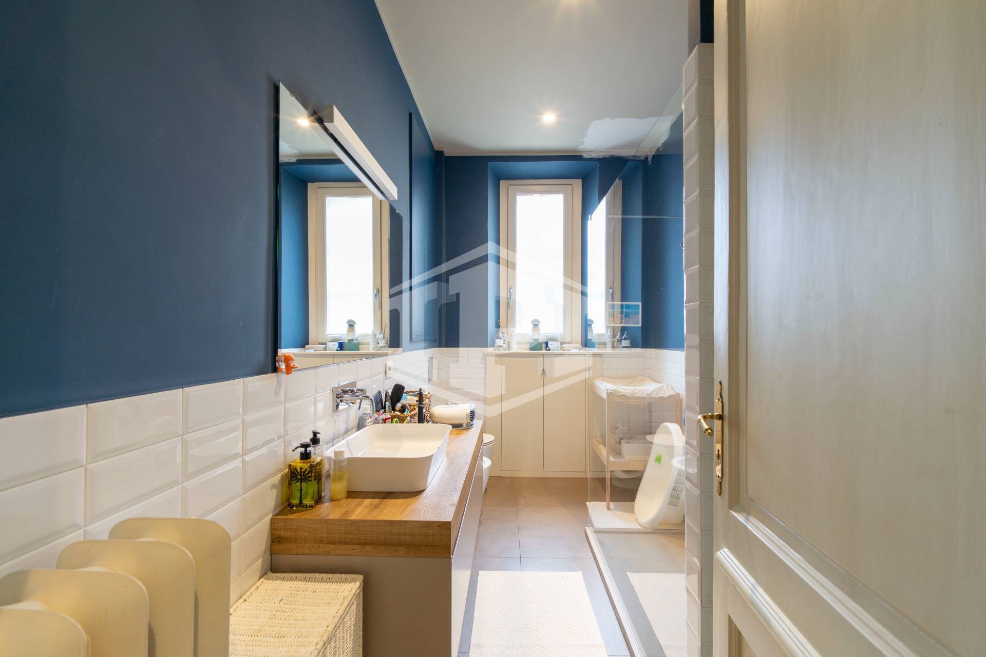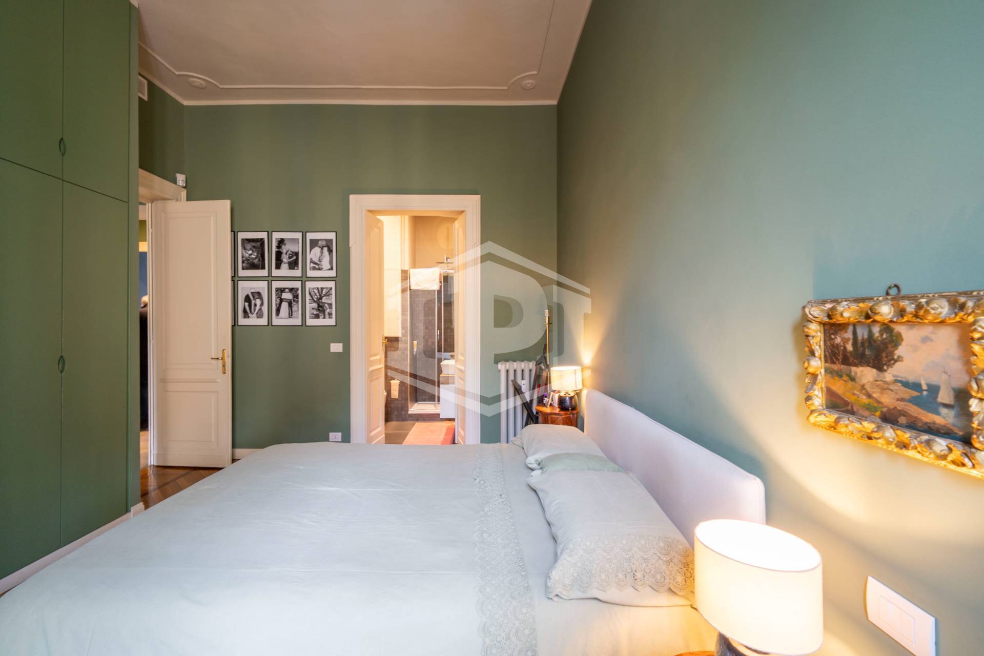 La zona notte accoglie due camere da letto, di cui una matrimoniale di generose dimensioni, pavimentazione in parquet e arricchita da una spaziosa armadiatura a muro. Doppi i servizi: il primo, finestrato serve la zona giorno mentre il secondo é situato nella zona notte come bagno en suite.