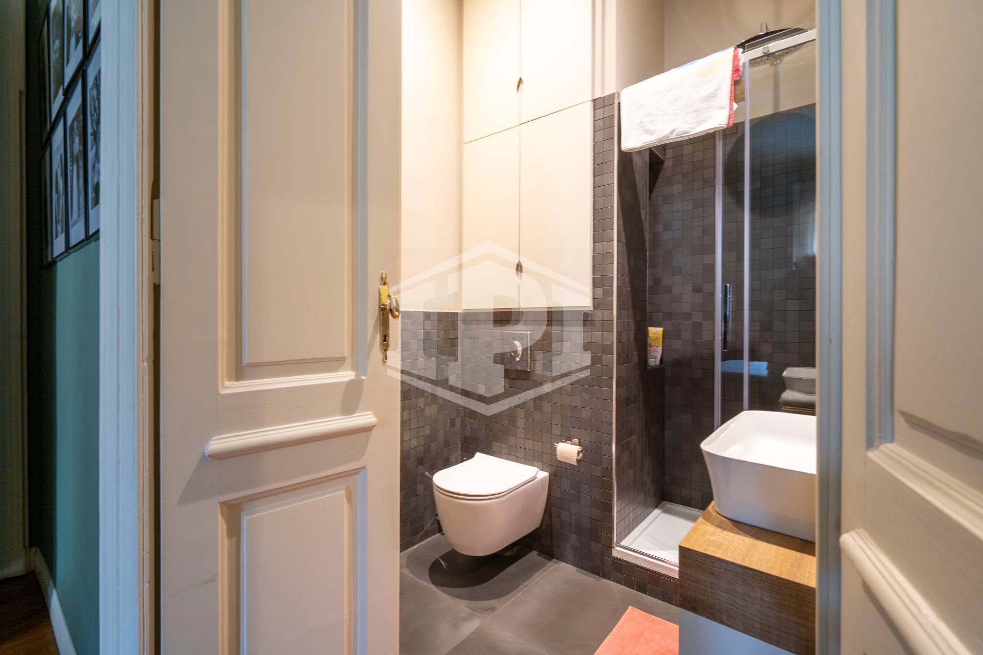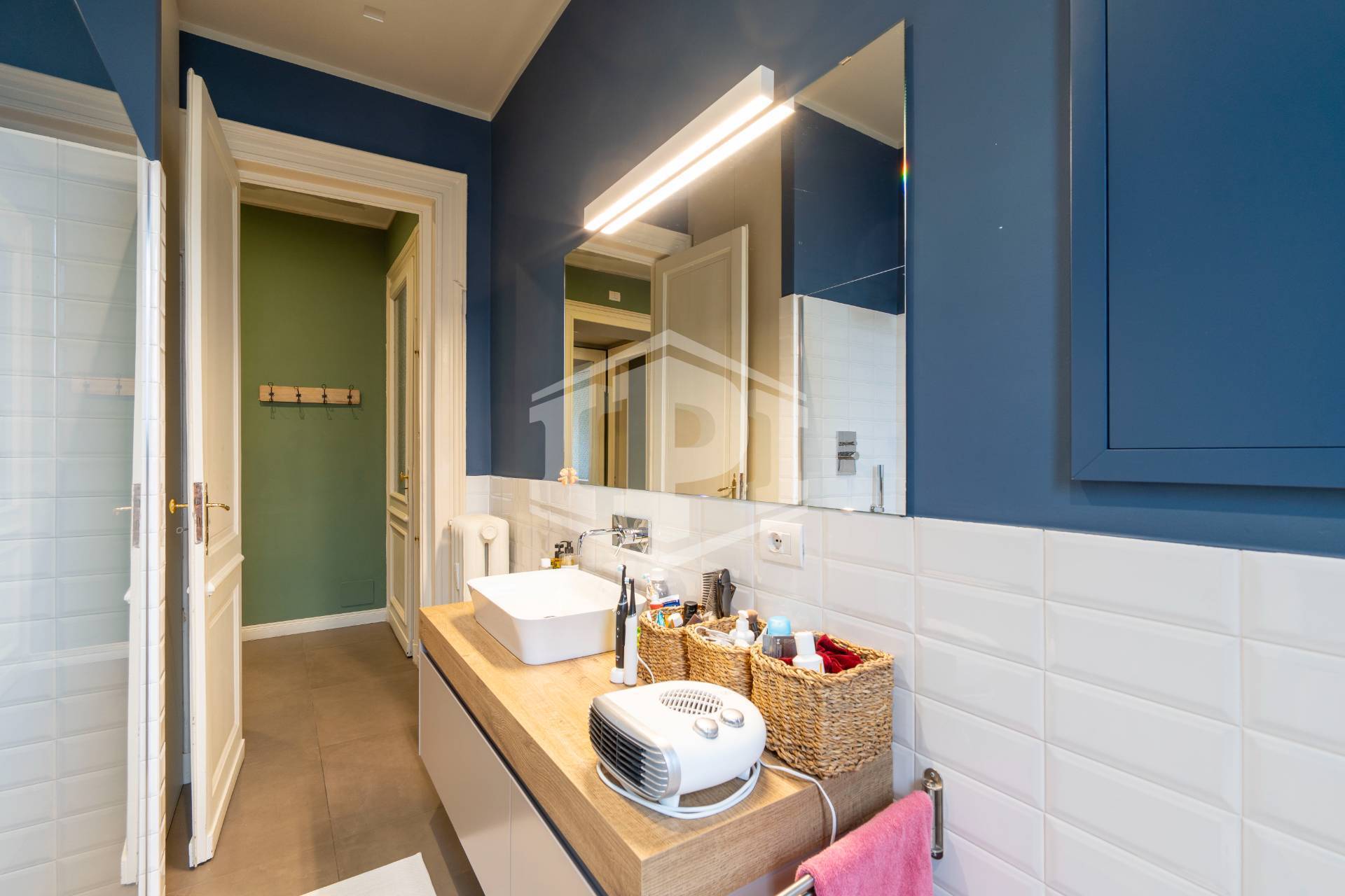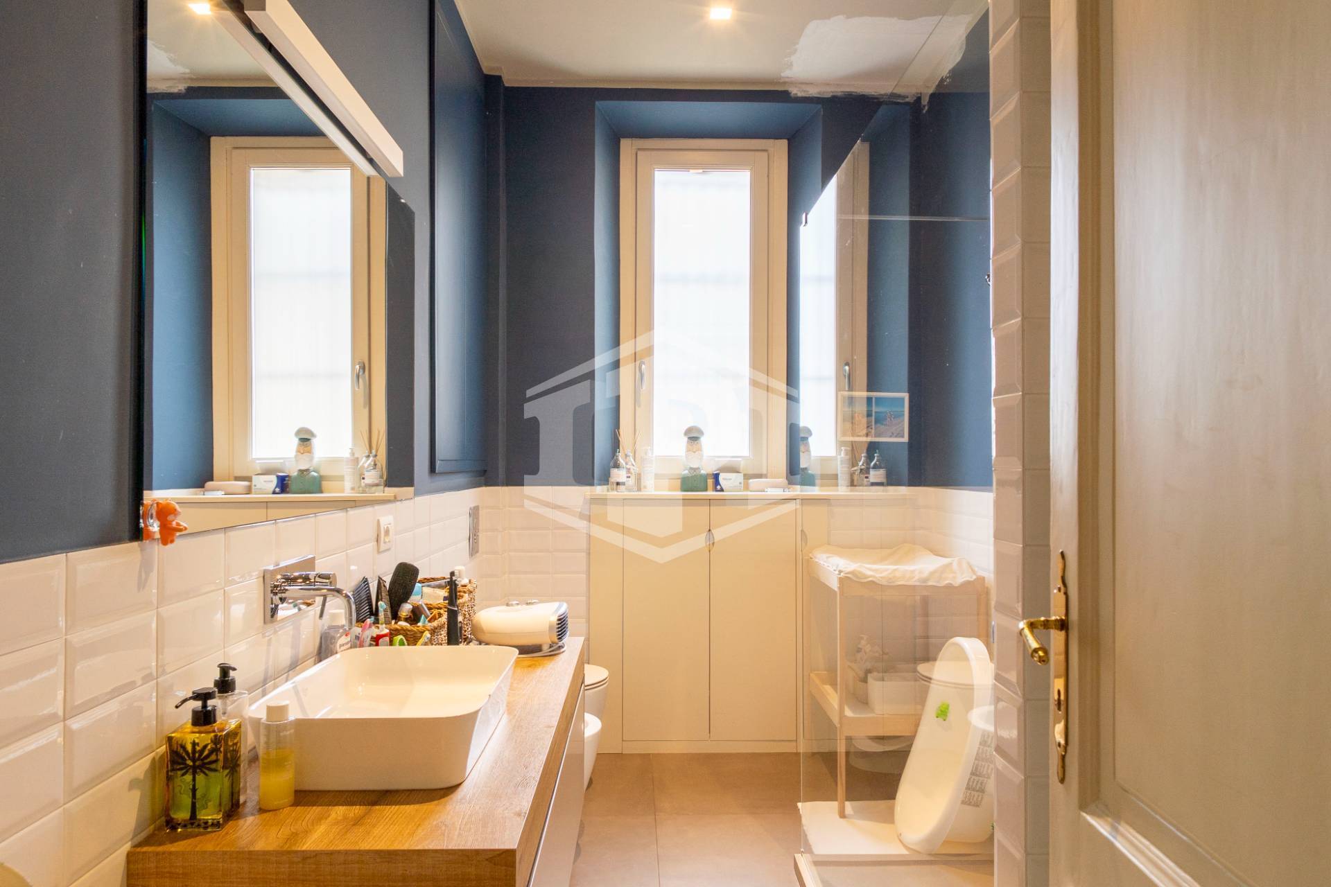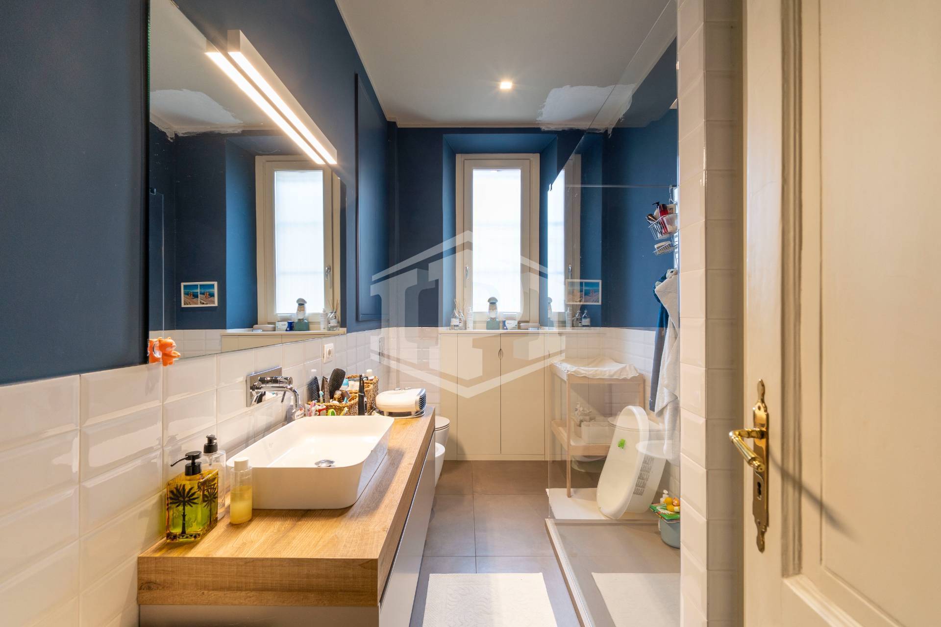 La zona notte accoglie due camere da letto, di cui una matrimoniale di generose dimensioni, pavimentazione in parquet e arricchita da una spaziosa armadiatura a muro. Doppi i servizi: il primo, finestrato serve la zona giorno mentre il secondo é situato nella zona notte come bagno en suite.