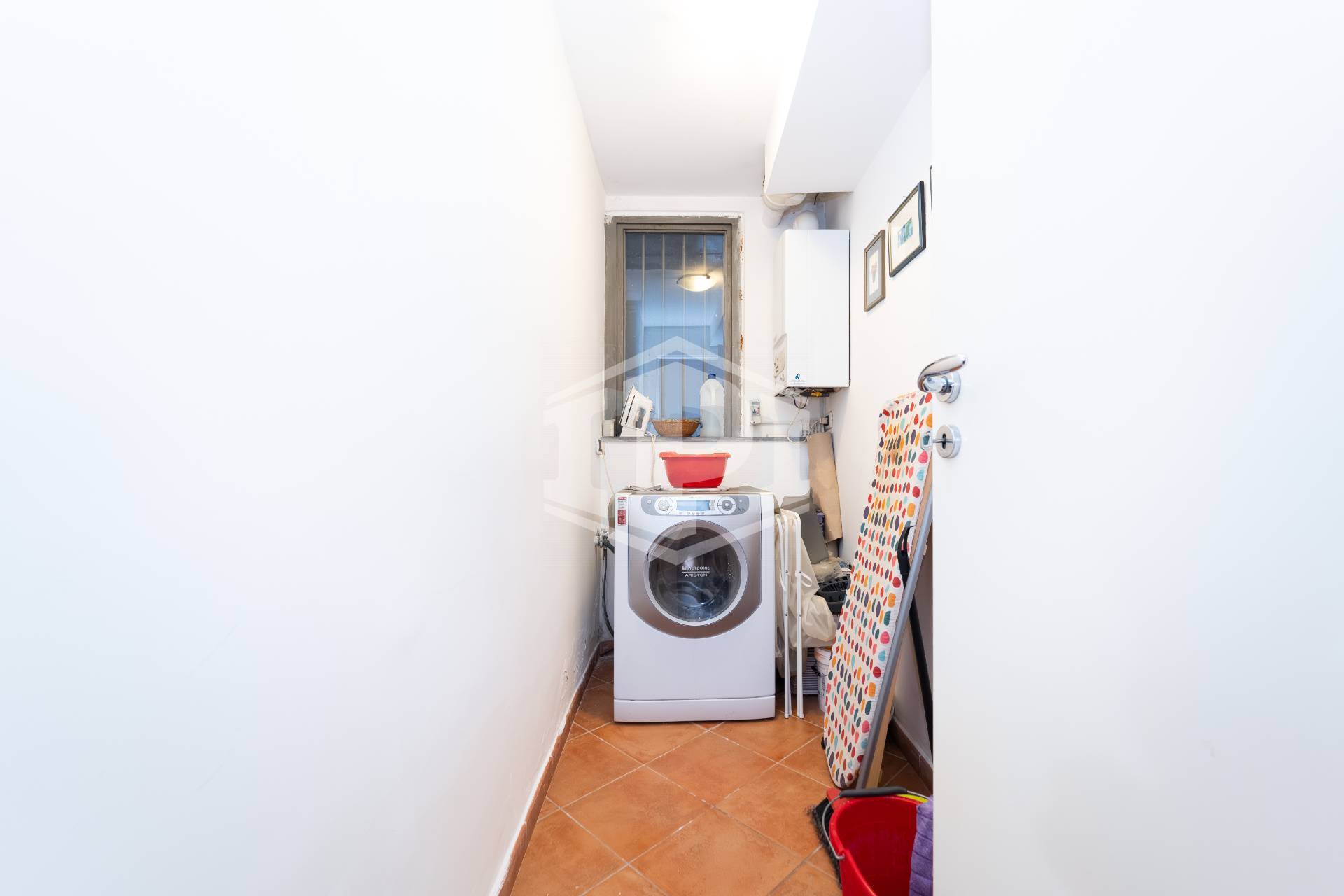 Collegata alla camera, un pratico disimpegno che ospita: cucina in nicchia con piano a induzione, forno e frigorifero, bagno con vasca e termoarredo, comoda lavanderia con lavatrice/asciugatrice e caldaia