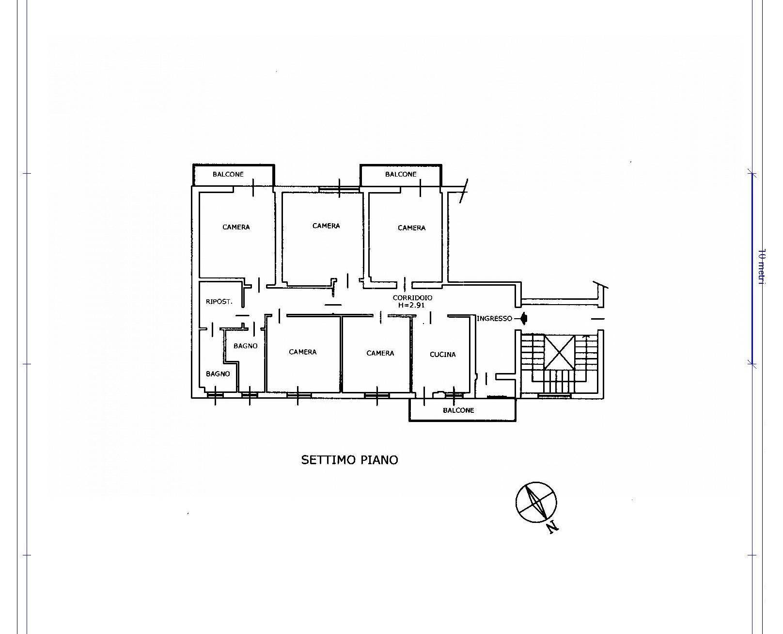 Centro - Adiacenze Via Milazzo - In palazzo signorile, al 7° ed ultimo piano con ascensore, Appartamento di ampie dimensioni. Composto da ampio ingresso con accesso al balcone, cucina abitabile con balcone, 5 camere matrimoniali di cu 2 con balcone, 2 bagni, ripostiglio. La proprietà comprende una cantina al piano interrato e un posto auto di proprietà nel cortile condominiale chiuso con cancello elettrico.