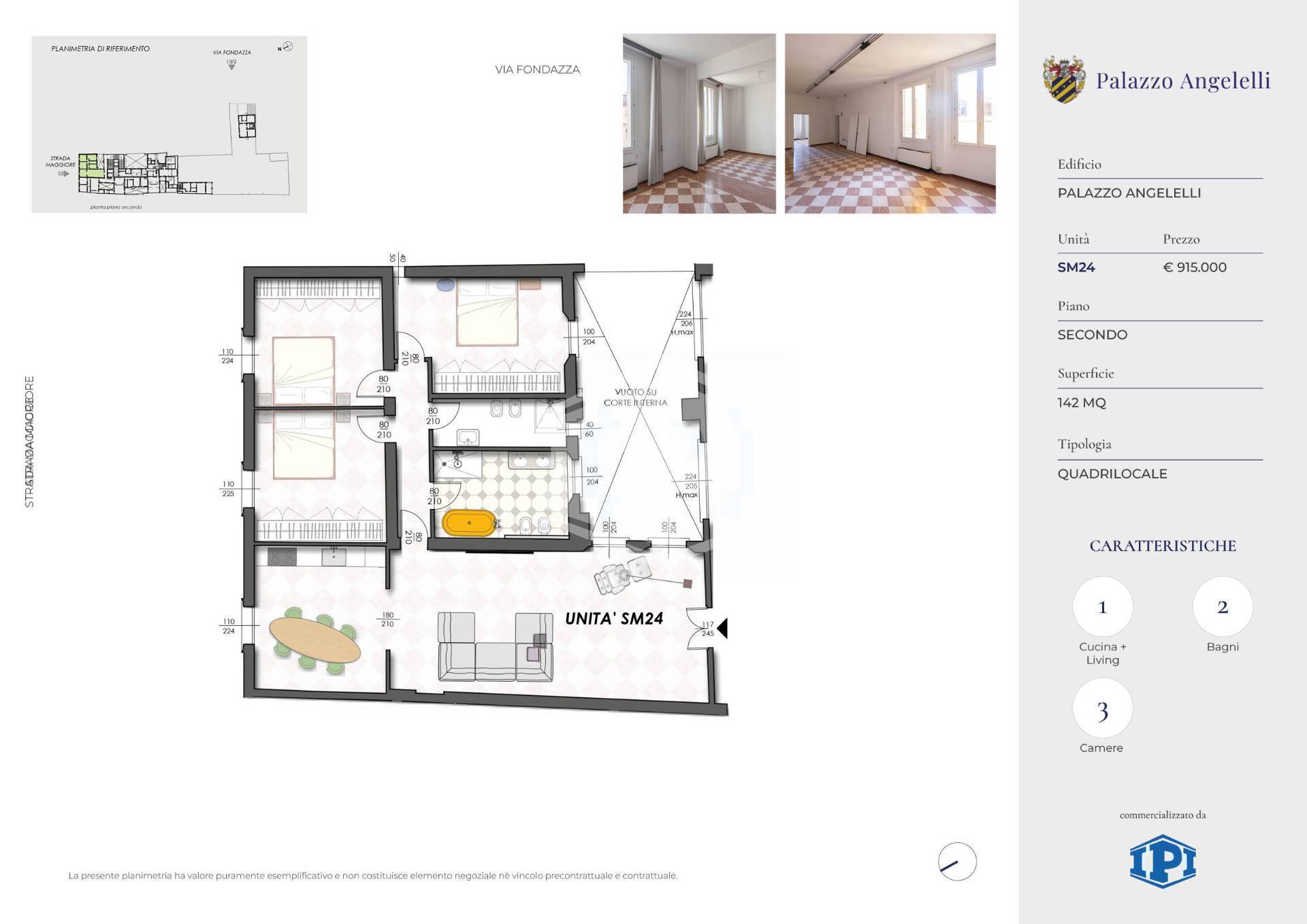 Centro Storico - Strada Maggiore - In prestigioso palazzo d'epoca, Palazzo Angelelli, Appartamento al secondo piano alto con ascensore. Composto da: ingresso su ampio salone, cucina abitabile, 3 camere matrimoniali, 2 bagni. L'abitazione ha ambienti ampi e luminosi grazie all'esposizione su tre lati.