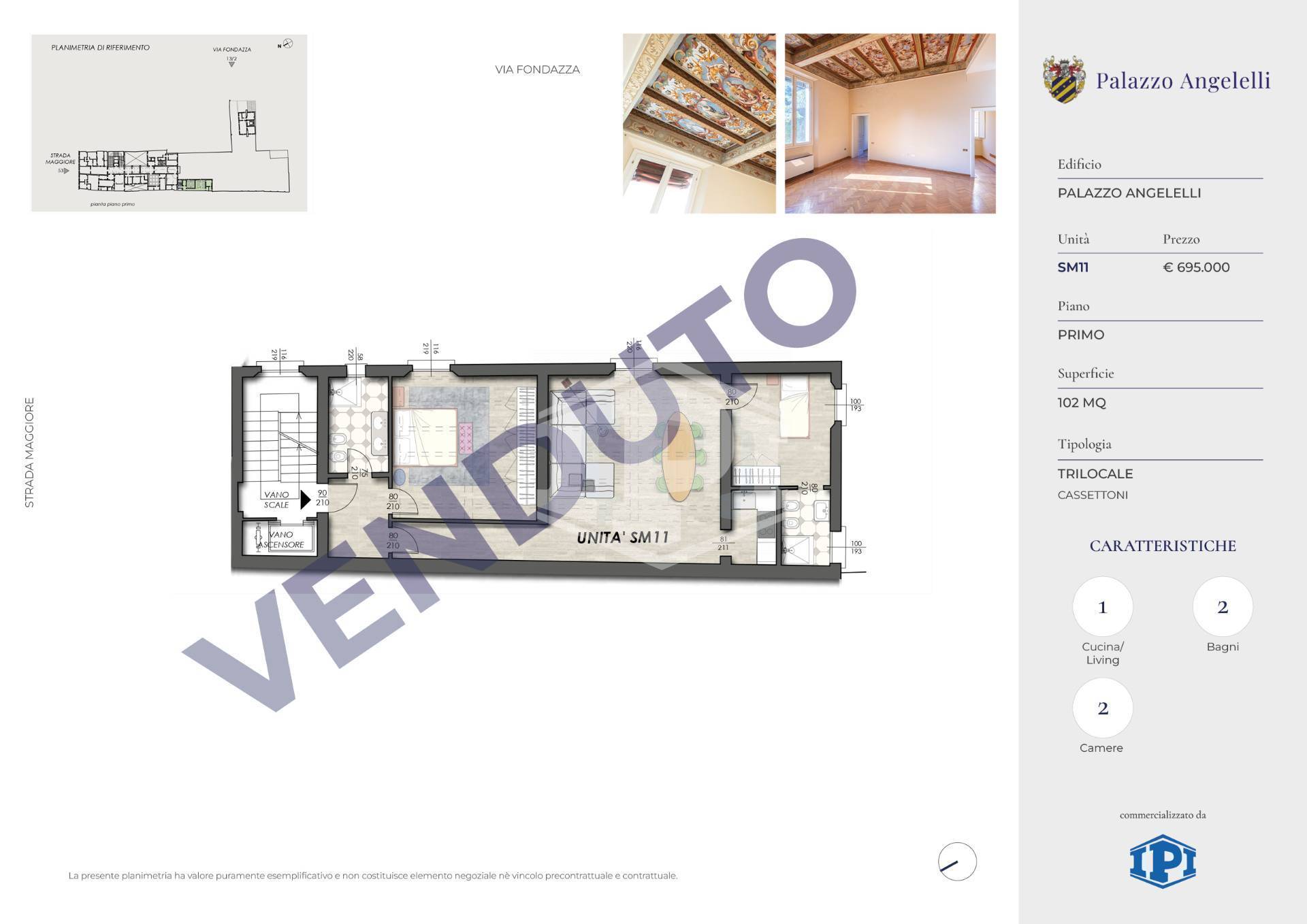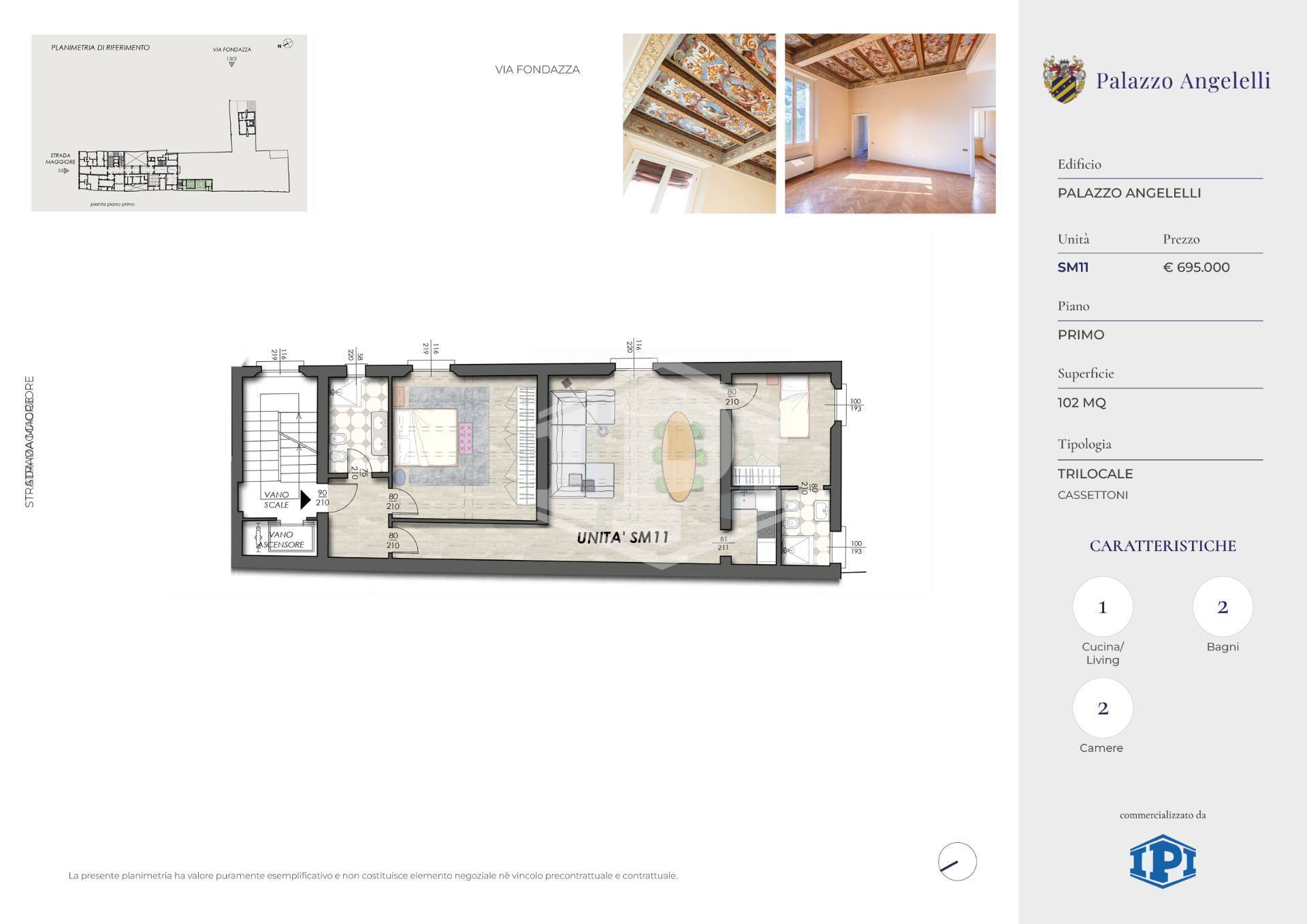 Centro Storico - Strada Maggiore - All'interno di un affascinante palazzo d'epoca, Palazzo Angelelli, si trova questo Appartamento di pregio con soffitti a cassettoni affrescati e pavimenti in parquet. Primo piano nobile servita da ascensore. Ingresso, sala con cucina in nicchia, 2 camere, 2 bagni. L'abitazione è luminosa e si affaccia totalmente sul grande giardino interno del palazzo.