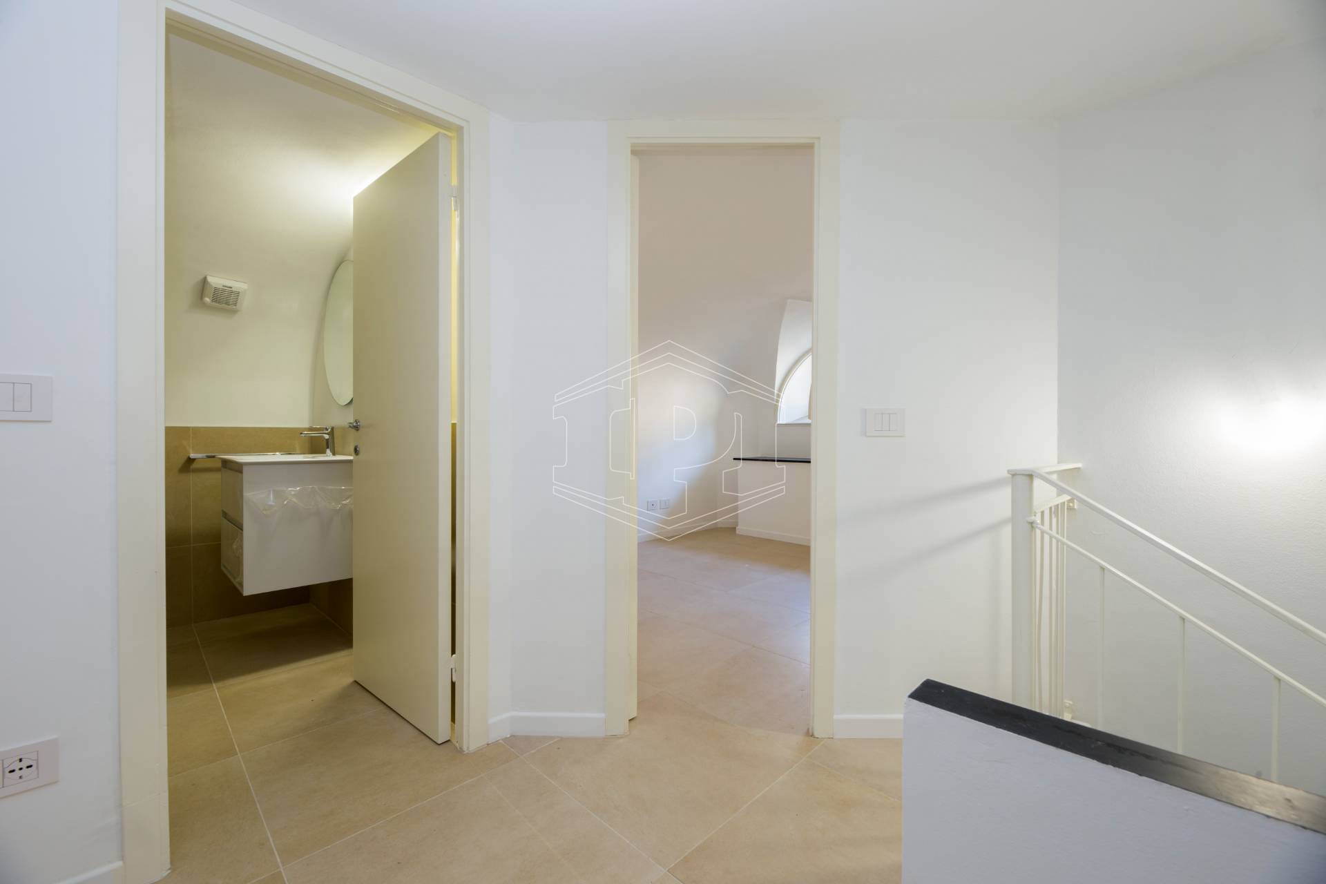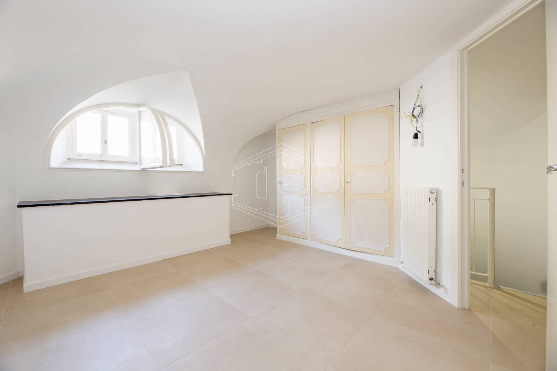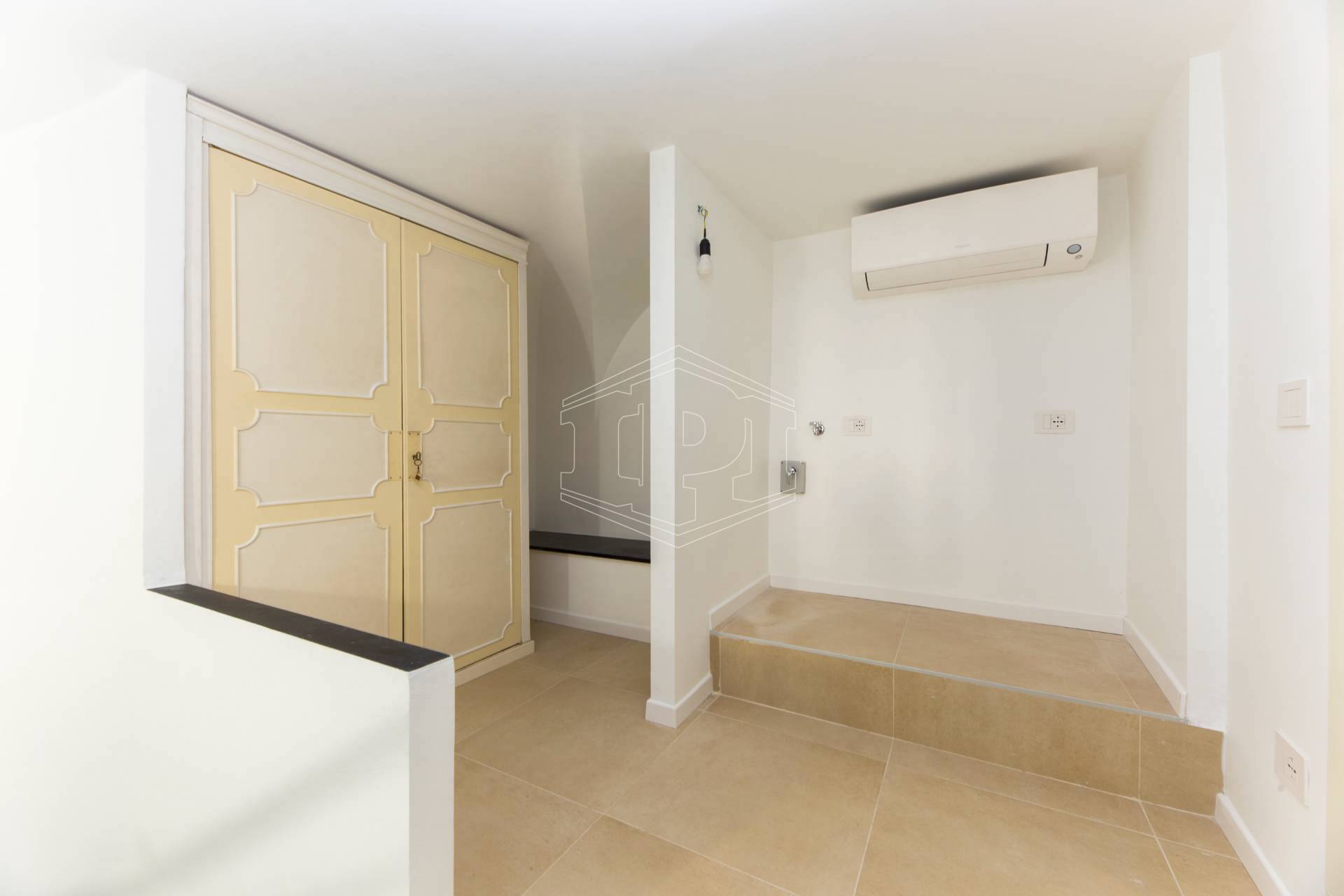 Si compone di: ingresso, ampio salone, cucina abitabile arredata, sala da pranzo con soffitti a volta, due camere da letto ciascuna con bagno privato, terzo bagno, cabina armadi, studio di passaggio, terrazzo vivibile con caratteristica vista tetti accessibile dal soggiorno, al piano superiore vi è un'altra camera con bagno e vano armadi.