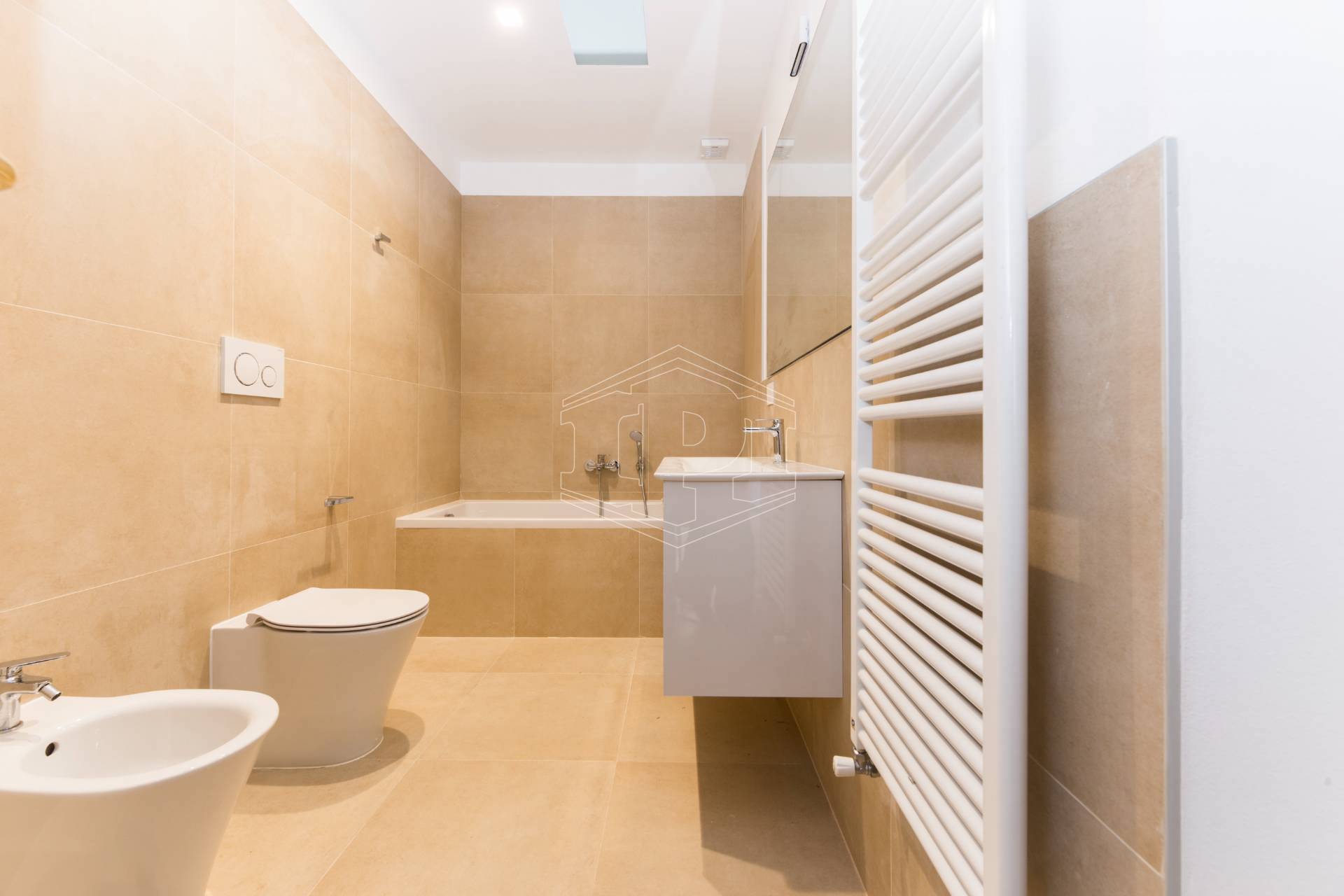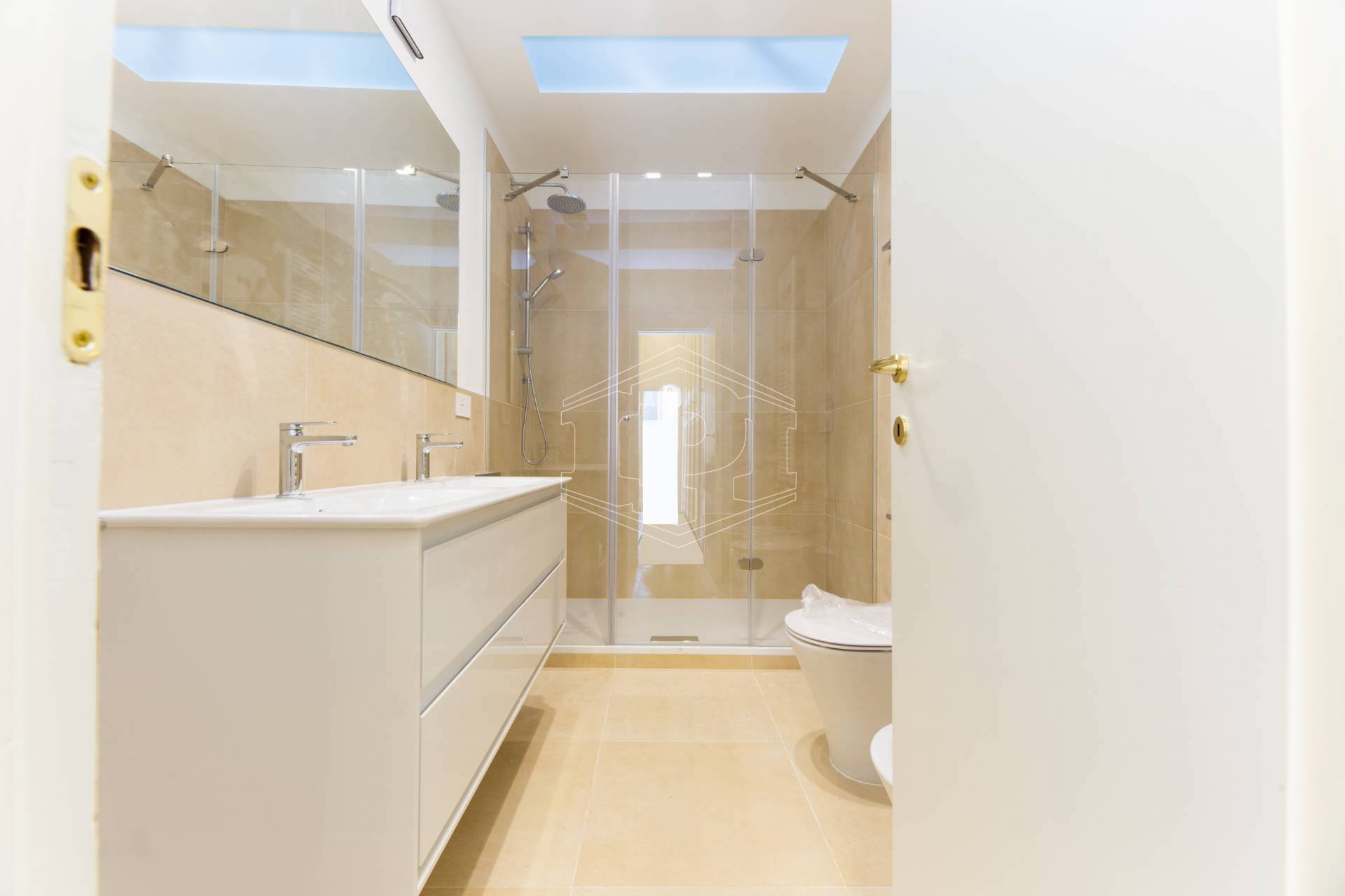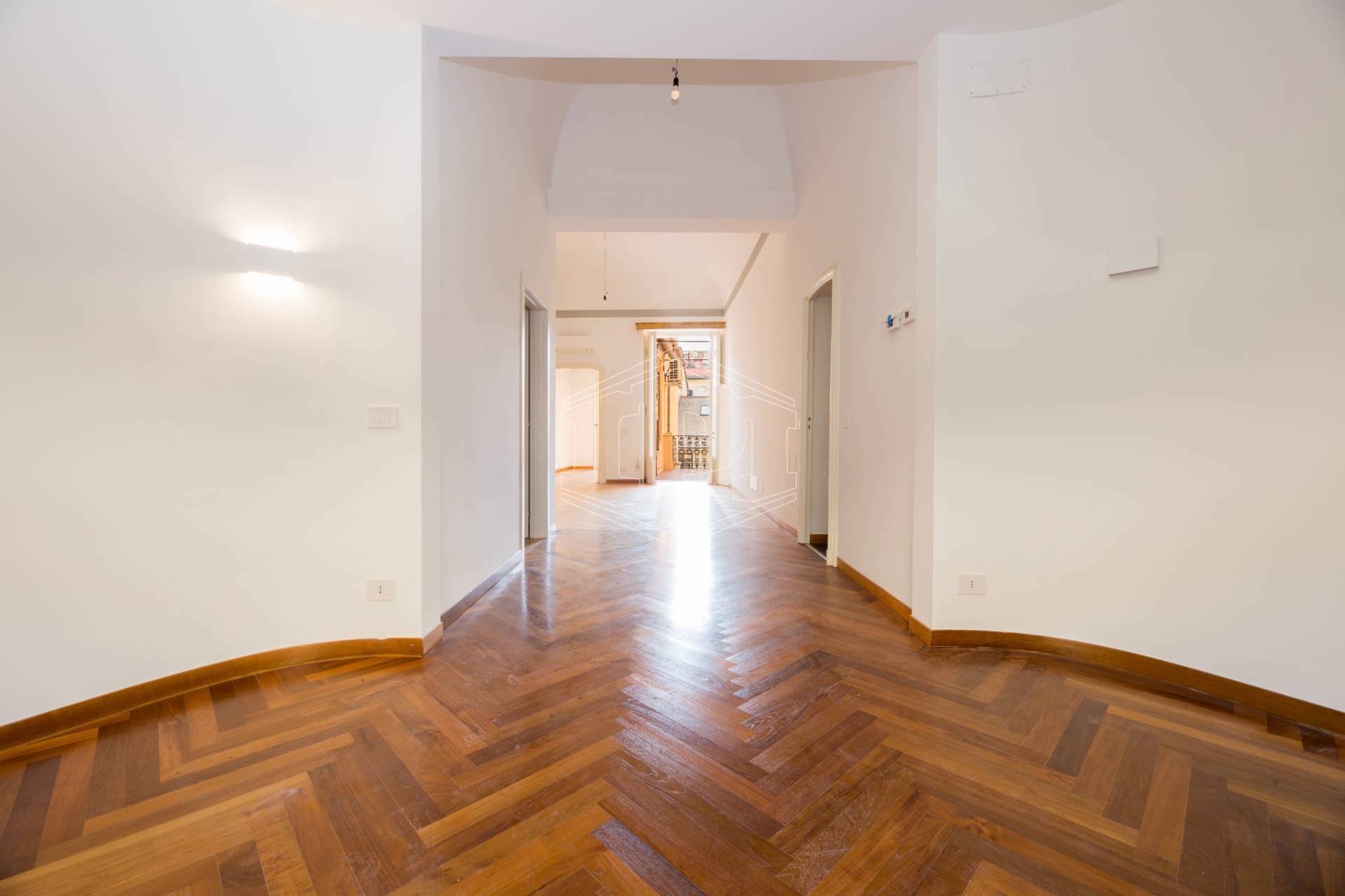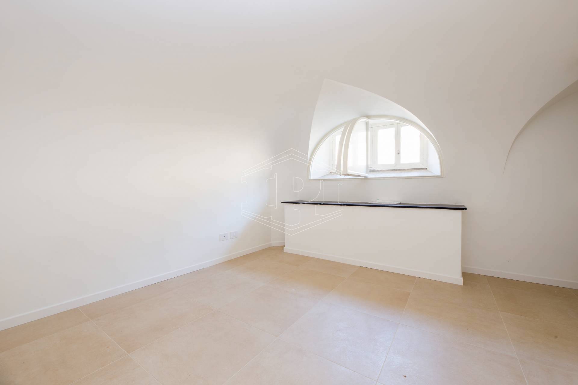 Si compone di: ingresso, ampio salone, cucina abitabile arredata, sala da pranzo con soffitti a volta, due camere da letto ciascuna con bagno privato, terzo bagno, cabina armadi, studio di passaggio, terrazzo vivibile con caratteristica vista tetti accessibile dal soggiorno, al piano superiore vi è un'altra camera con bagno e vano armadi.