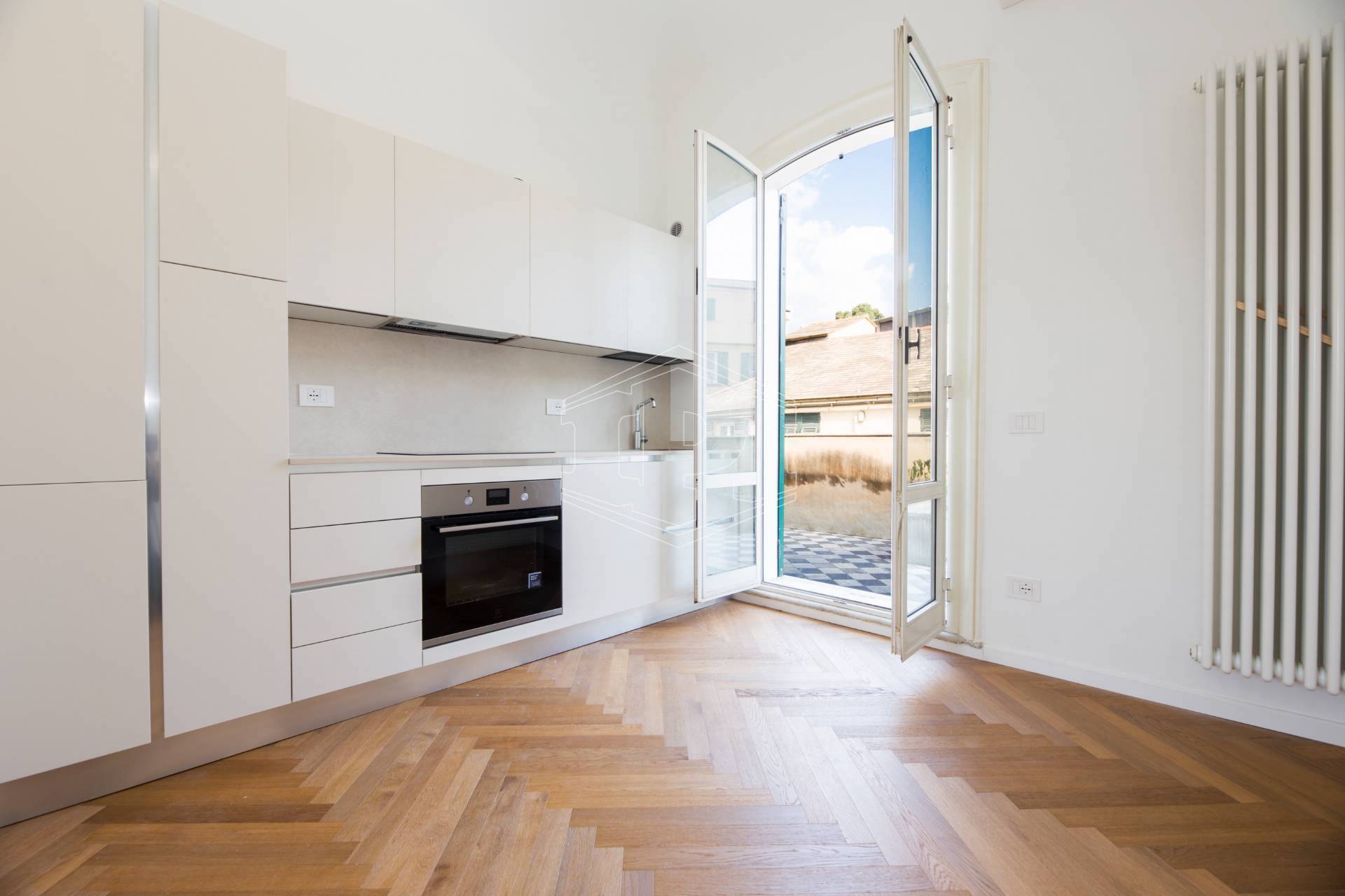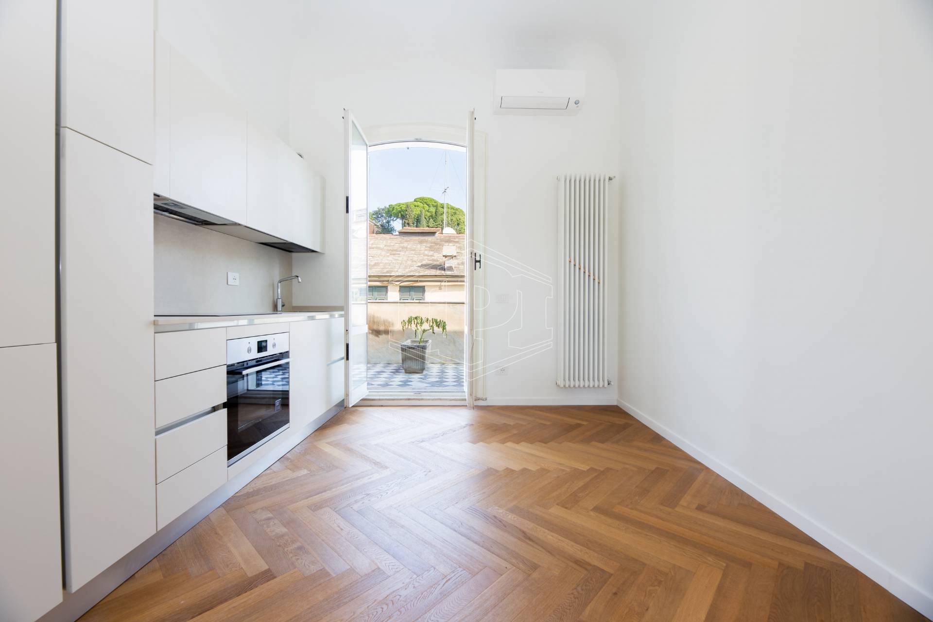 L'appartamento è sito al 5° ed ultimo piano con ascensore e si sviluppa su tre livelli, è stato appena ristrutturato integralmente mantenendo il fascino originale dell'epoca.