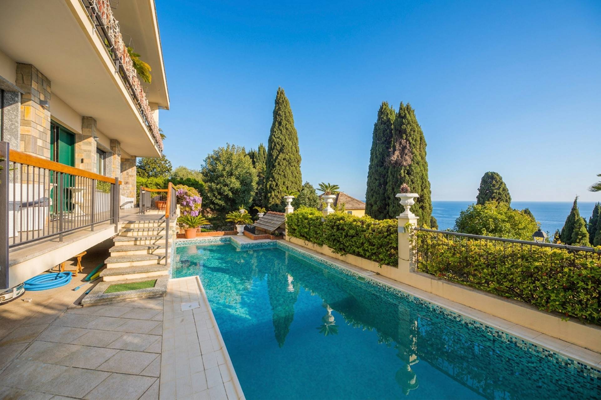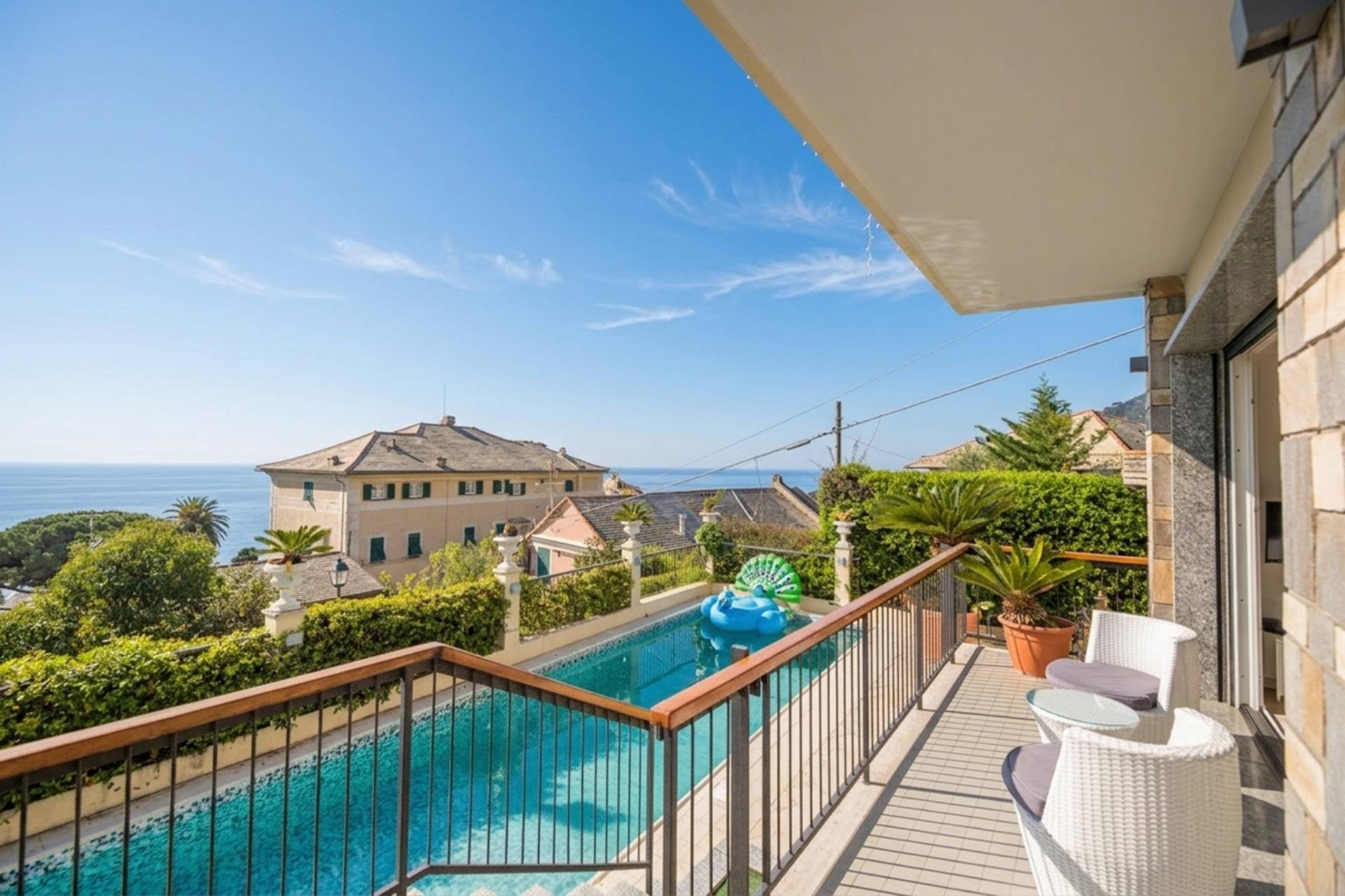 IPI Agency propone in vendita, in Via dei Floricoltori, in posizione panoramica e riservata, a pochi passi dal Parco di Nervi e dalla suggestiva passeggiata a mare, un esclusivo appartamento con piscina privata.