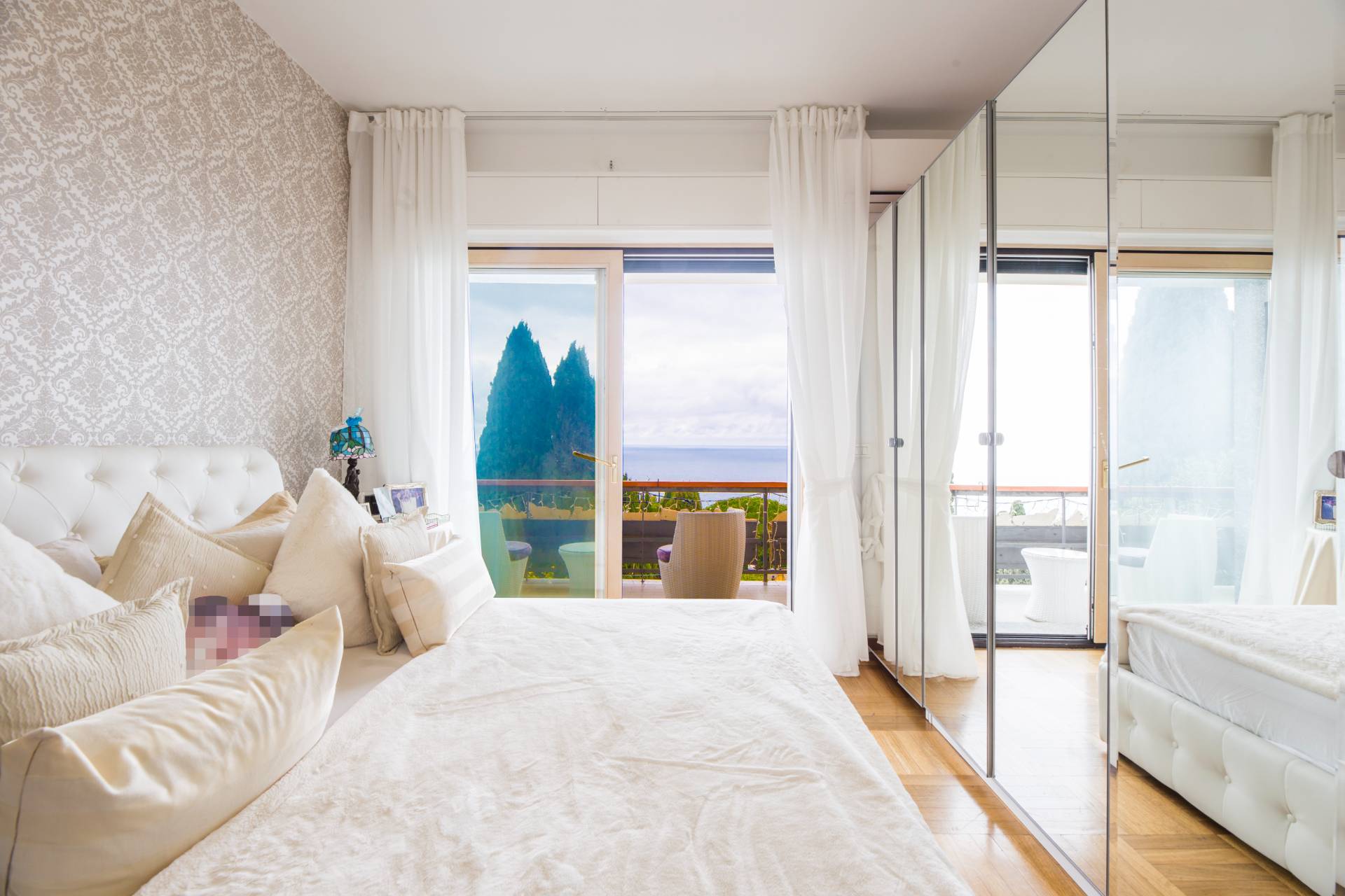 L'appartamento si sviluppa su tre livelli, collegati da ascensore interno privato, e gode di un'esposizione privilegiata con vista aperta sul mare da tutti gli ambienti. Ogni piano dispone di spazi esterni attrezzati, ideali per vivere appieno ogni stagione.