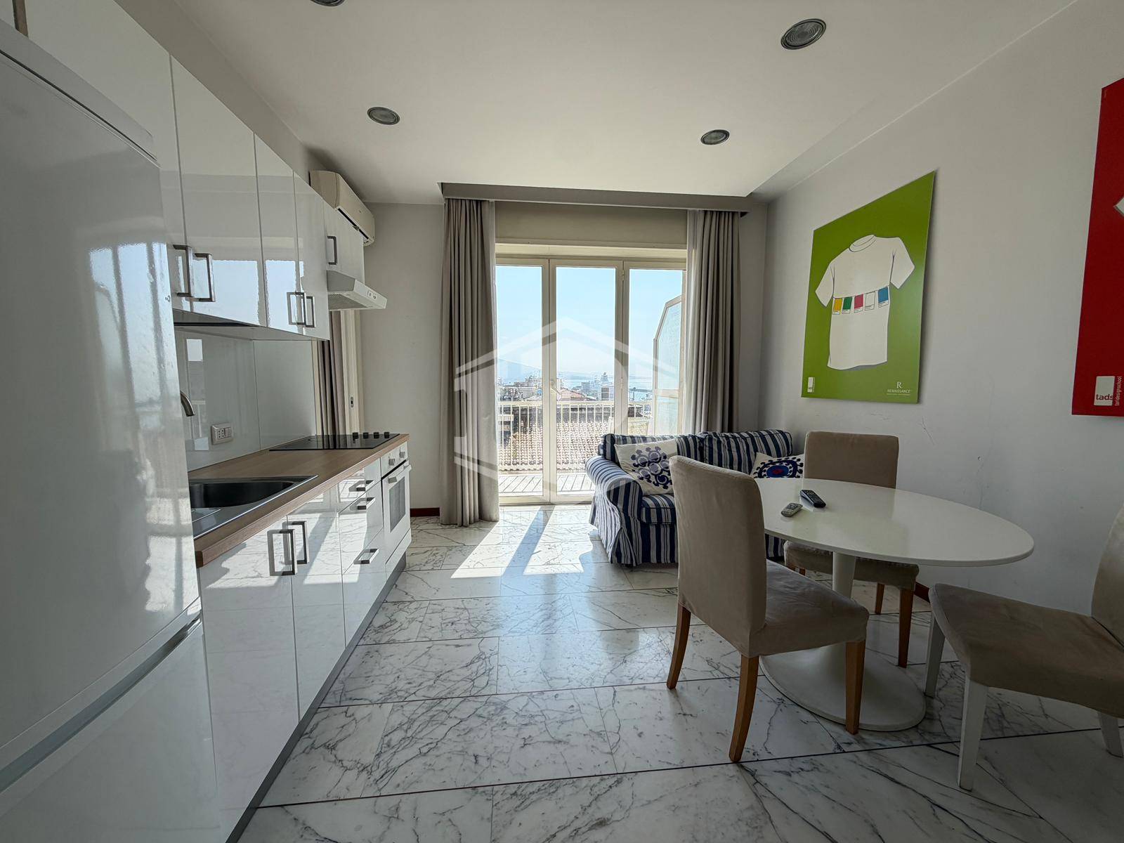 L'immobile, di circa 40 mq, è completamente arredato ed è composto da zona living con cucina a vista e area pranzo, camera da letto matrimoniale, bagno e balcone con affaccio panoramico sulla città.