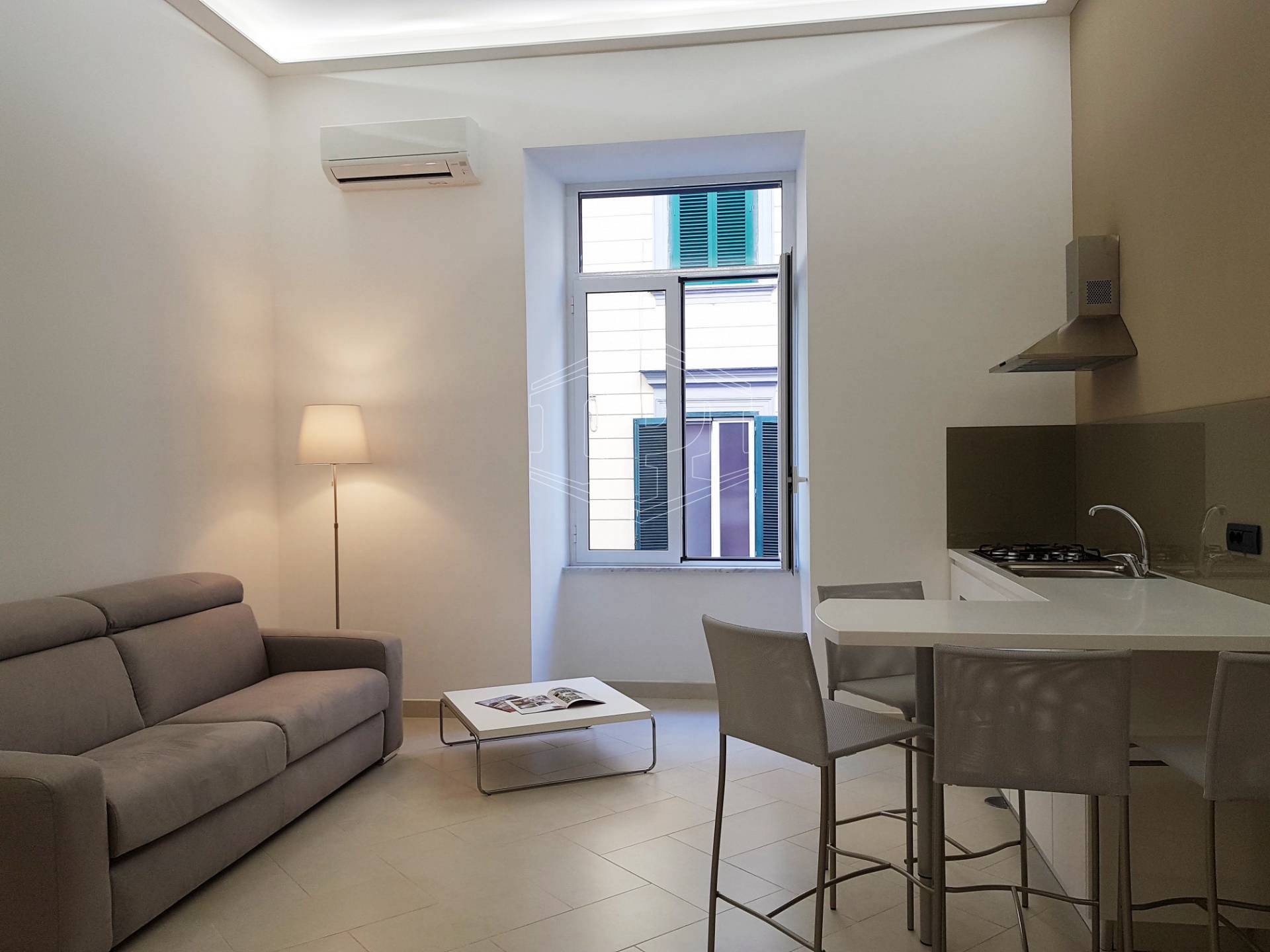 NAPOLI CENTRO - In Via Duomo, all'interno di un bellissimo palazzo signorile con servizio di portierato, proponiamo in locazione, ad un primo piano servito da ascensore, un appartamento di circa 45 mq. L'immobile si compone di un ingresso in living con cucina dotata di tutti gli elettrodomestici ed un divano letto; la zona notte è composta da una camera da letto matrimoniale con ampio armadio e stipetto aereo. Completa un disimpegno con vano lavatrice e un confortevole bagno con doccia. L'immobile si presenta in ottimo manutentivo ed è dotato di impianto di riscaldamento con caldaia ed impianto di condizionamento. Gode di una posizione eccellente, a pochi passi dai principali luoghi storici di interesse turistico: a 100 mt dalla Stazione "Duomo" della Linea 1 della Metropolitana di Napoli. Immerso nel vivace centro storico, la zona è ricca di trattorie, bar, locali con musica dal vivo e negozi tipici napoletani.