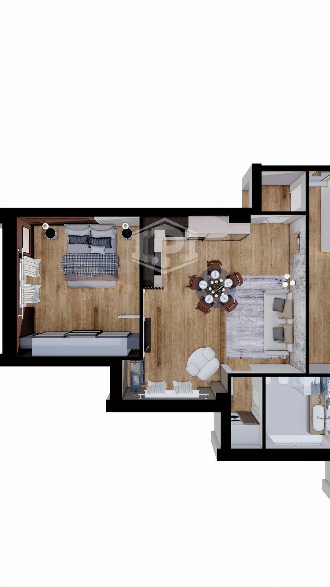Appartamento in corso di totale riqualificazione di 78 mq commerciali composto da ampio ingresso su soggiorno/cucina, una camera da letto, un bagno e un balcone. Completa la proprietà la cantina.
