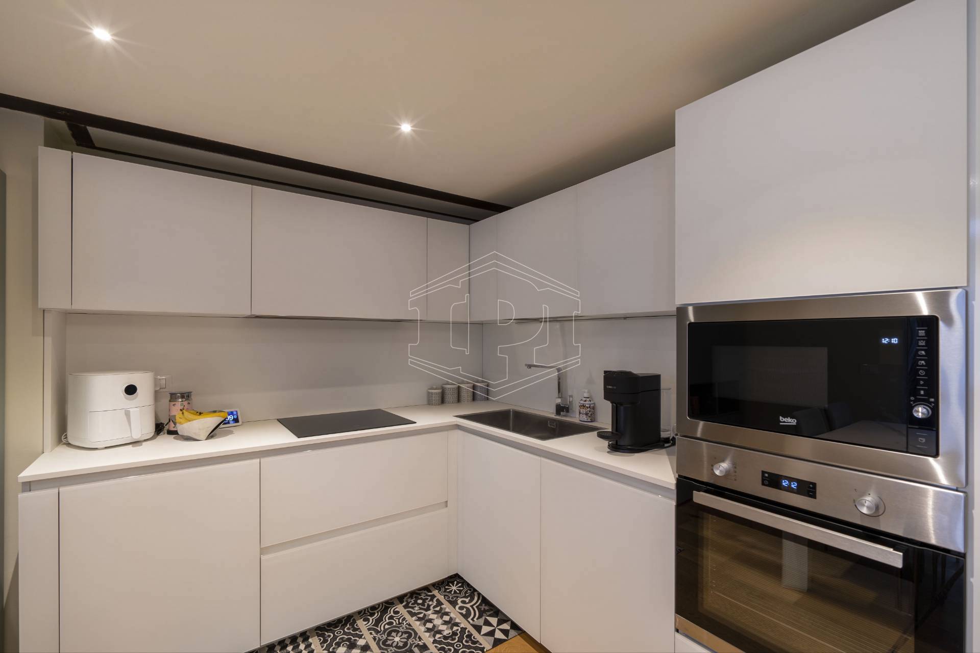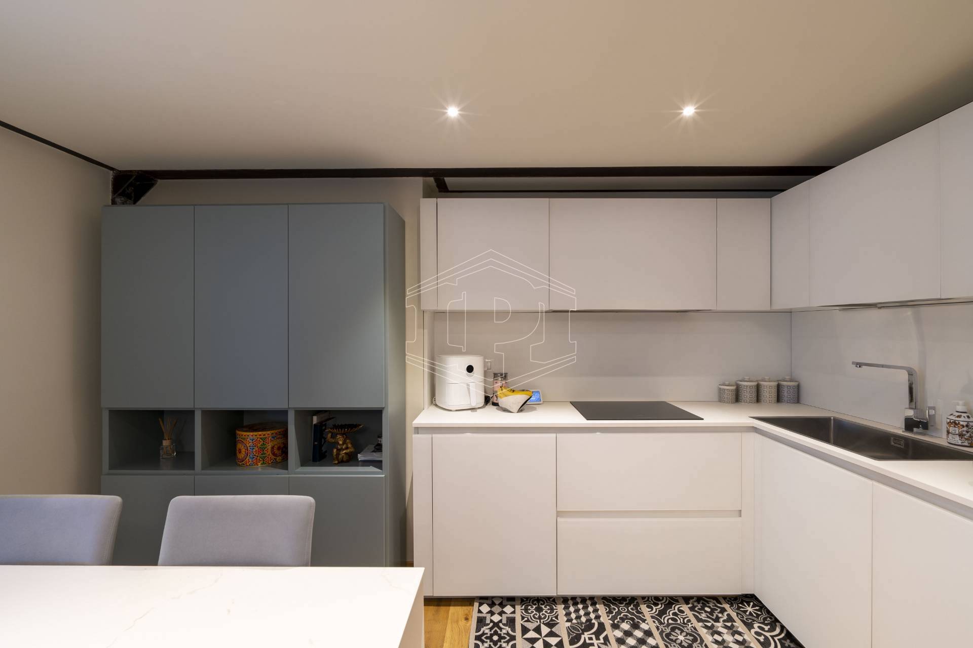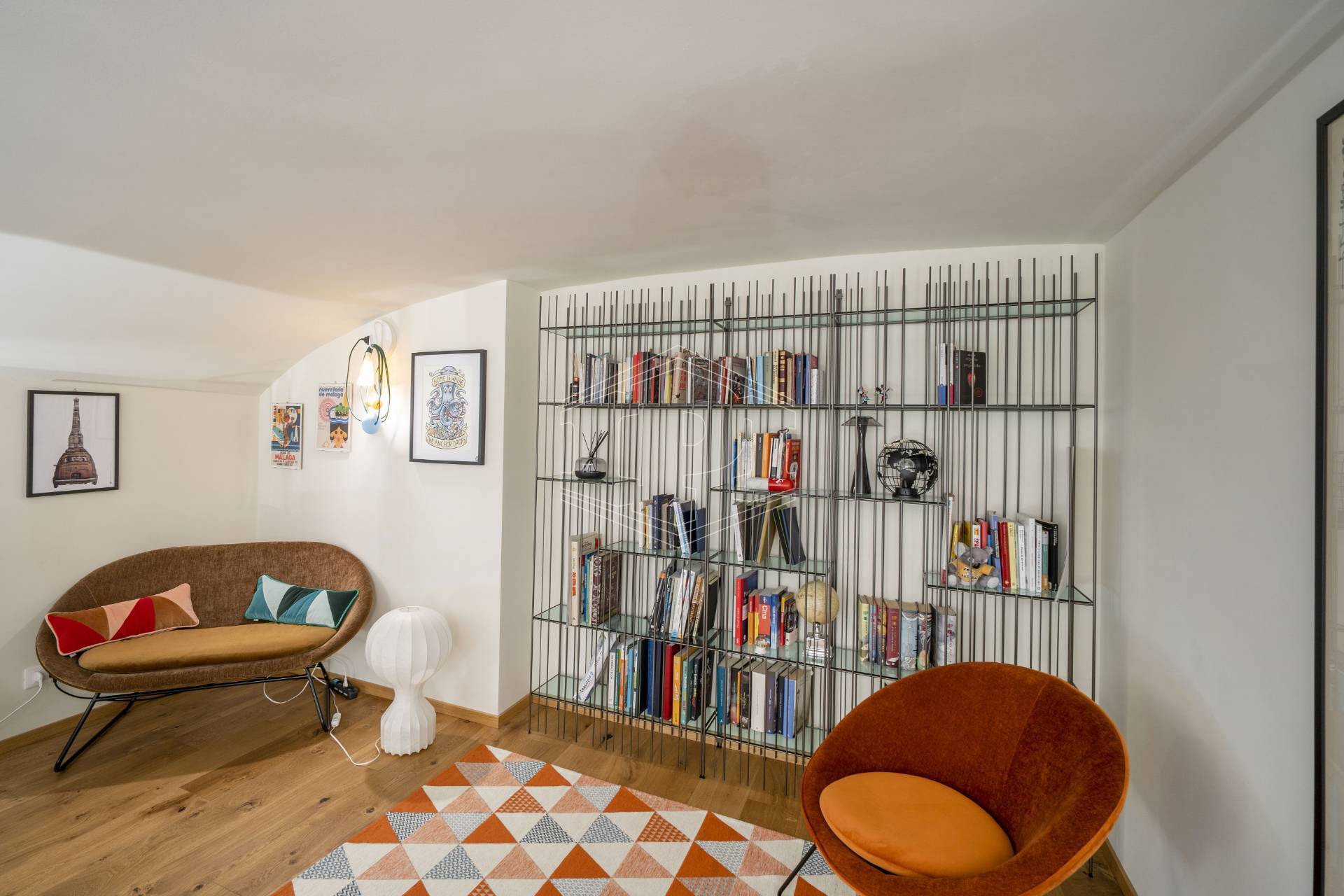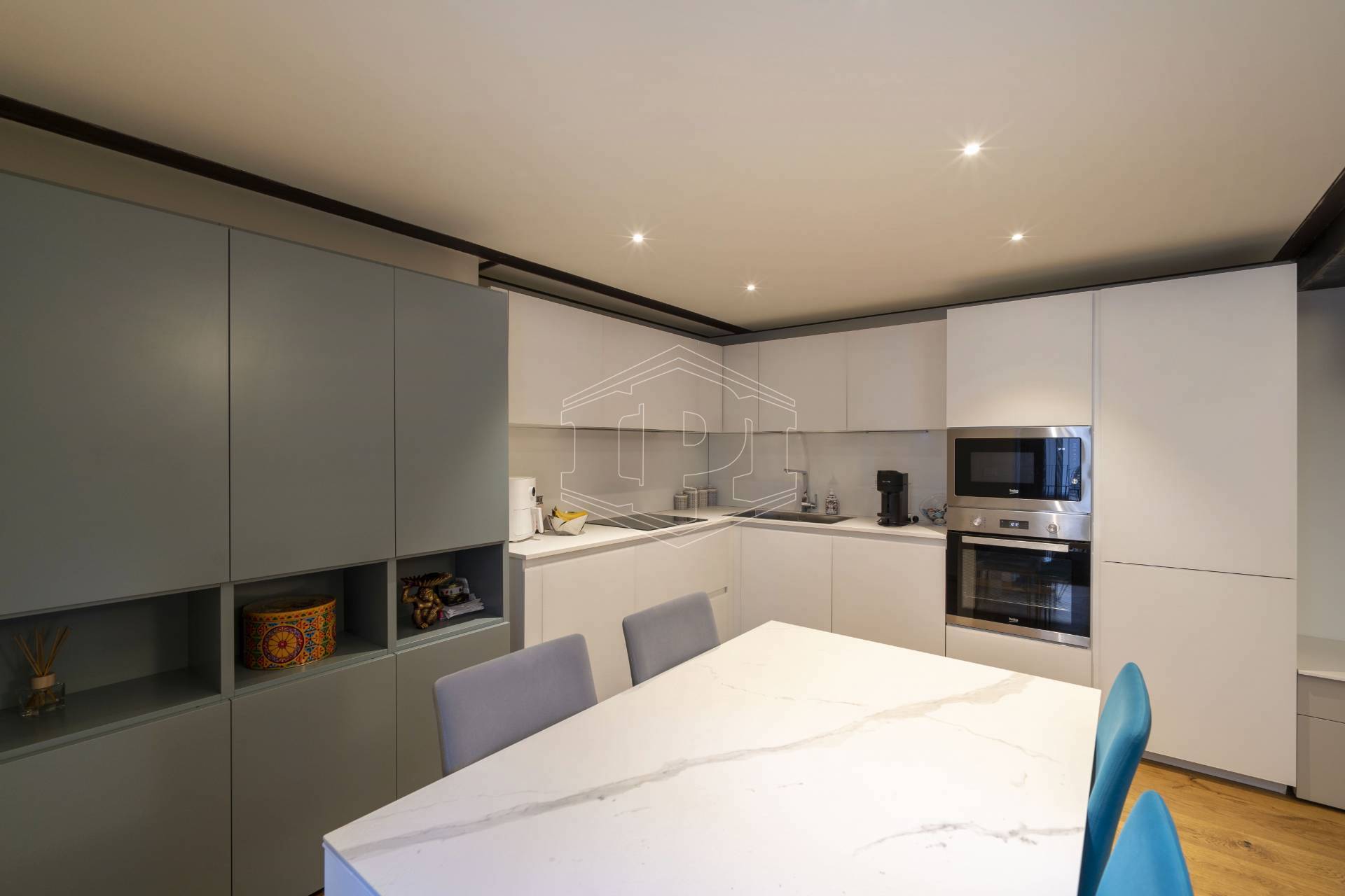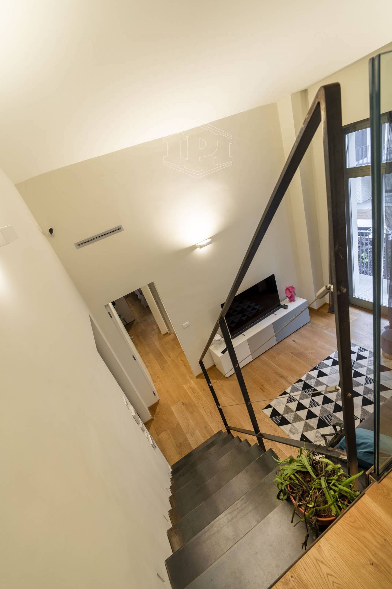 Appartamento completamente arredato di mq 83 composto da: ingresso su soggiorno con cucina collegato a un piano soppalco con zona studio, disimpegno, bagno, una camera da letto con soppalco ad uso cabina armadio, ampio balcone con affaccio su giardino interno.