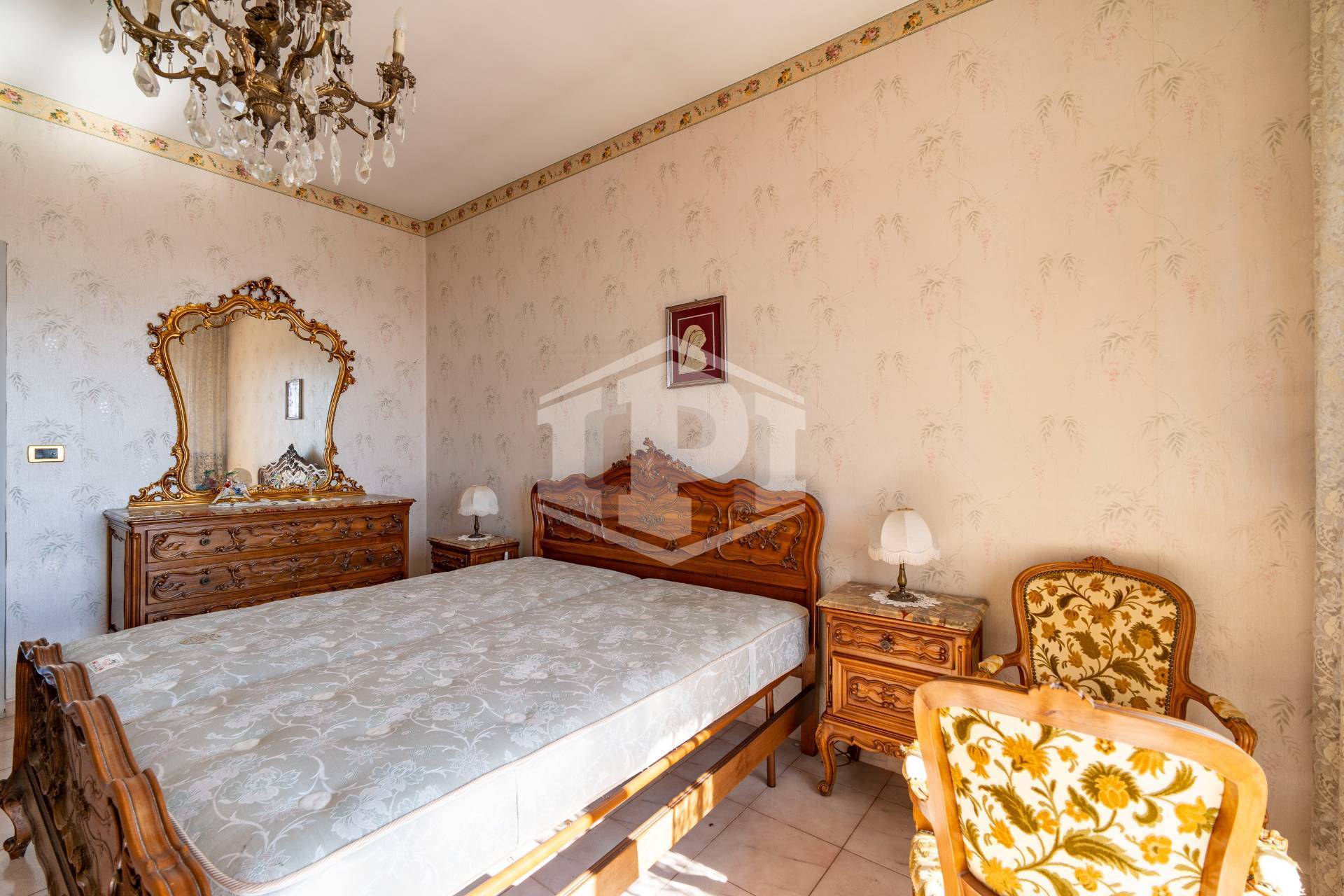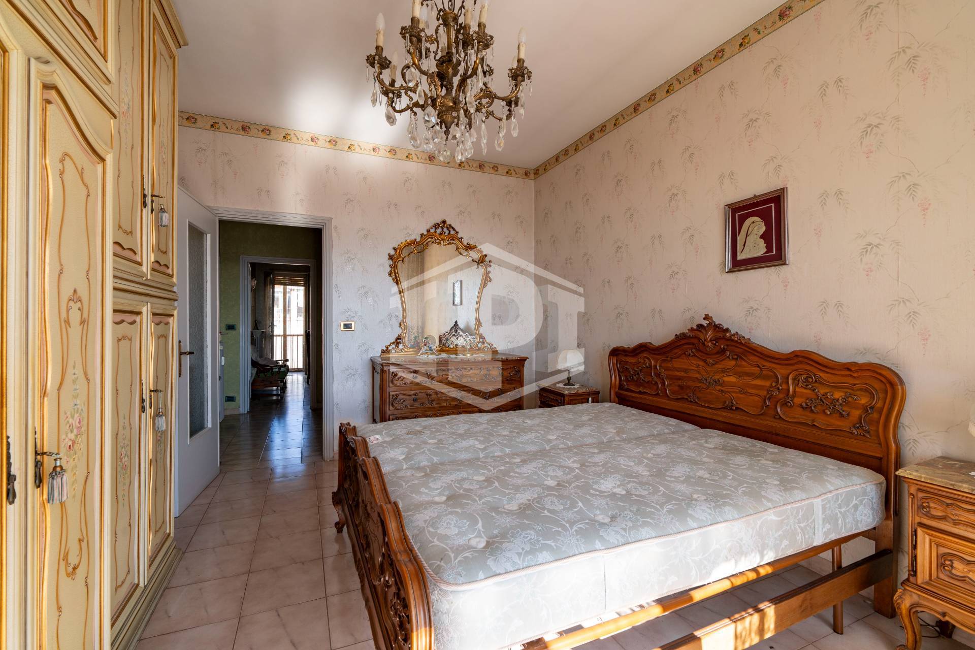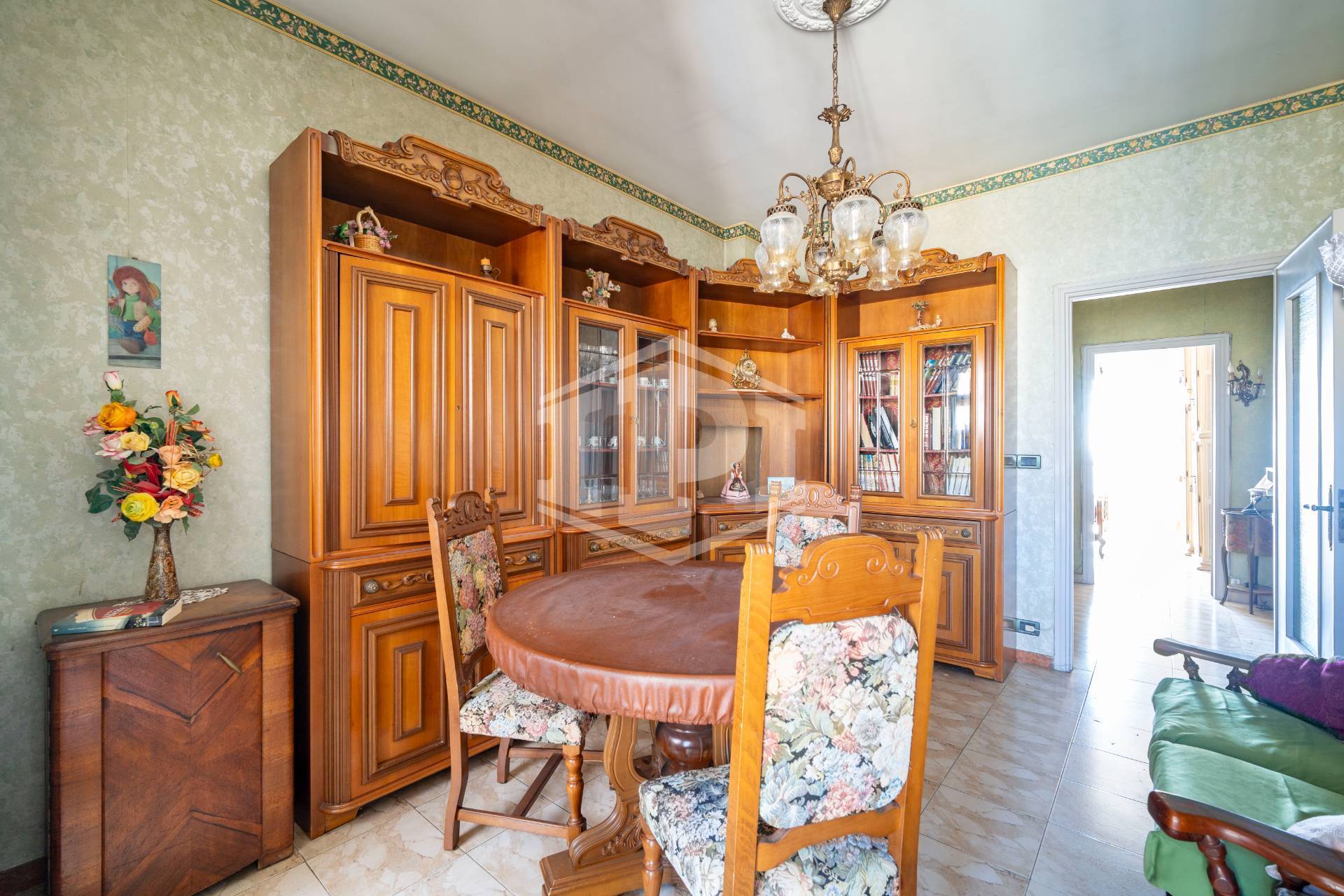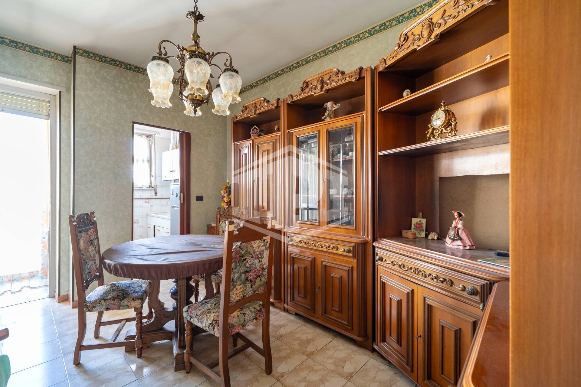 I pavimenti sono in marmo ad eccezione di bagno e cucina dove è presente la ceramica, gli infissi esterni sono in legno con vetro semplice e l'oscuramento è ottenuto da tapparelle. Il riscaldamento è centralizzato con termo valvole, a metano. L'alloggio si presenta in stato originale ed è particolarmente luminoso e panoramico.
