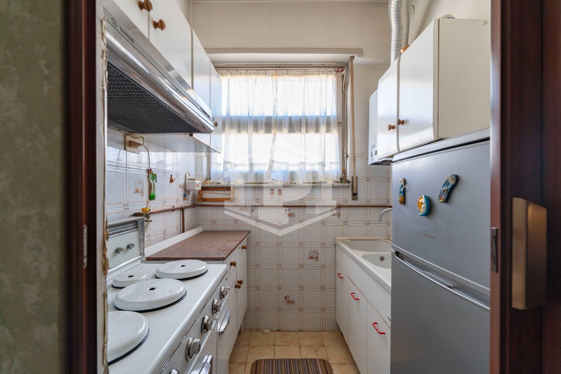 L'appartamento è posto al nono ed ultimo piano di una palazzina anni '60 dotata di ascensore. Gode di doppia esposizione sud - nord.