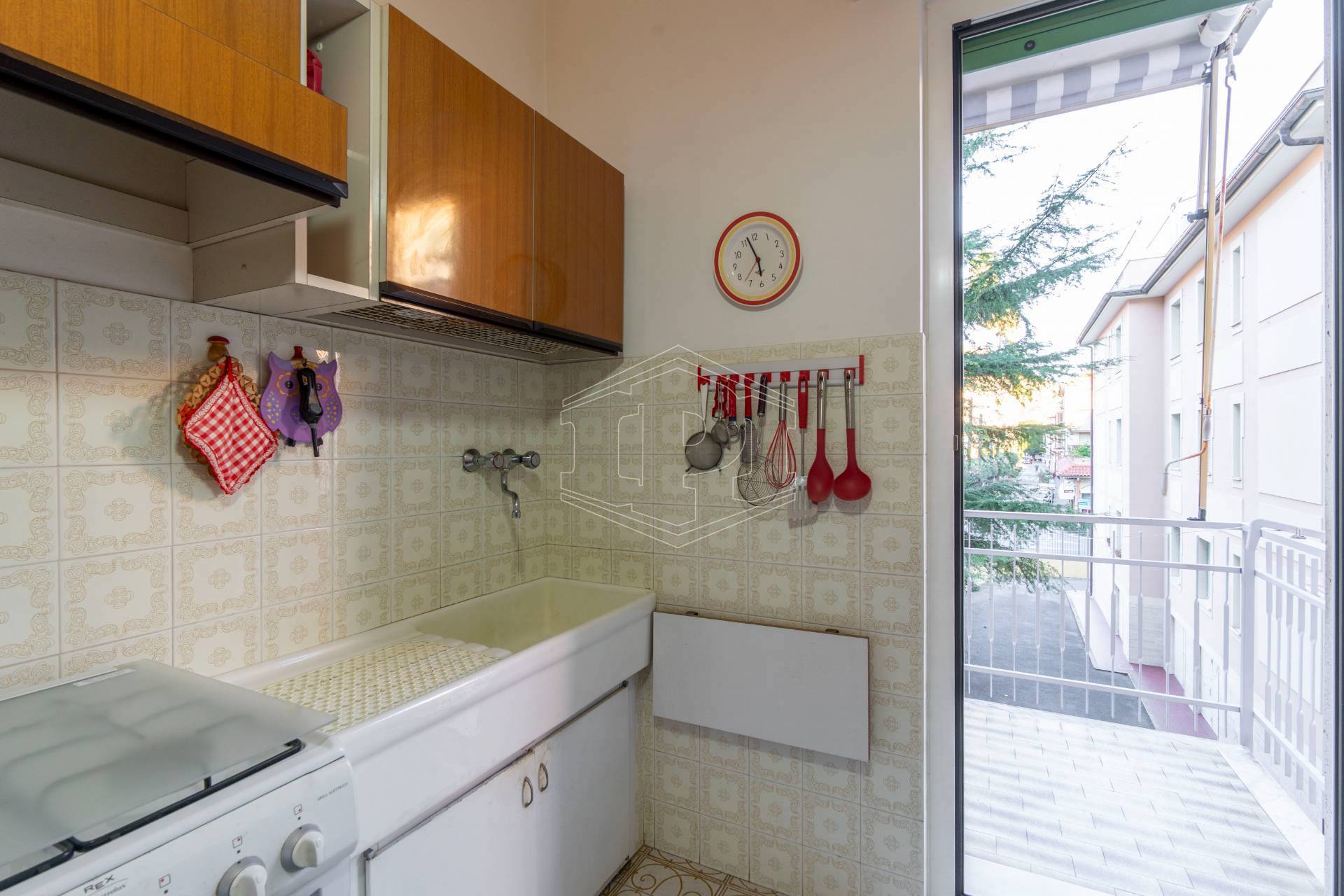 Appartamento arredato di 40 mq, composto da: ingresso, cucina abitabile con balcone, una camera, e bagno. Completano la proprietà il box auto di 17 mq dotato di punto acqua e la cantina al piano terra.