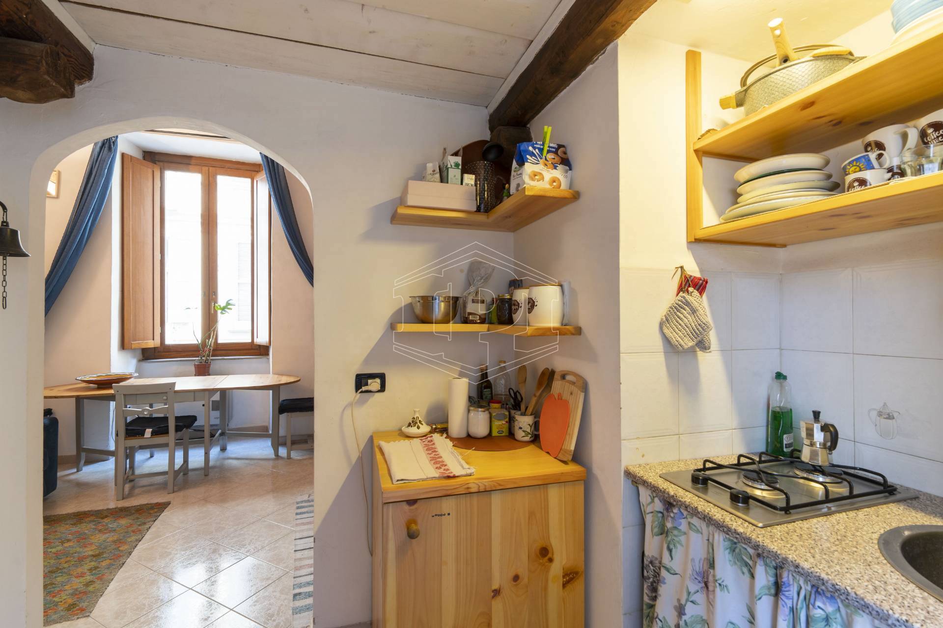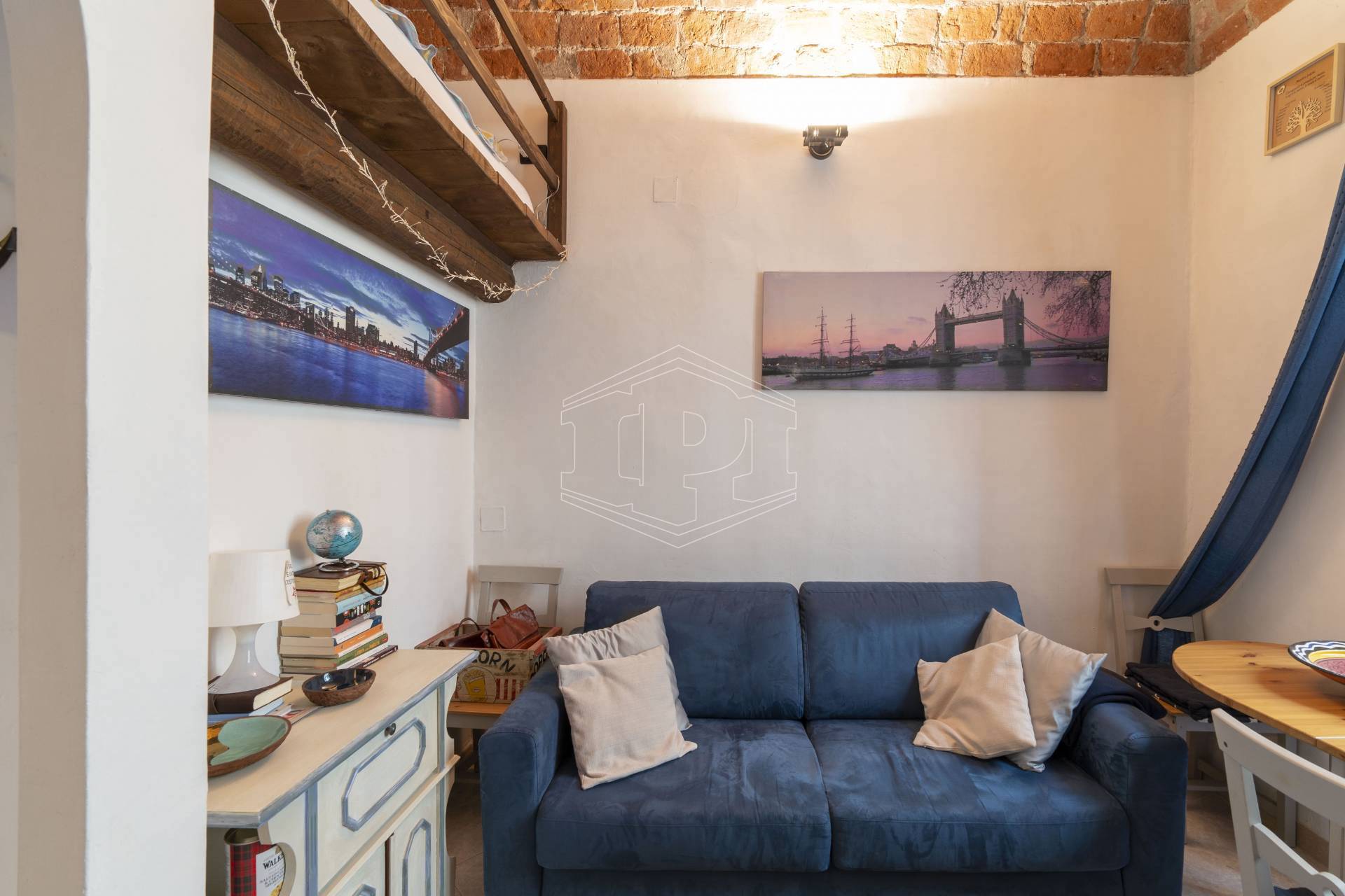 Monolocale arredato di 33 mq con comoda scala che porta al soppalco, composto da: ingresso su cucina, zona soggiorno/camera da letto, bagno e un balcone. Completa la proprietà un vano ripostiglio sul balcone.