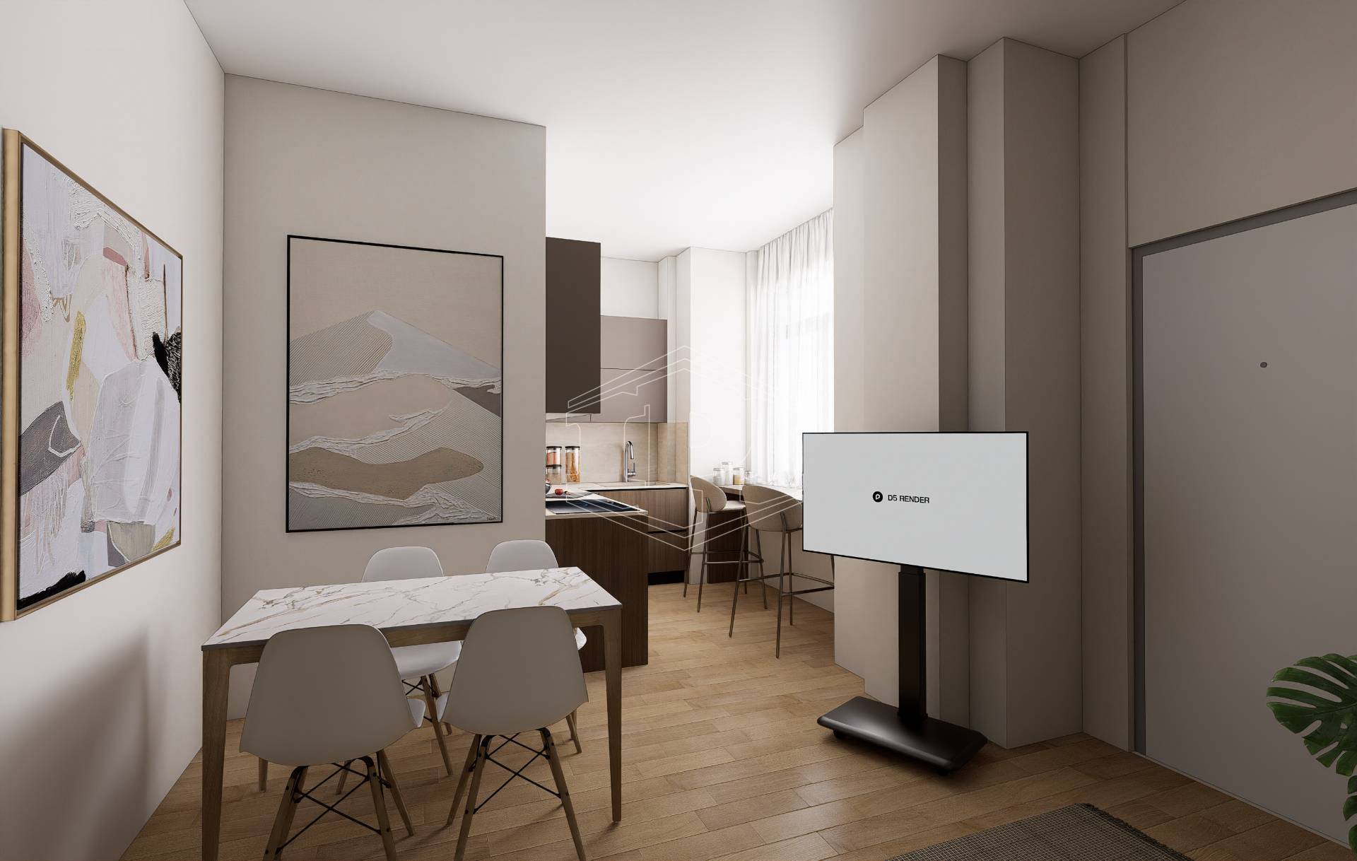 Lo spazio, progettato con attenzione alla funzionalità e al comfort, prevede una zona giorno open space con cucina a vista e bagno dal design contemporaneo. Completa la proprietà cantina di pertinenza.