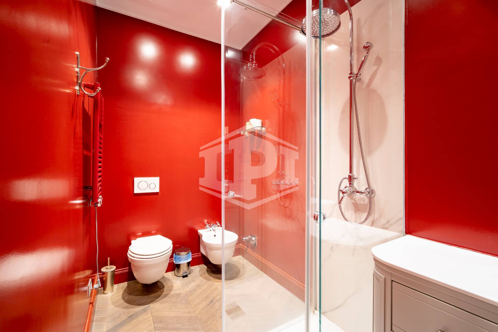 I pavimenti sono in parquet, le ampie finestre sono in allumino con vetrocamera, dotate anche di apertura vasistas; la porta d'ingresso è blindata. L'oscuramento interno è garantito da tende oscuranti. Il riscaldamento è centralizzato con impianto radiante e le relative spese sono di circa € 783,00 all'anno; impianto aria condizionata. Le spese condominiali sono di circa € 104,00 al mese.