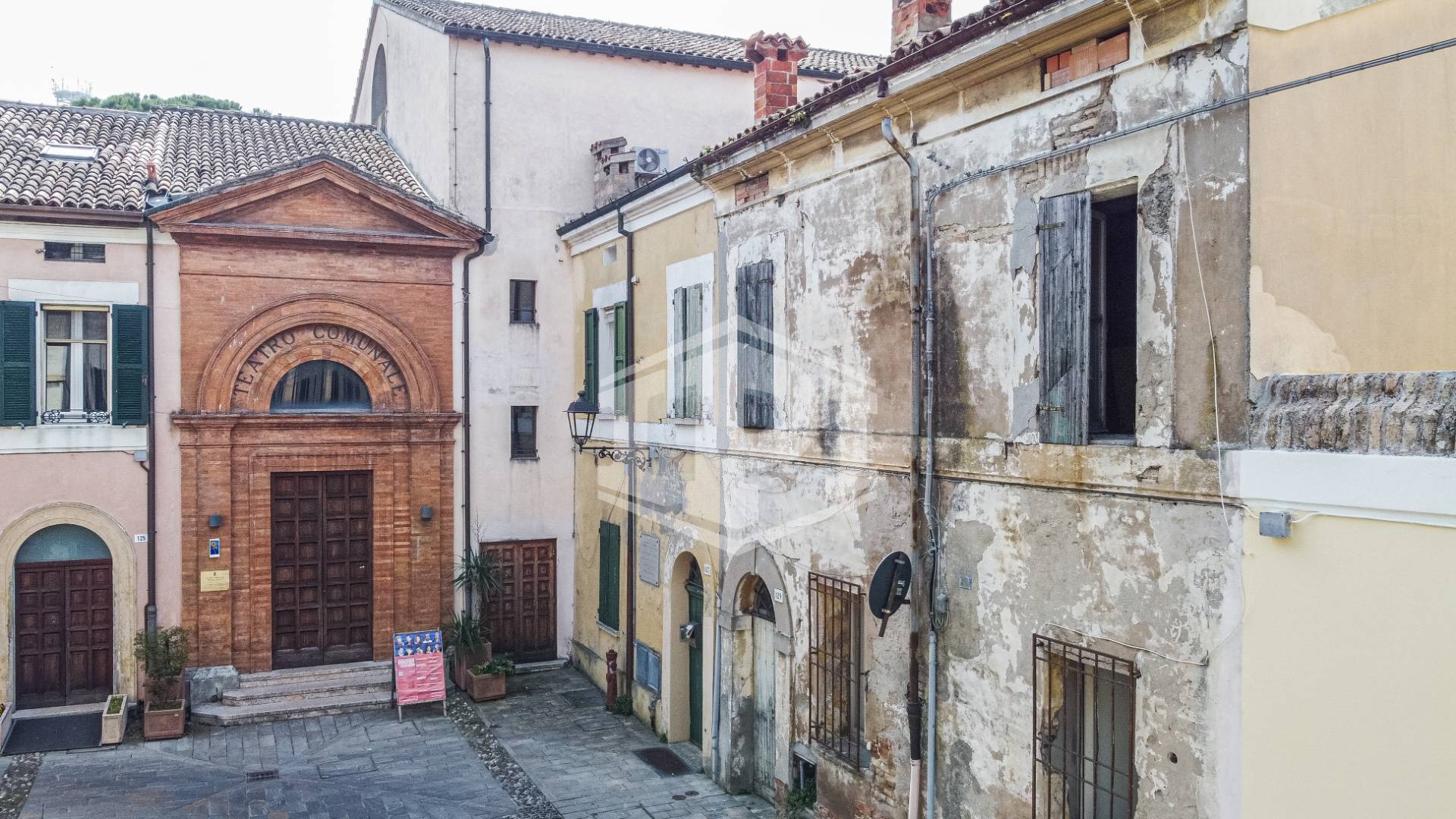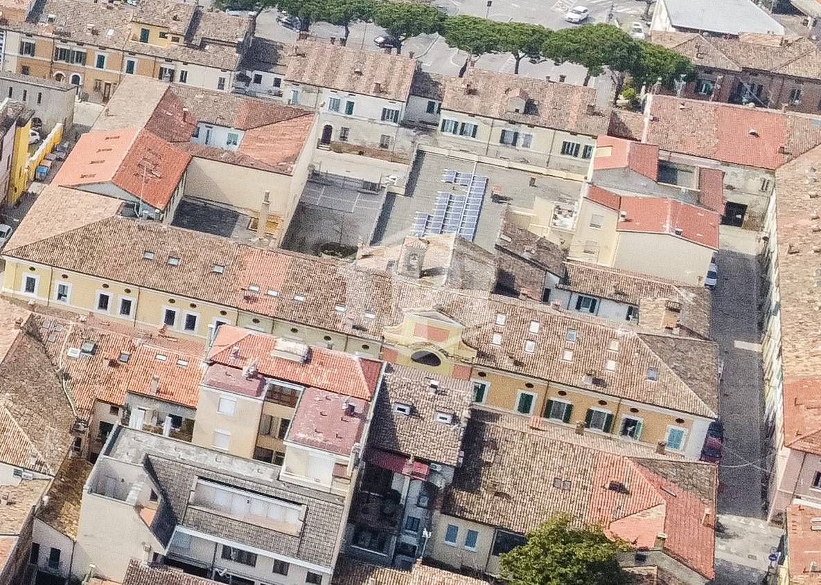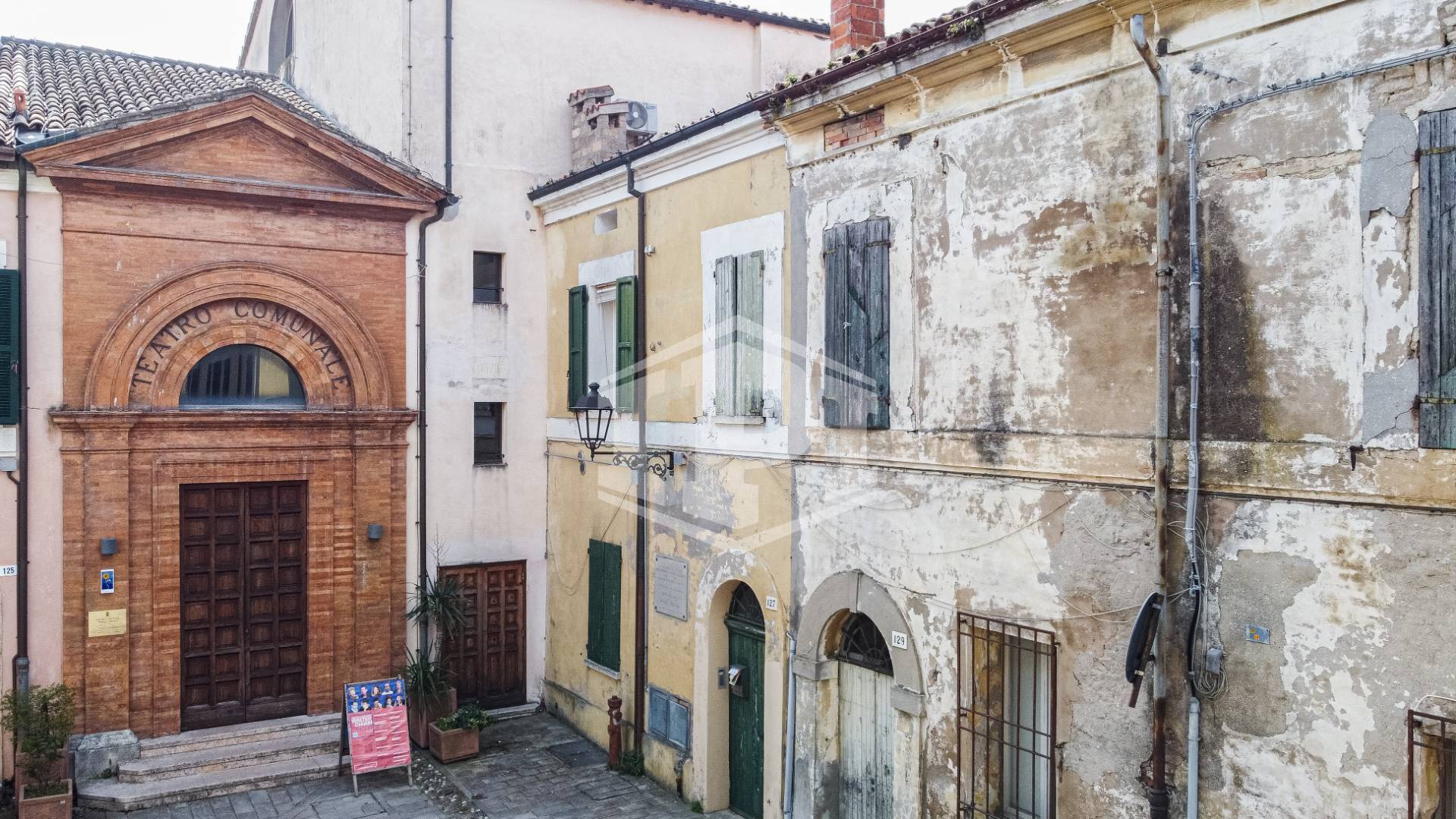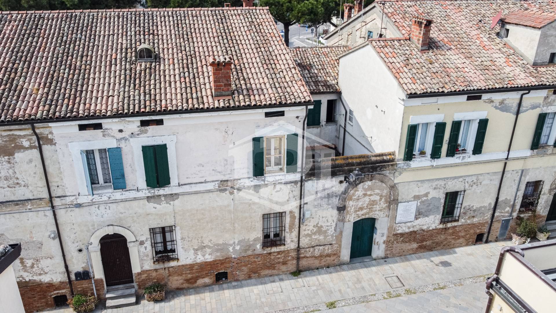 CERVIA CENTRO - All'interno dello storico complesso denominato Quadrilatero, APPARTAMENTO sito al primo piano, costituito da ampio locale open-space oltre a soffitta sovrastante, della stessa ampiezza dell'abitazione, attualmente accessibile dalla scala condominiale. Lo stato conservativo è da ristrutturare integralmente.