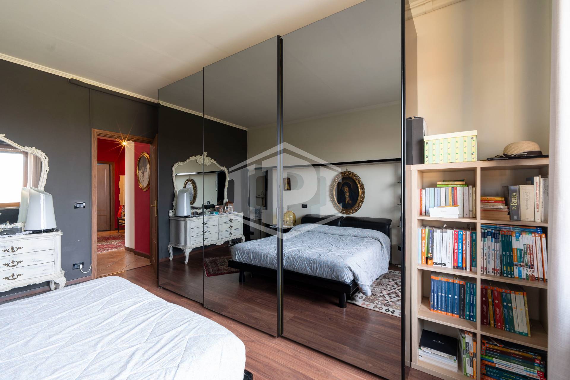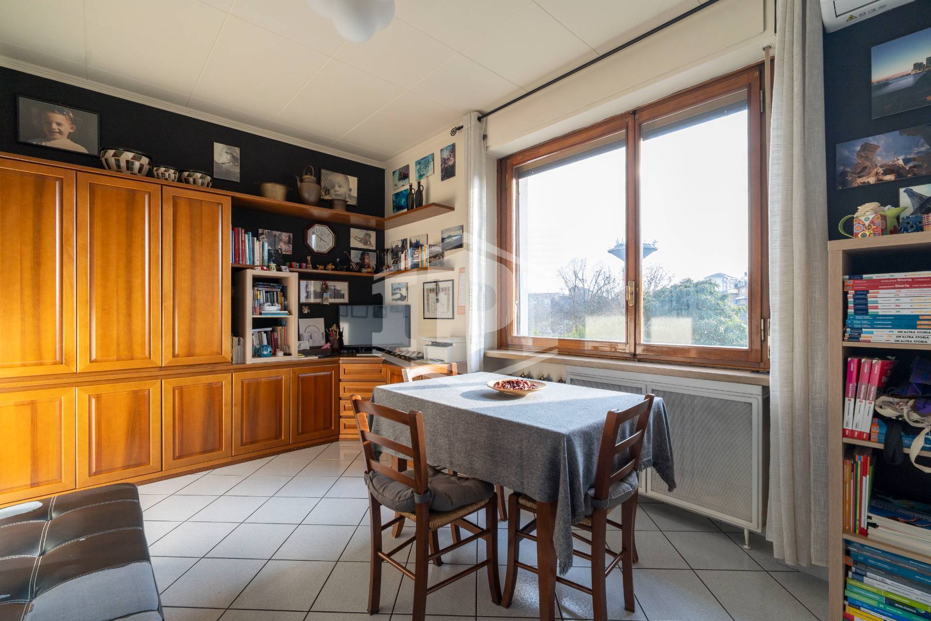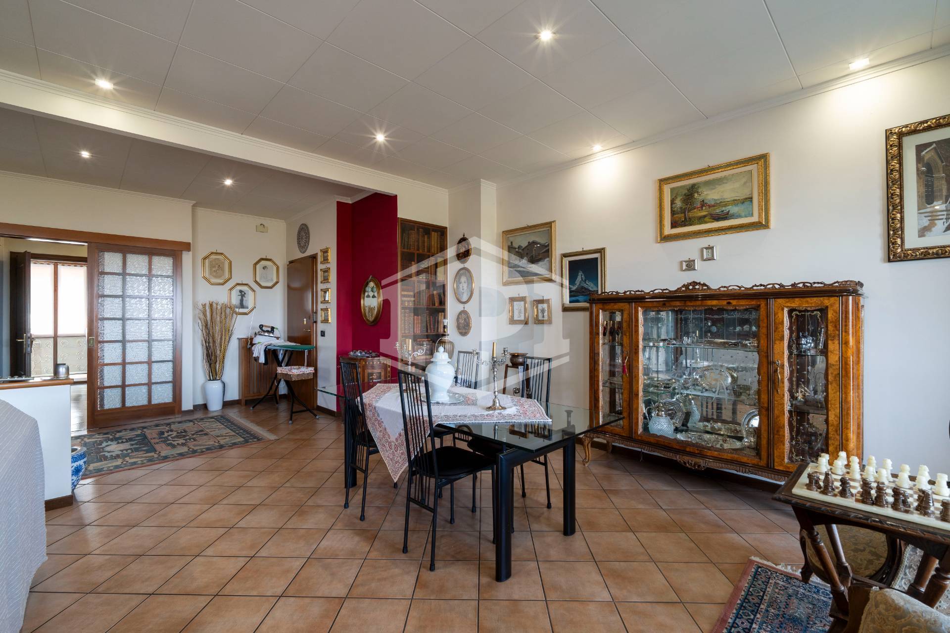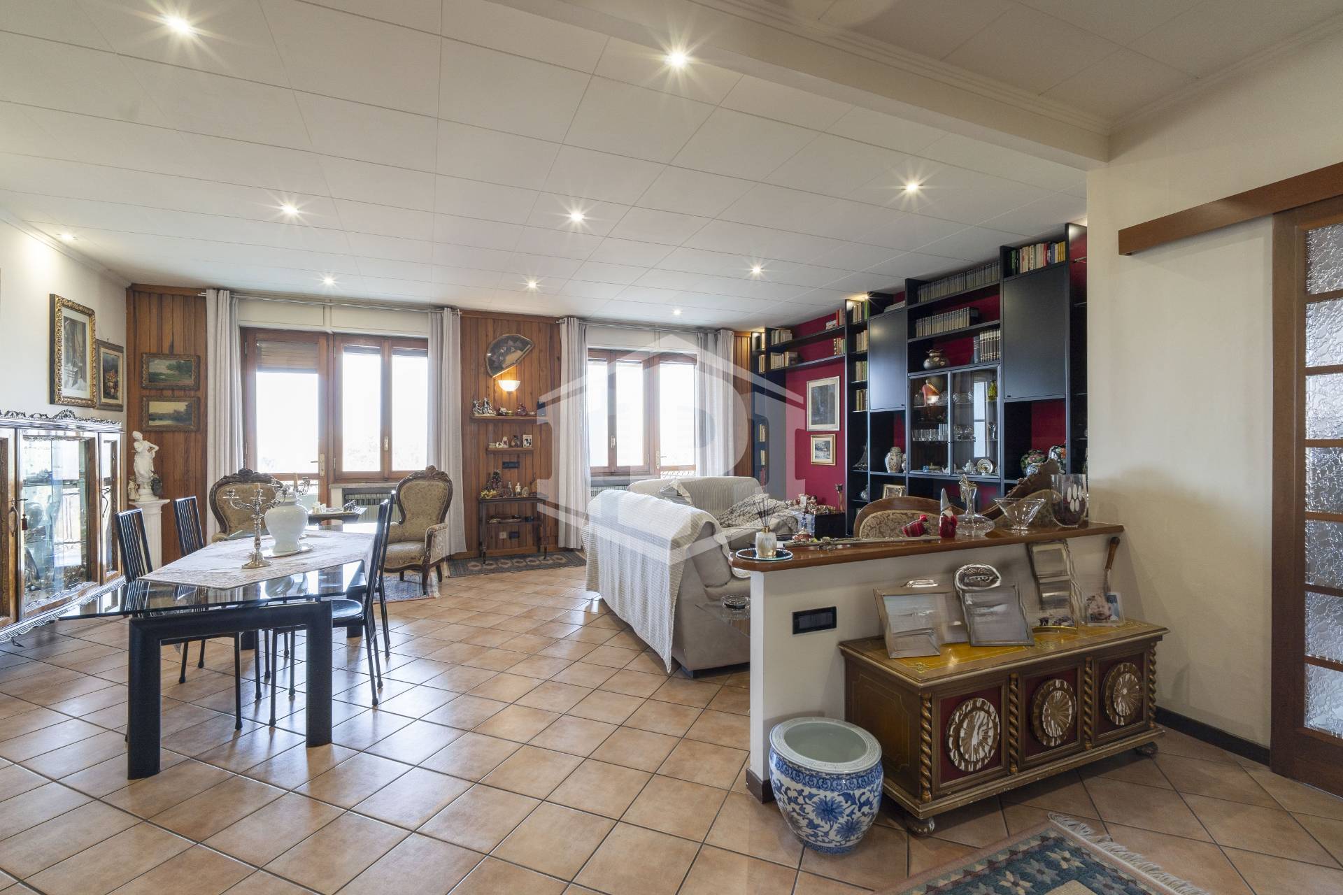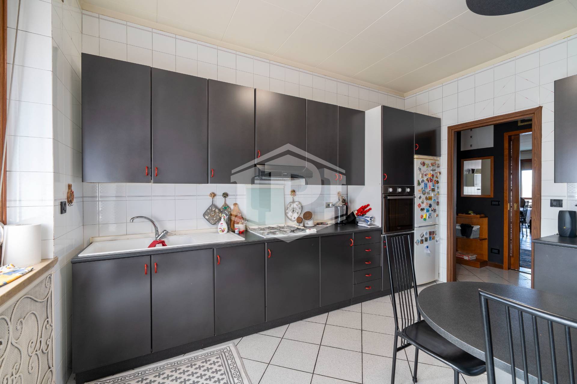 Appartamento di 170 mq, composto da: ingresso, salone doppio con accesso al terrazzo, cucina abitabile, tre camere da letto, due bagni e altro terrazzo. Completano la proprietà il box auto, un posto auto in autorimessa, un locale soffitta e la cantina al piano interrato.
