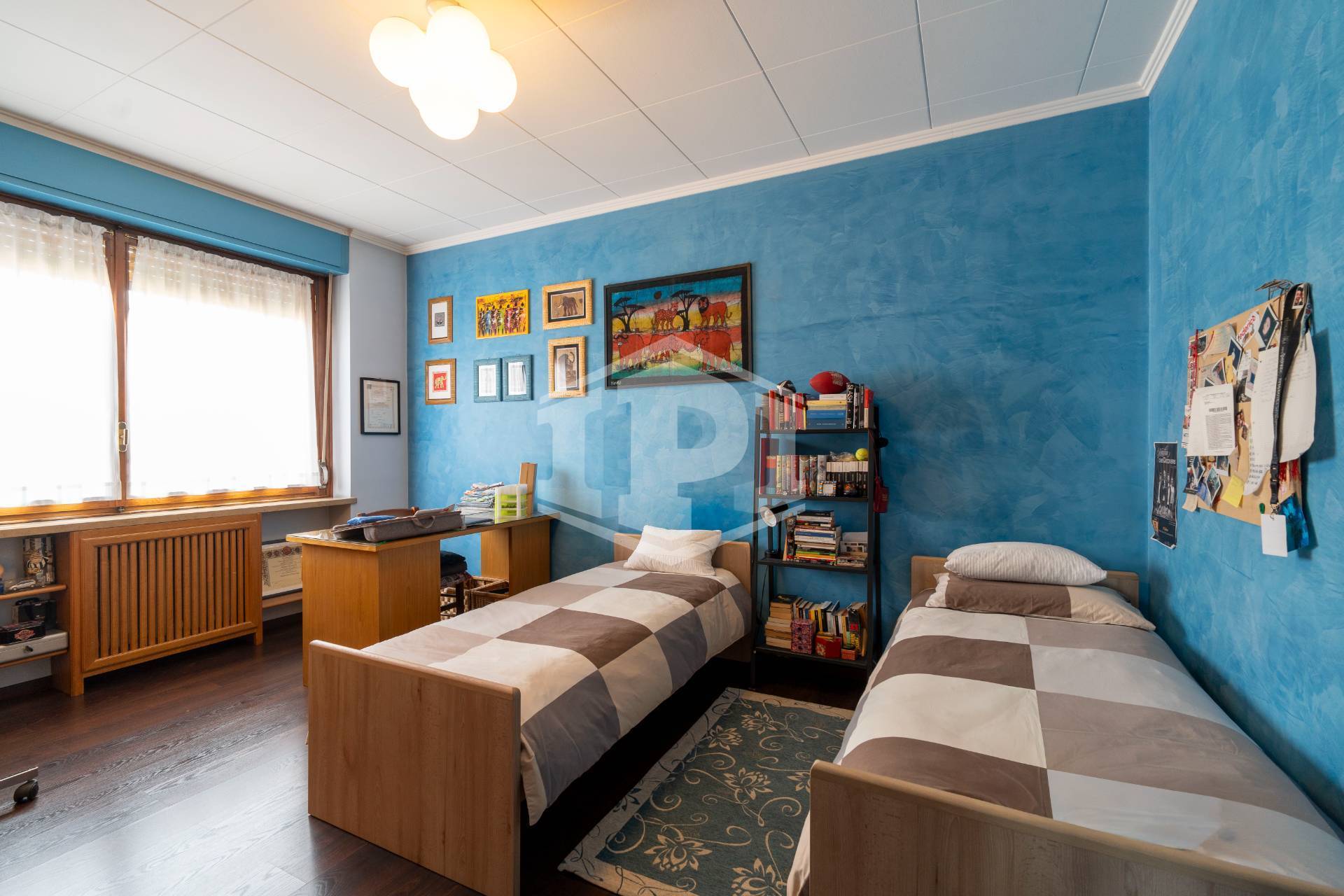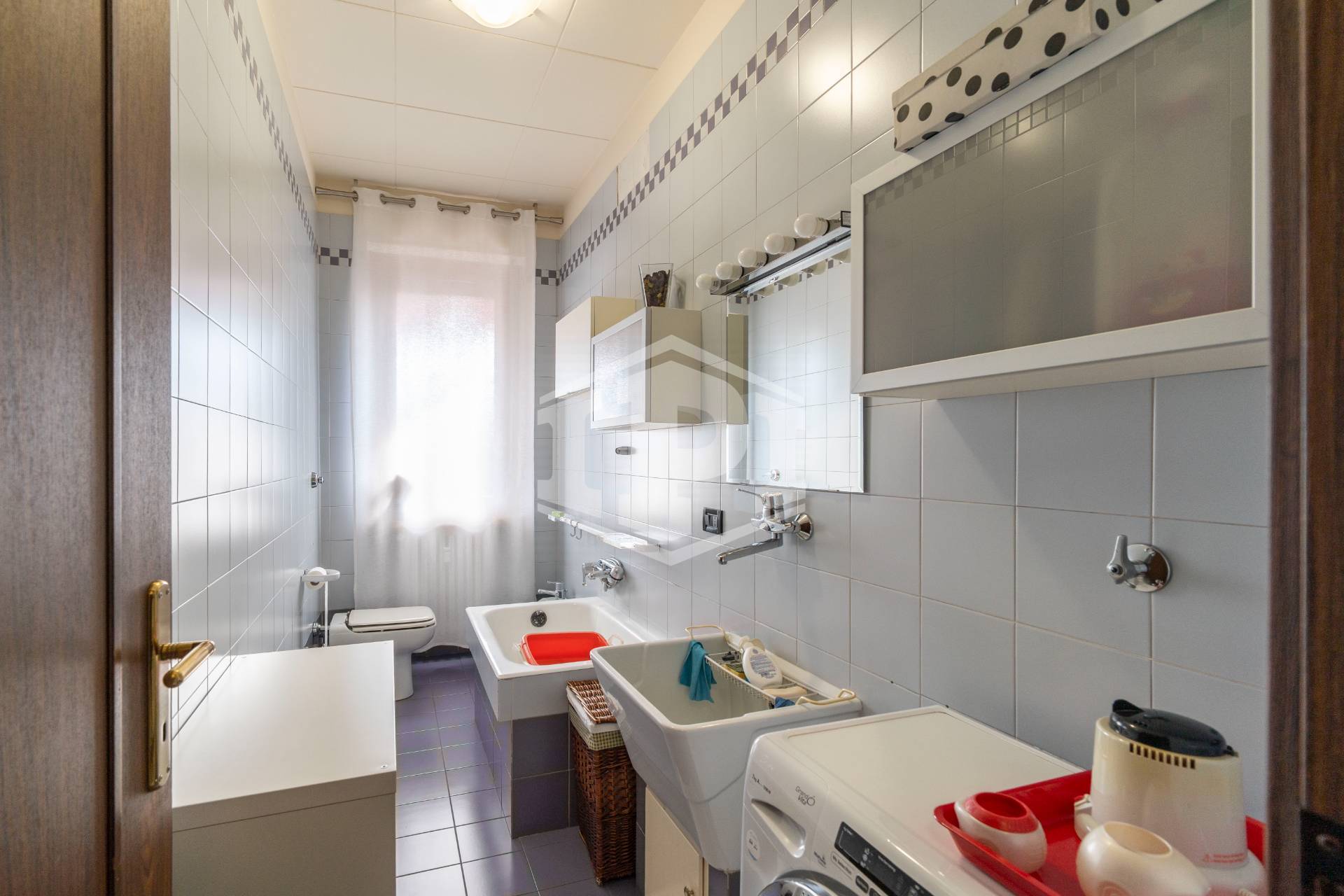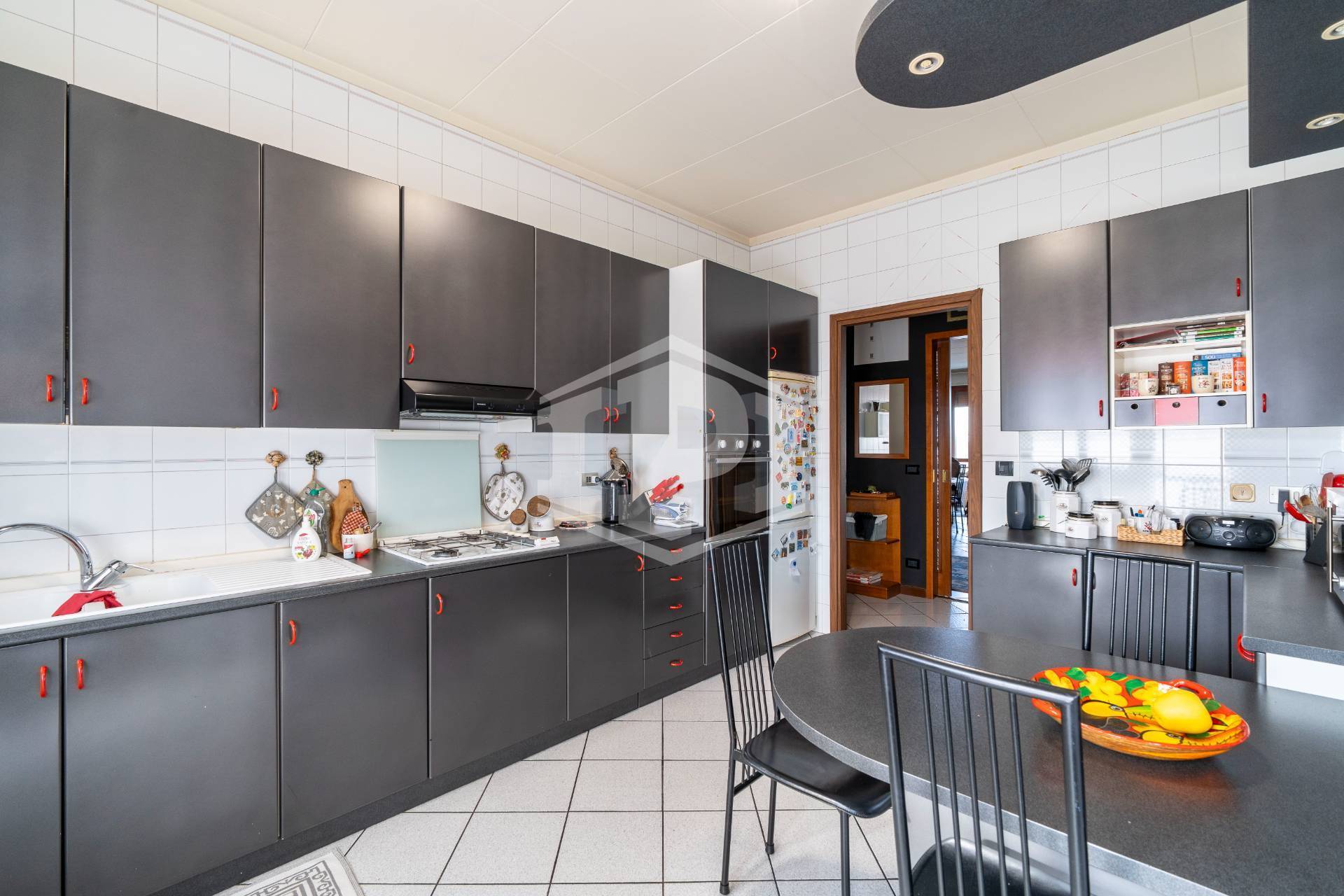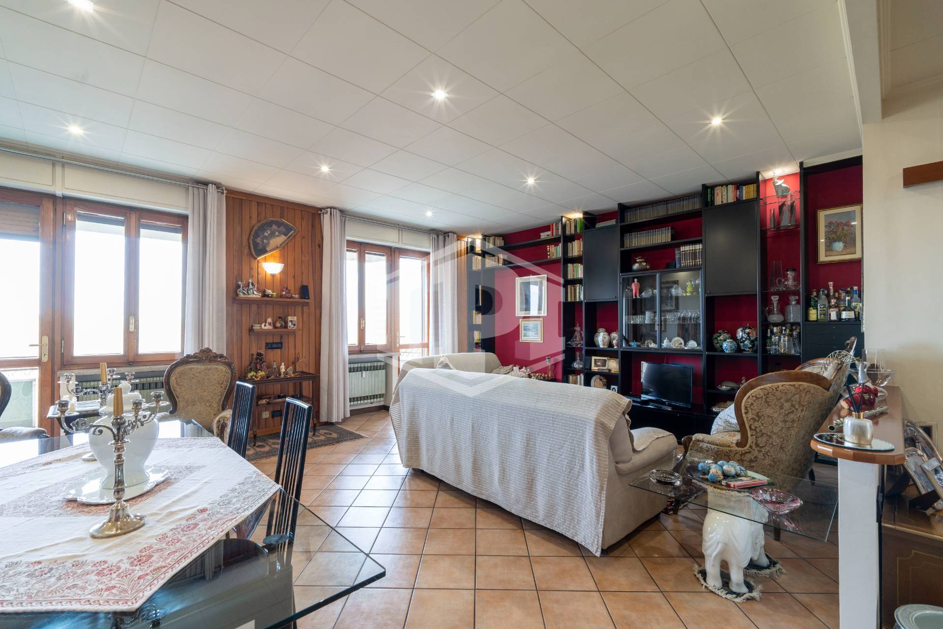 Appartamento di 170 mq, composto da: ingresso, salone doppio con accesso al terrazzo, cucina abitabile, tre camere da letto, due bagni e altro terrazzo. Completano la proprietà il box auto, un posto auto in autorimessa, un locale soffitta e la cantina al piano interrato.