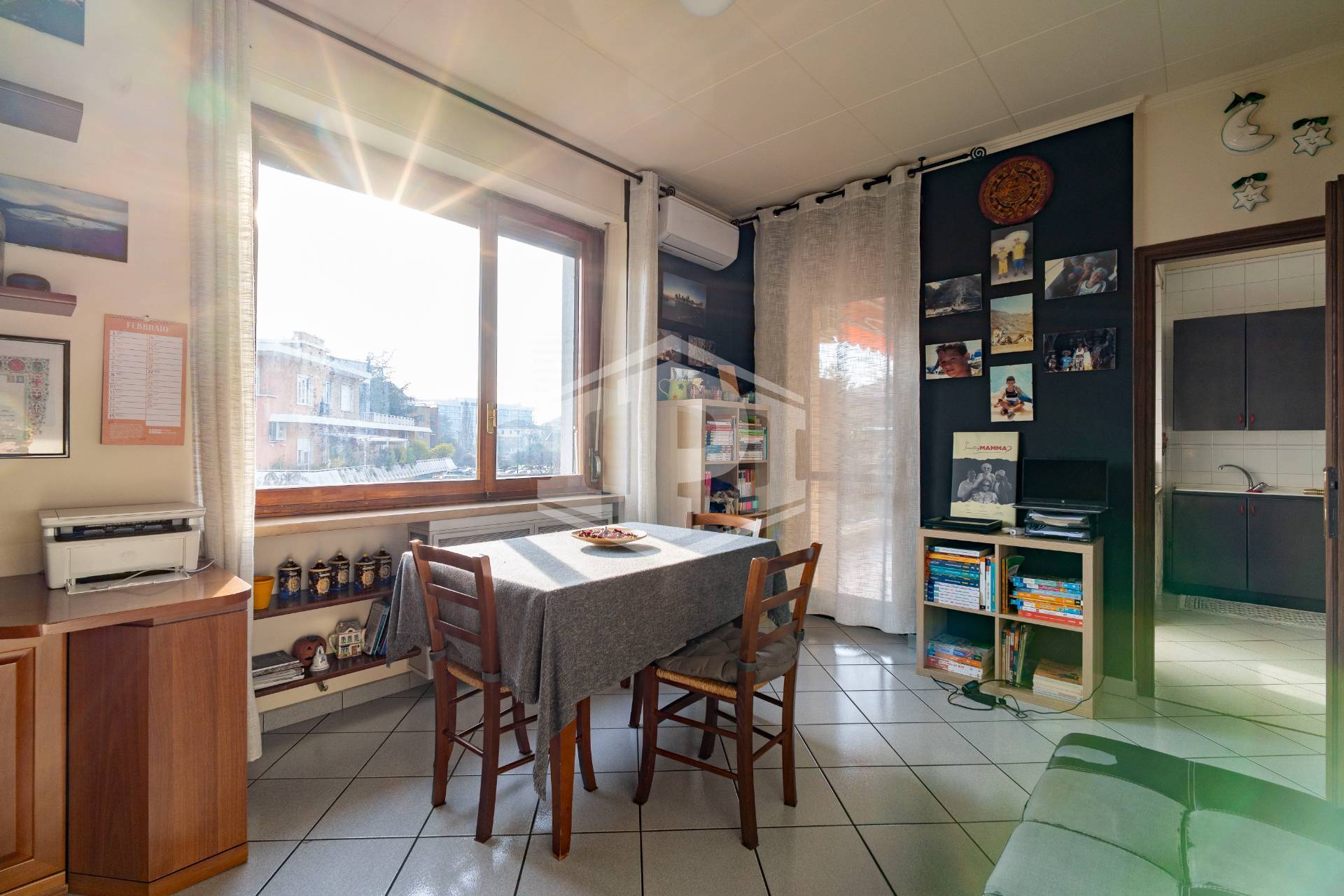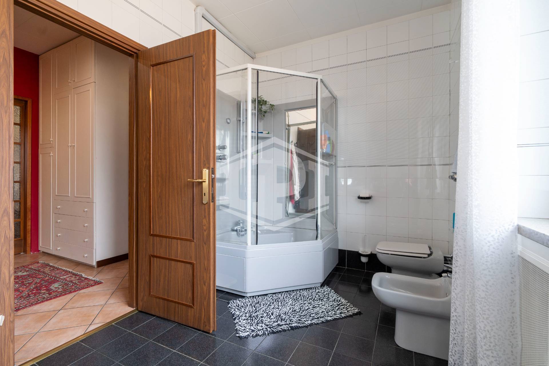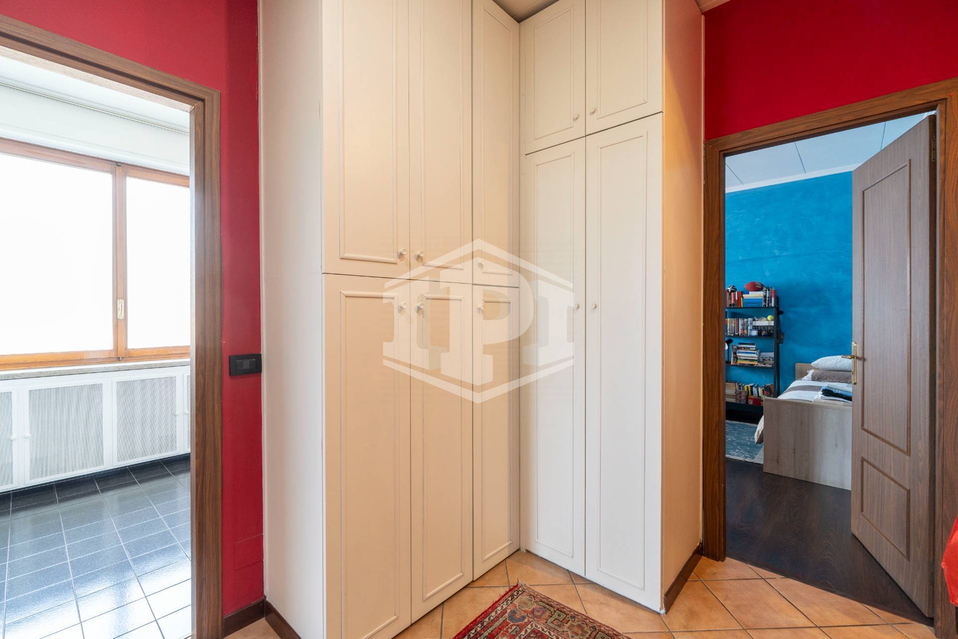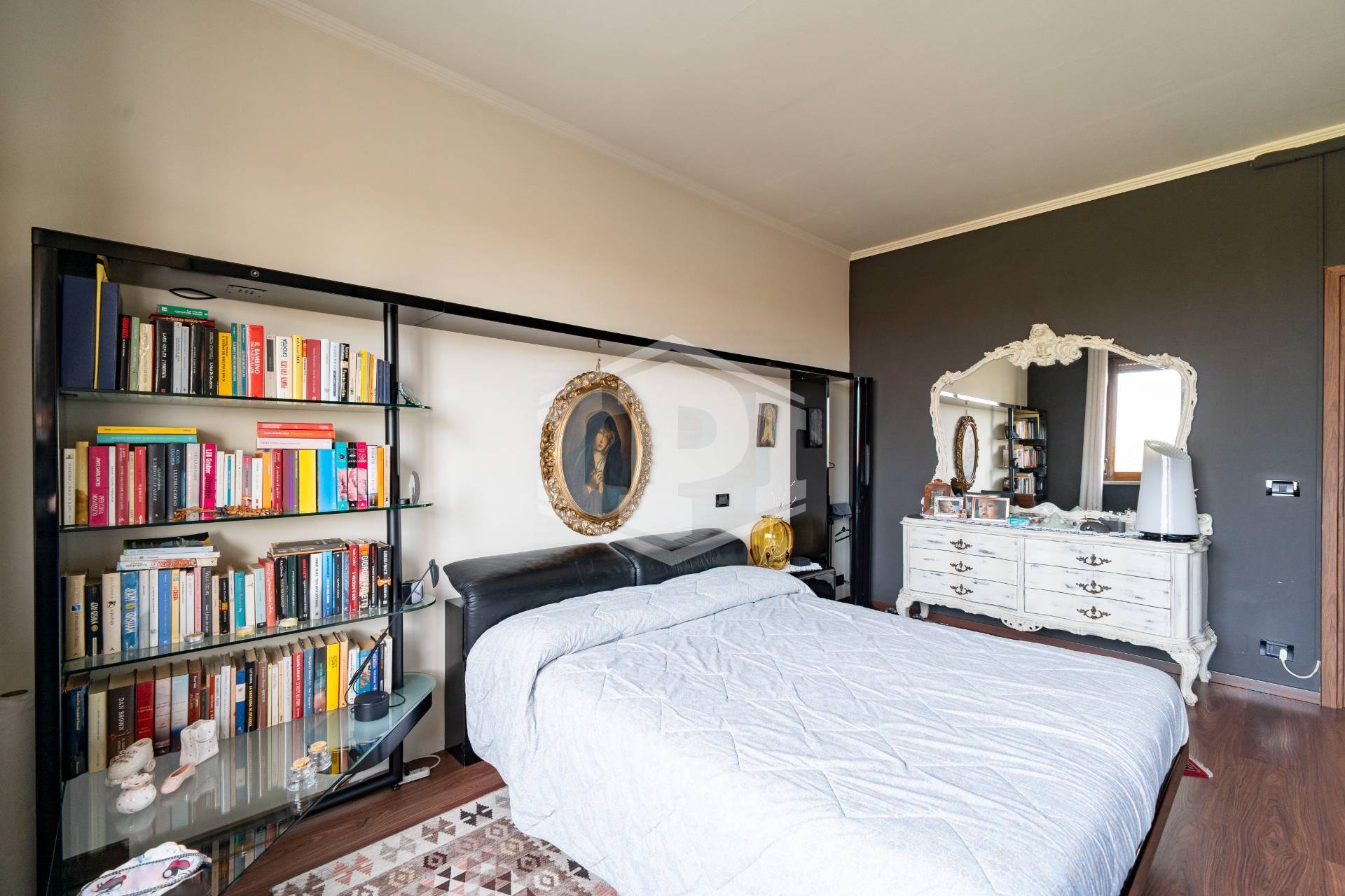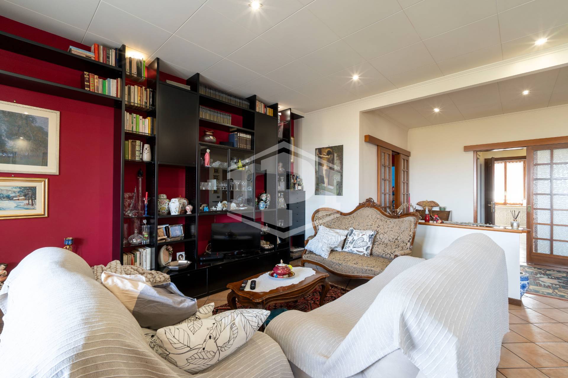 Appartamento di 170 mq, composto da: ingresso, salone doppio con accesso al terrazzo, cucina abitabile, tre camere da letto, due bagni e altro terrazzo. Completano la proprietà il box auto, un posto auto in autorimessa, un locale soffitta e la cantina al piano interrato.