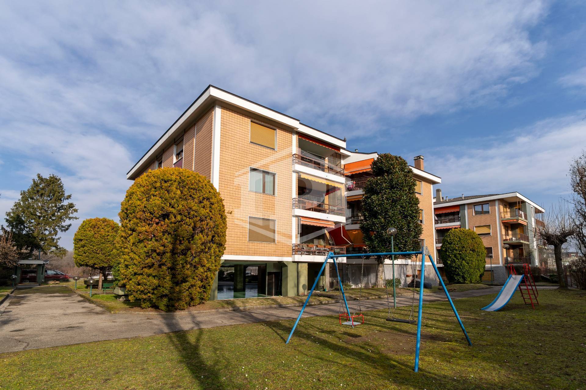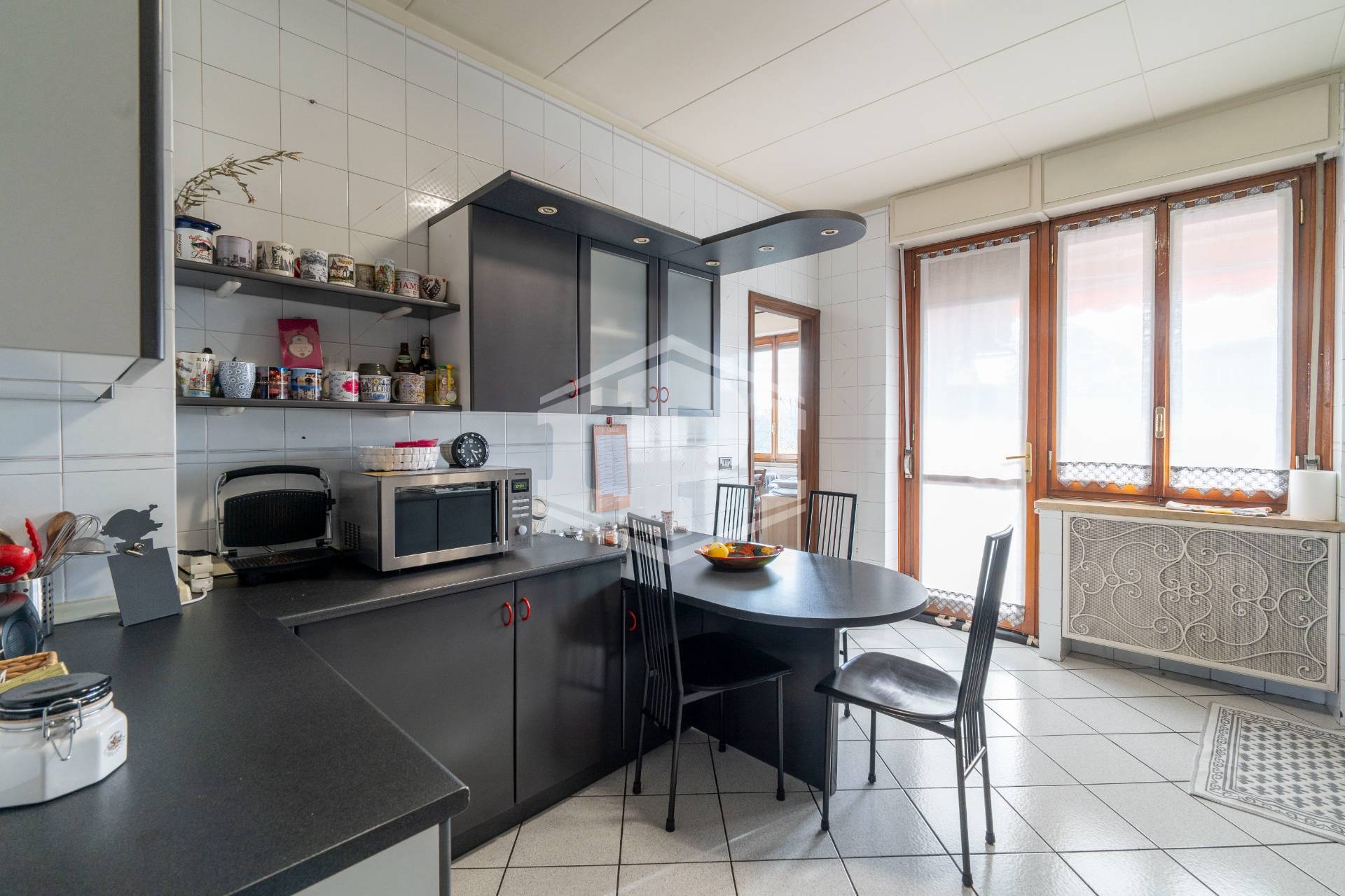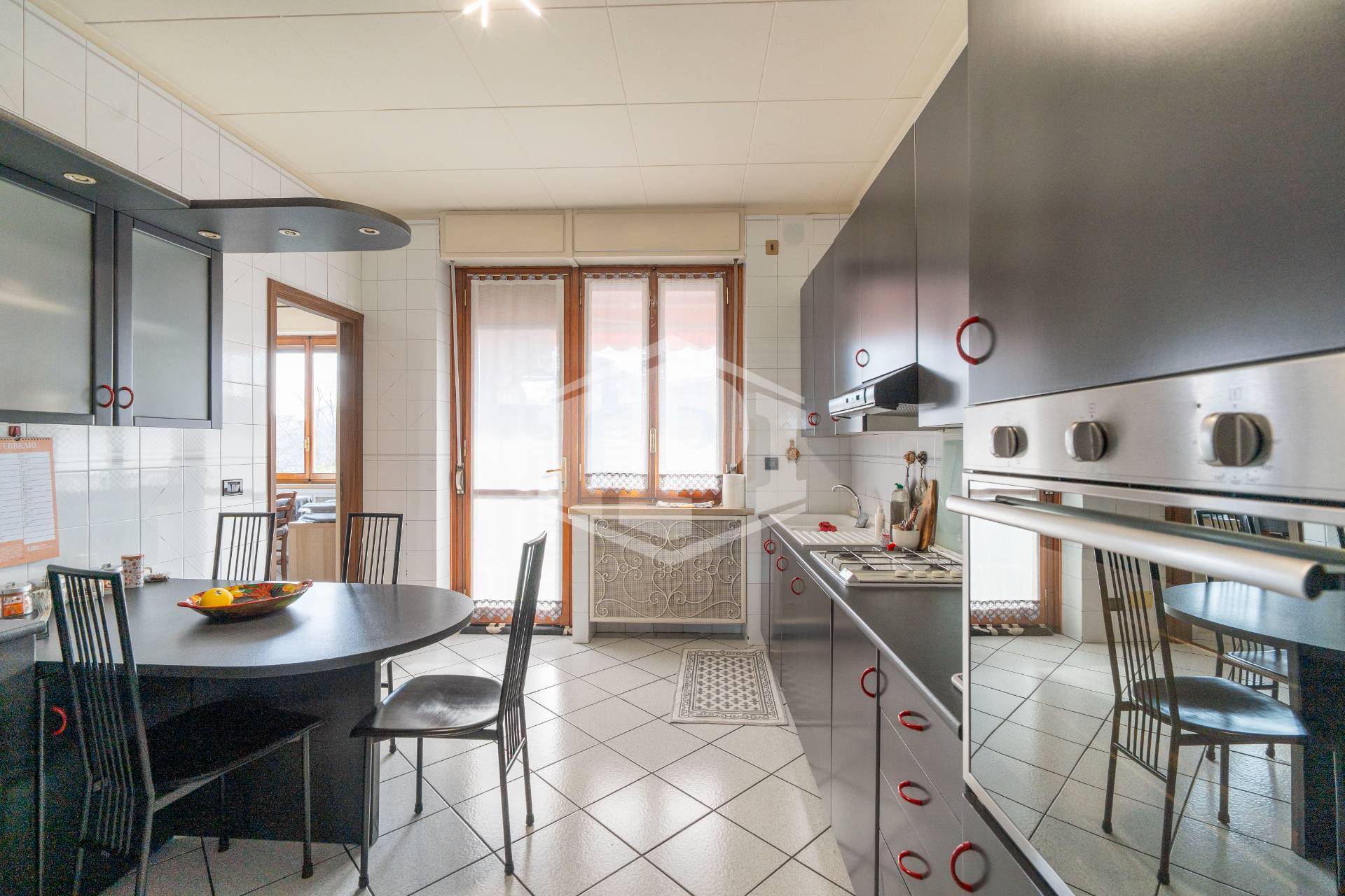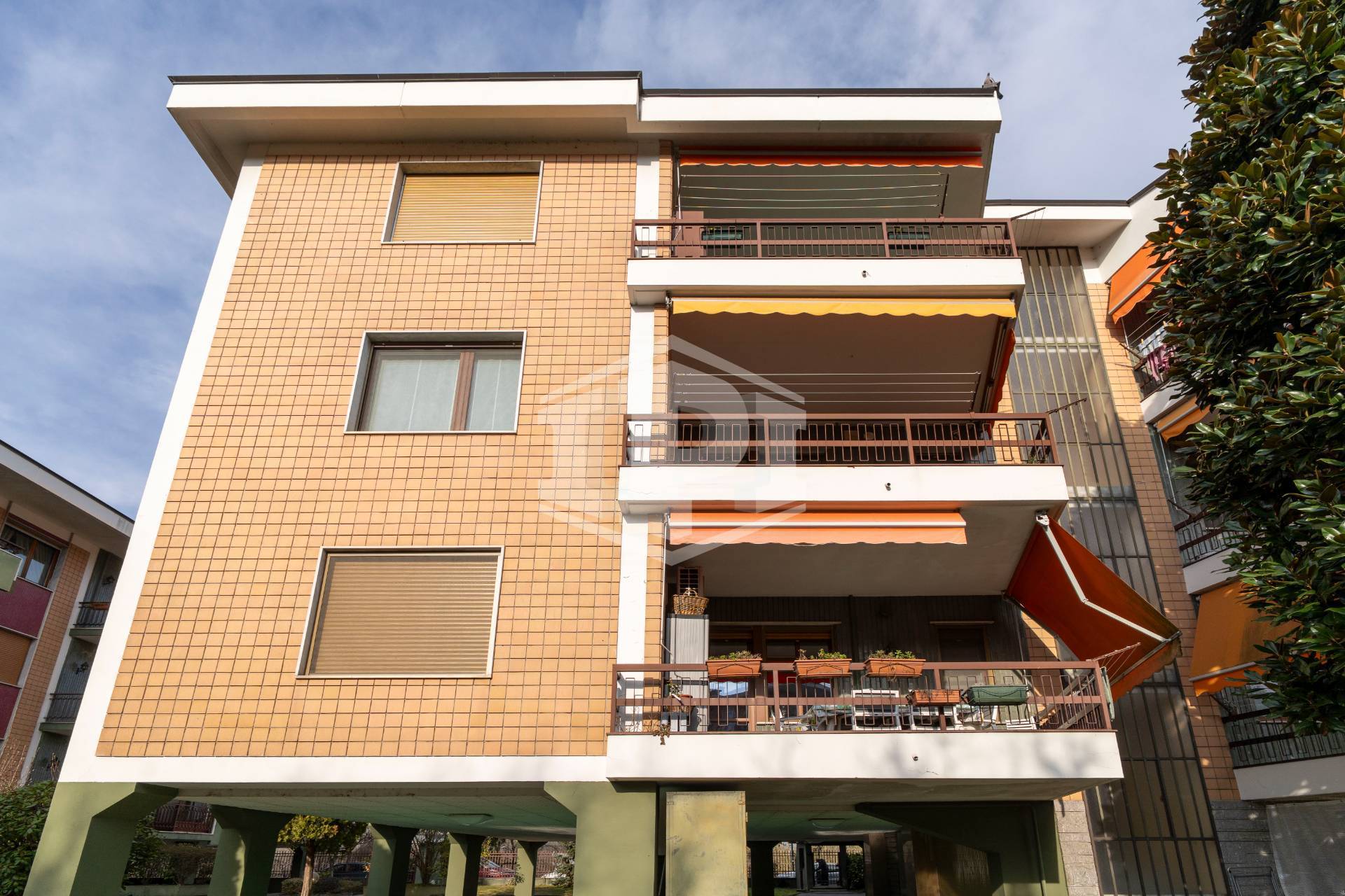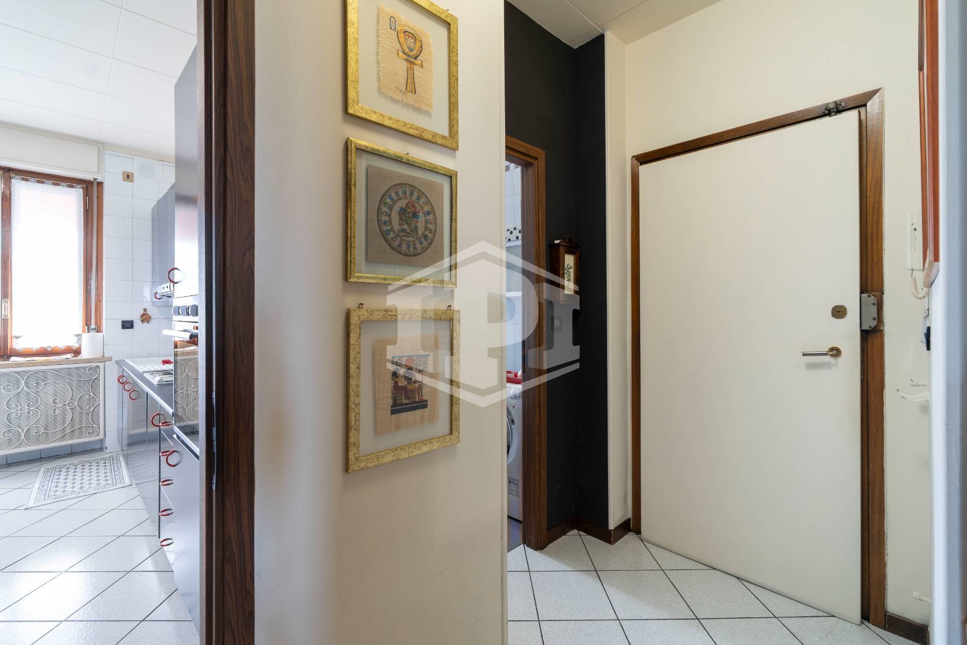 Appartamento di 170 mq, composto da: ingresso, salone doppio con accesso al terrazzo, cucina abitabile, tre camere da letto, due bagni e altro terrazzo. Completano la proprietà il box auto, un posto auto in autorimessa, un locale soffitta e la cantina al piano interrato.
