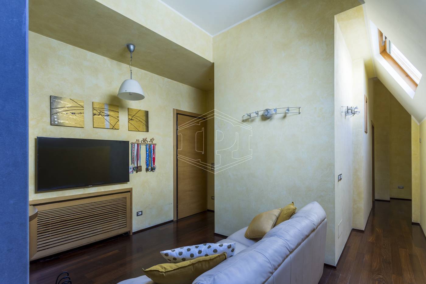 Secondo piano: salotto, 3 camere da letto (con cabine armadio e bagni annessi) e lavanderia.