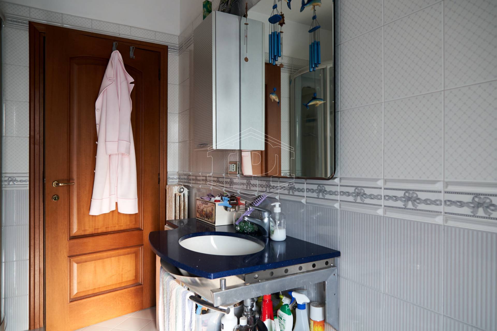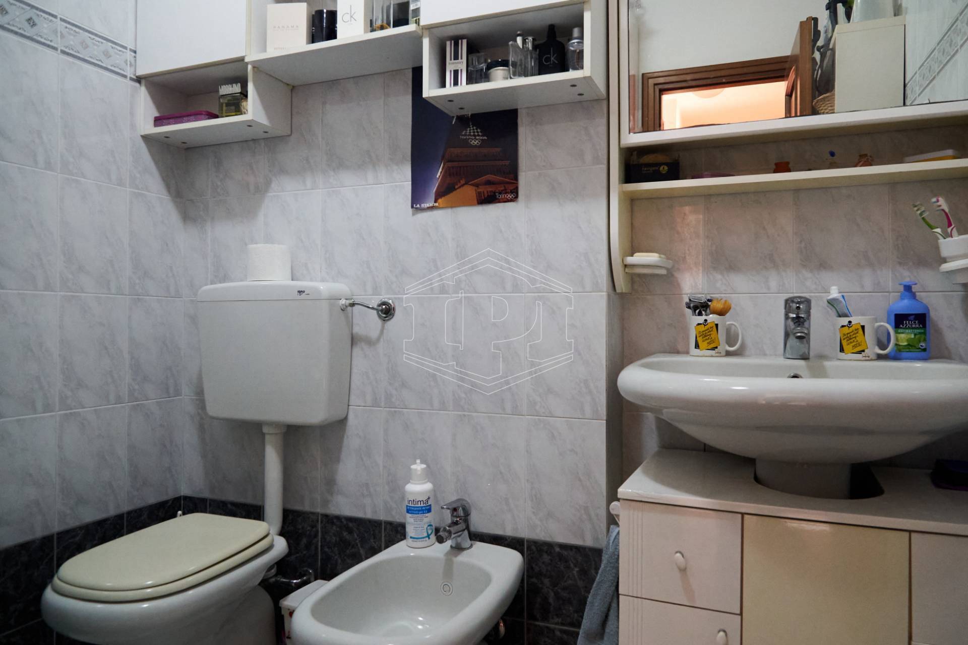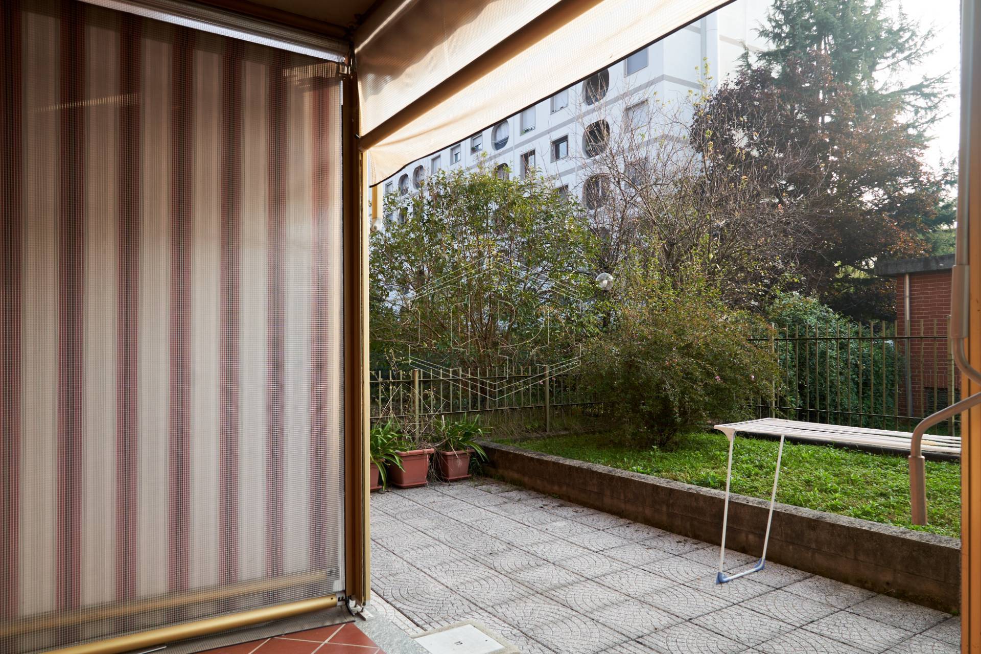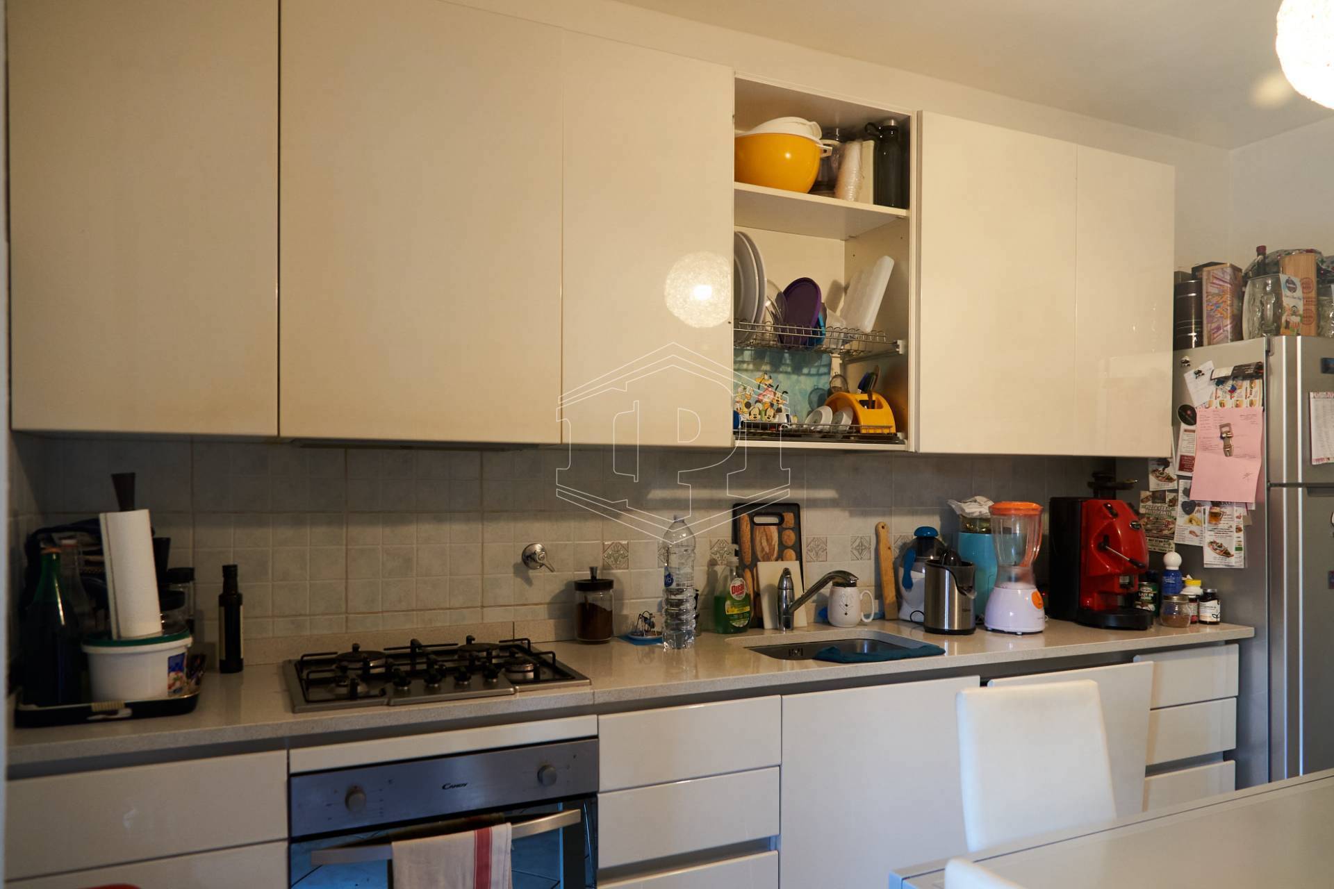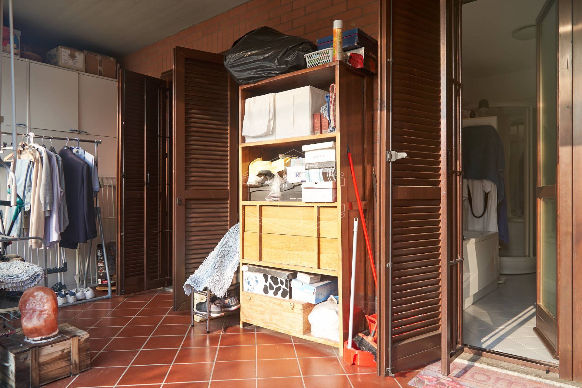 Appartamento di 111 mq, composto da: ingresso living in soggiorno, cucina abitabile, due camere, doppi servizi, ripostiglio, due giardini rispettivamente di 50 e 100 mq. Completano la proprietà il box auto e la cantina/tavernetta al piano interrato con accesso dall'interno. Il box auto è di 20 mq, è dotato di porta basculante elettrica e area di manovra molto comoda.
