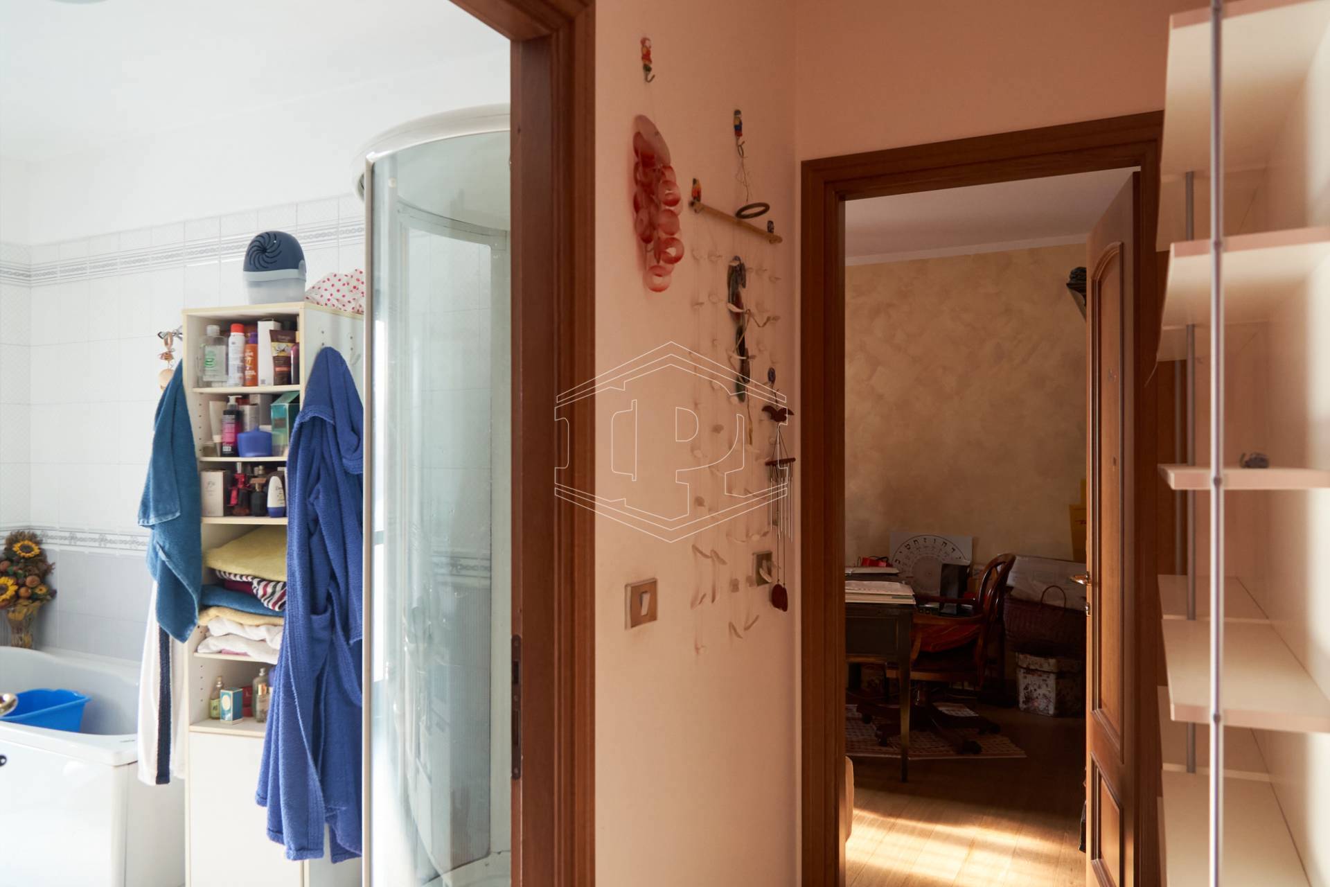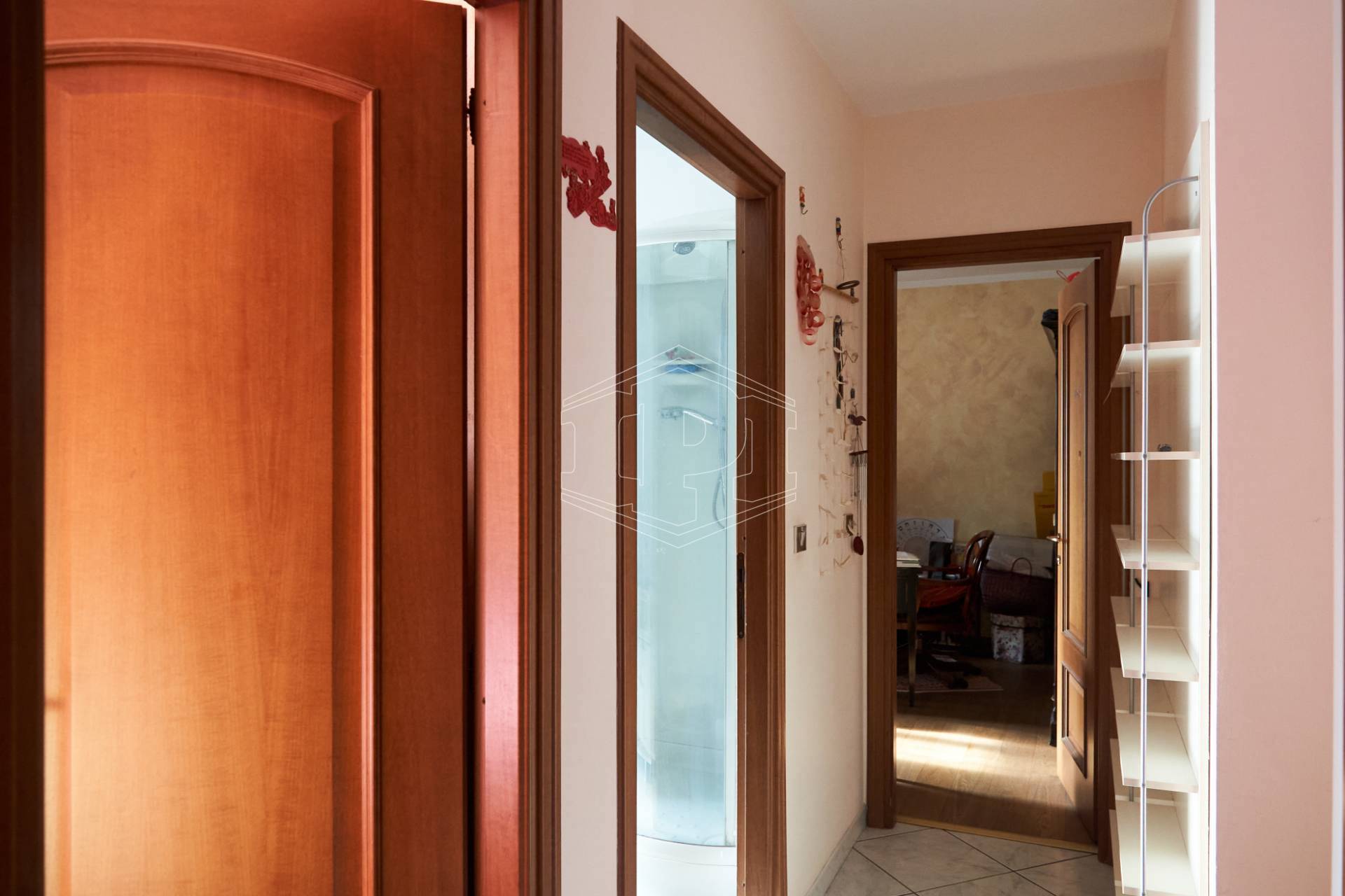 I pavimenti sono in gres porcellanato di colore chiaro nella zona giorno, mentre nelle camere sono in parquet. Il portoncino di ingresso è blindato, gli infissi esterni sono legno con doppio vetro mentre gli infissi interni sono in legno e vetro cristallo, l'oscuramento è ottenuto da persiane in legno.