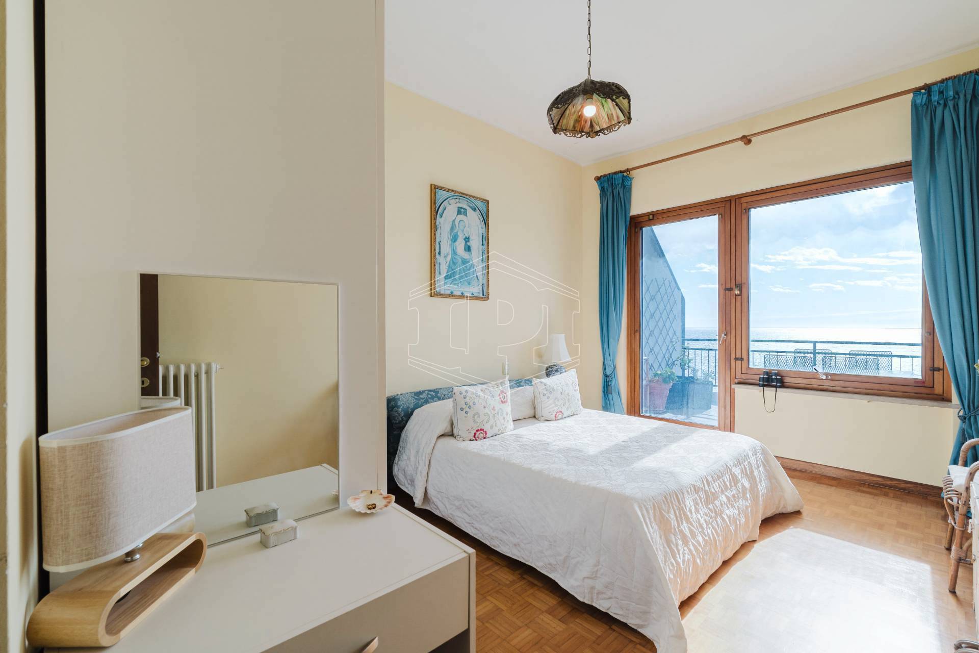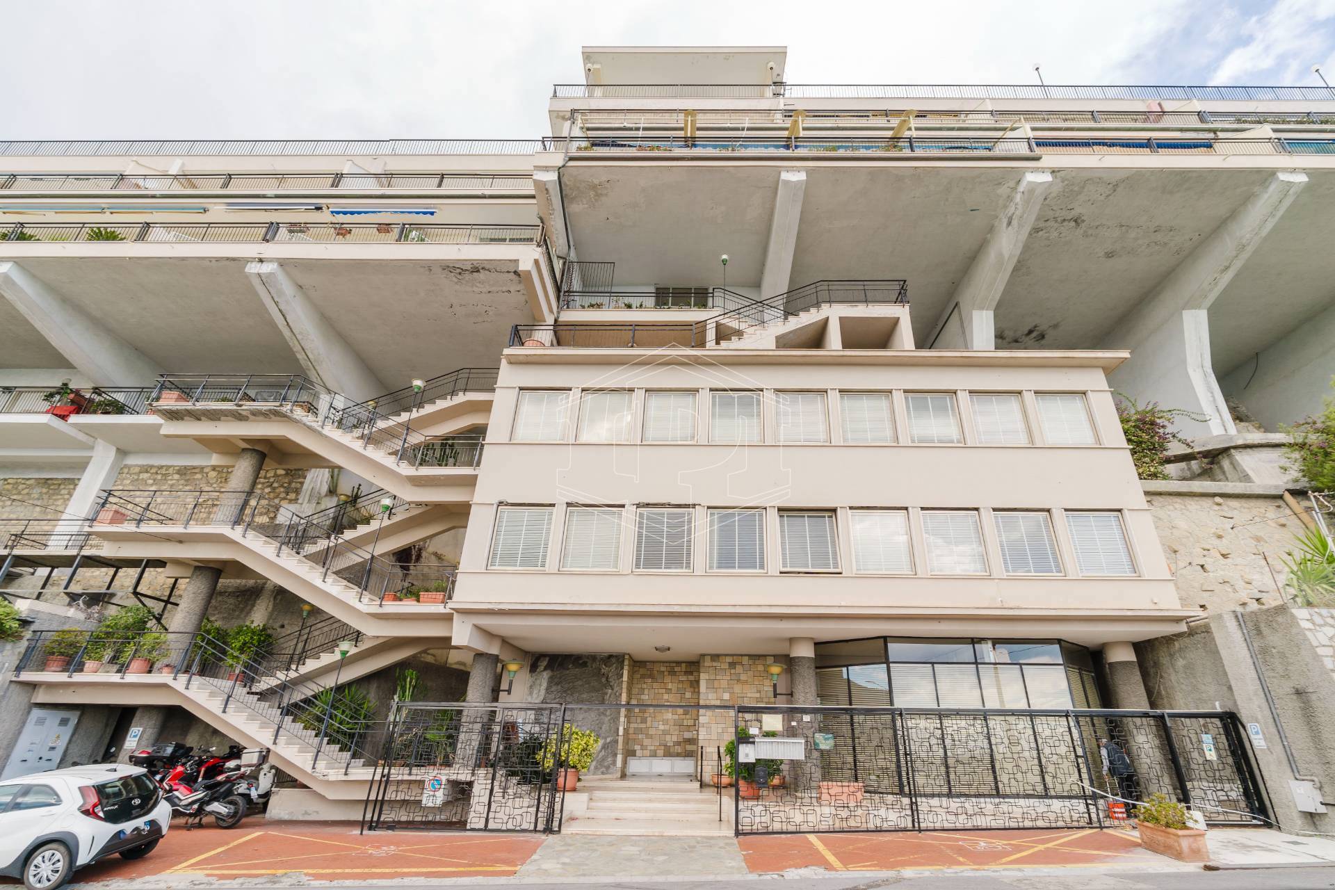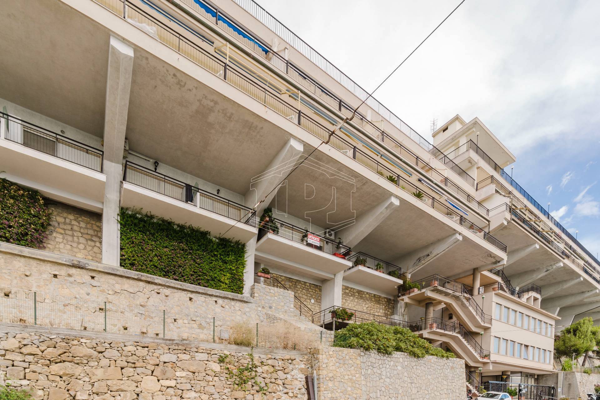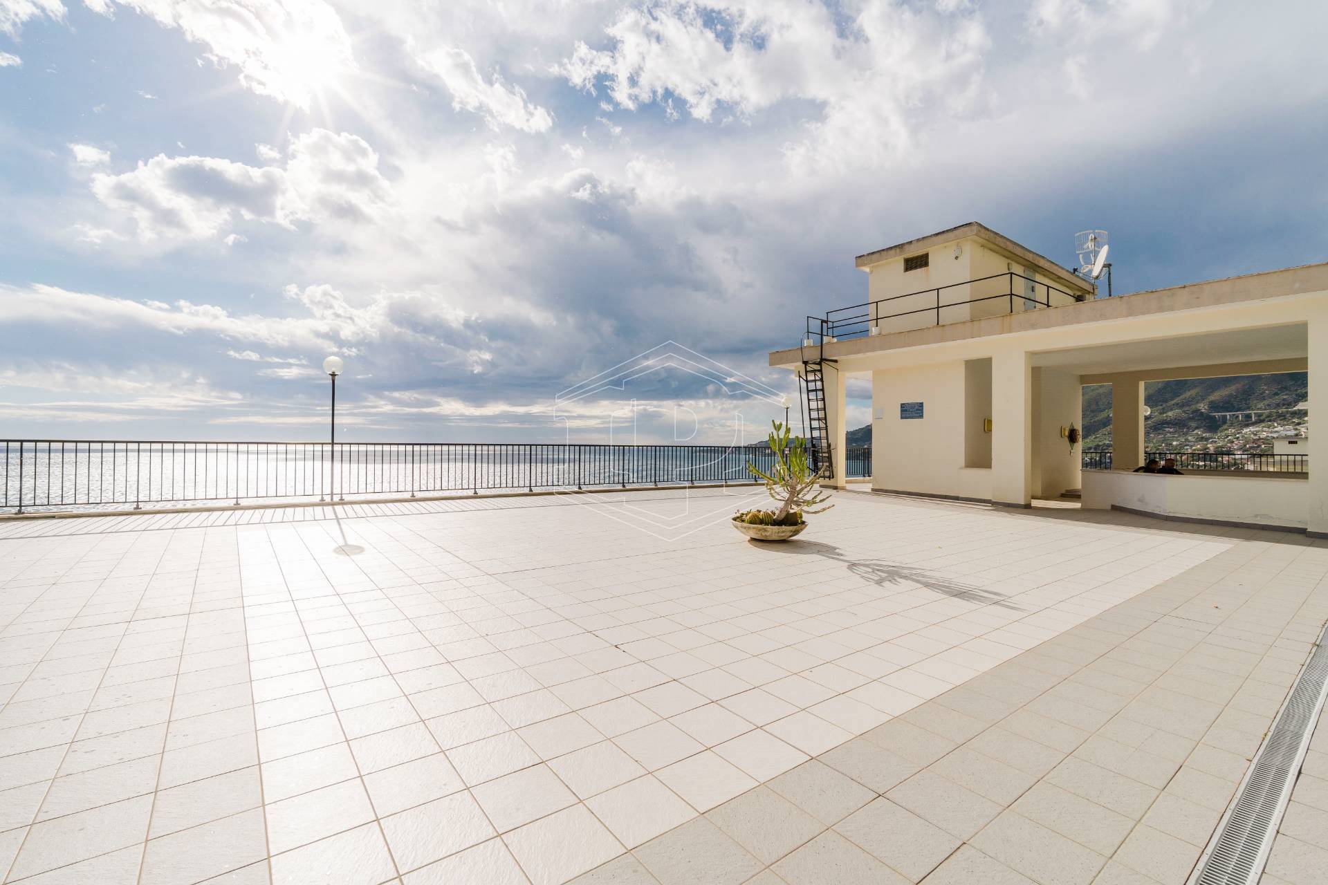 Appartamento di 99 mq calpestabili, oltre a terrazzo di 24 mq, composto da ingresso, salone doppio con accesso al terrazzo vista mare, cucina, due camere da letto di cui una con bagno interno dotato di doccia, altro bagno con vasca. Completano la proprietà un altro terrazzino a monte, un comodo parcheggio condominiale e volendo l'uso di due piscine condominiali poste sul tetto del condominio.