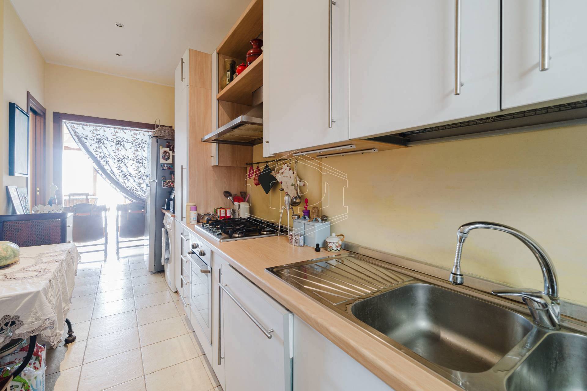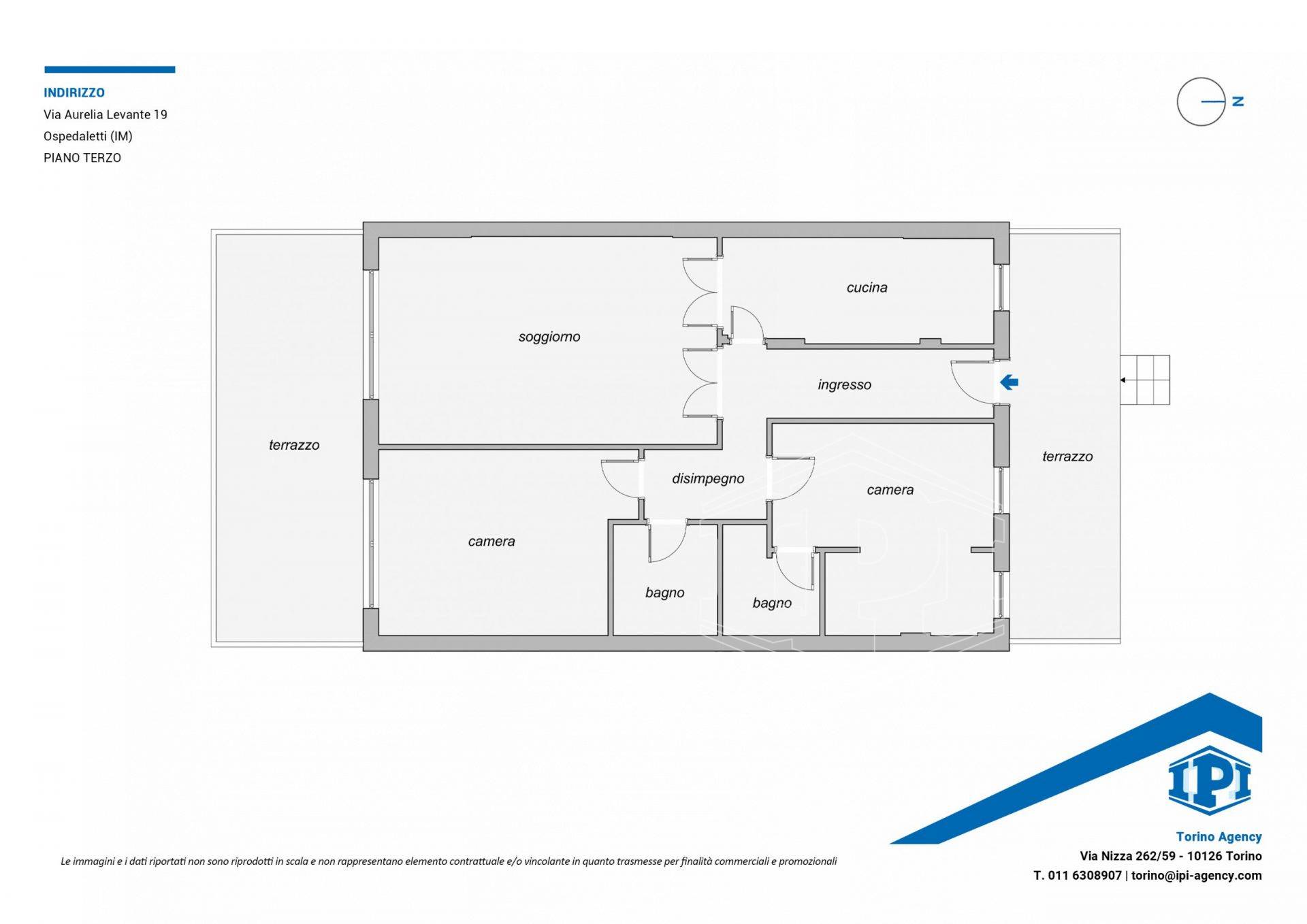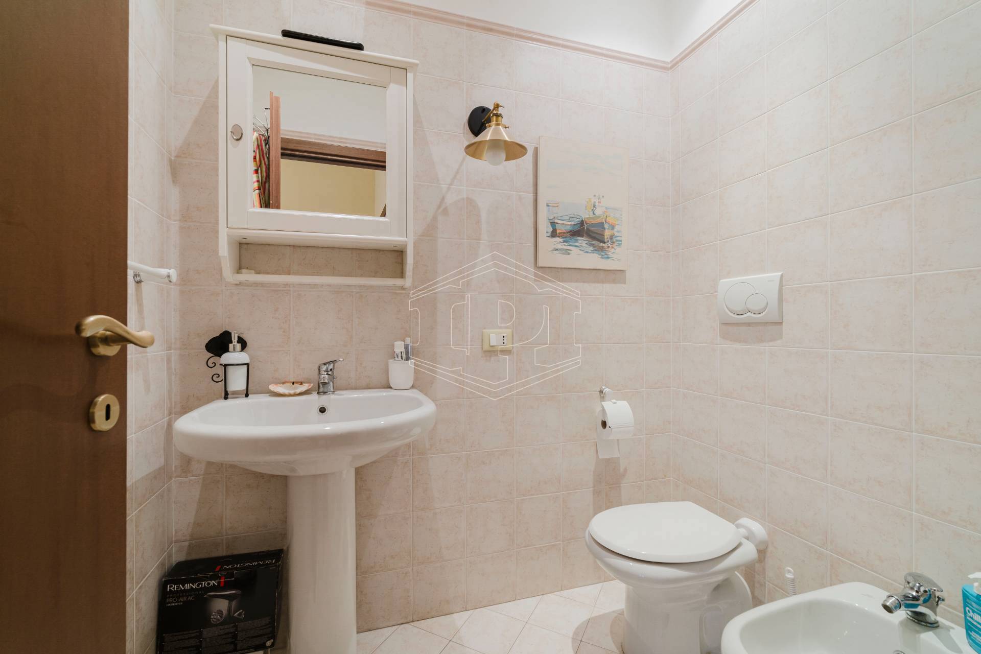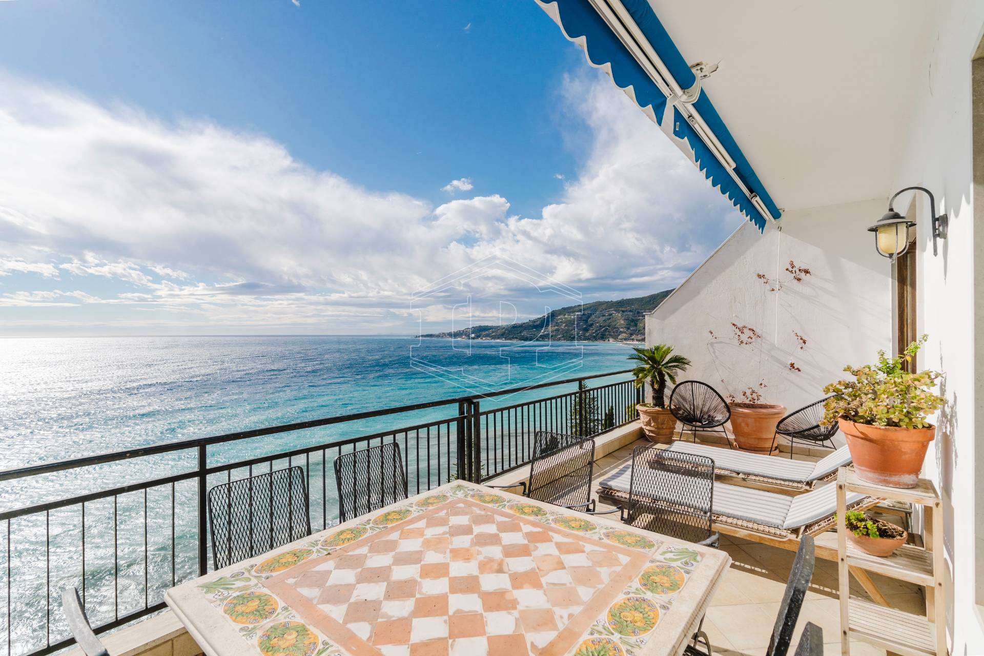 Appartamento di 99 mq calpestabili, oltre a terrazzo di 24 mq, composto da ingresso, salone doppio con accesso al terrazzo vista mare, cucina, due camere da letto di cui una con bagno interno dotato di doccia, altro bagno con vasca. Completano la proprietà un altro terrazzino a monte, un comodo parcheggio condominiale e volendo l'uso di due piscine condominiali poste sul tetto del condominio.
