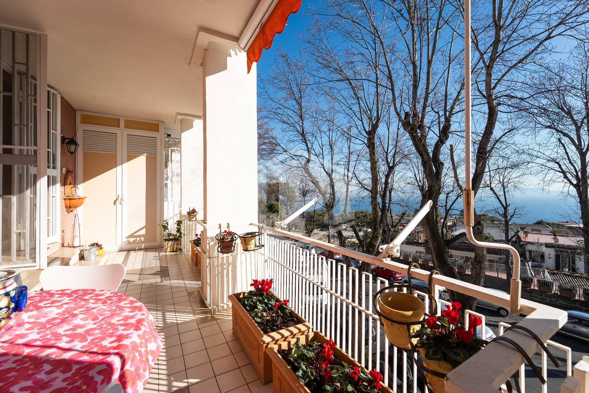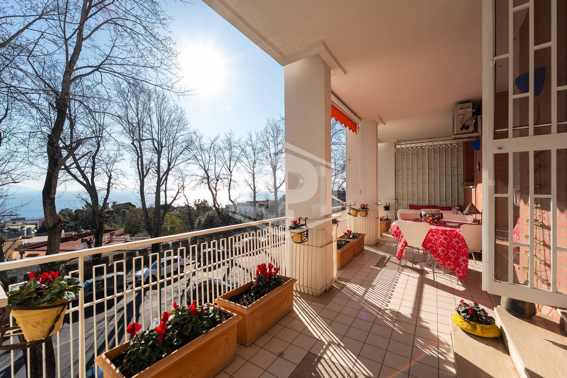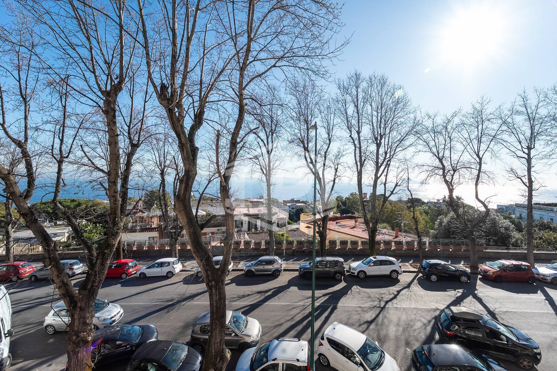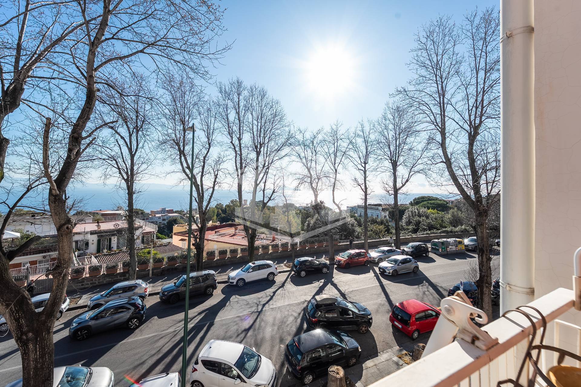 Situato al secondo piano di un elegante parco con guardiania e ascensore, questo luminoso appartamento offre una vista sul Golfo di Napoli.