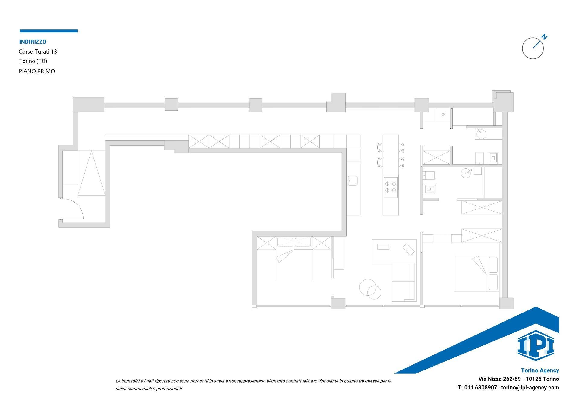 Appartamento di 110 mq composto da ingresso, ambiente open space con zona salotto e cucina, due camere da letto di cui una con cabina armadi e bagno interno, altro bagno con finestra.