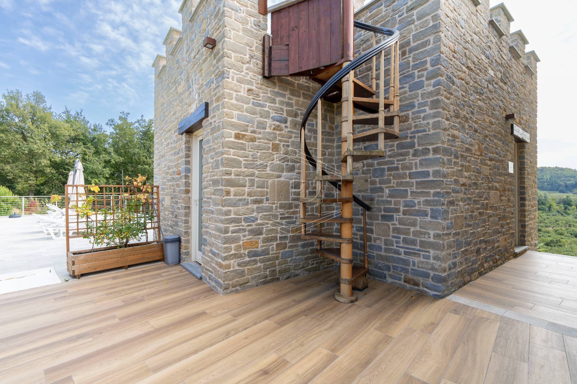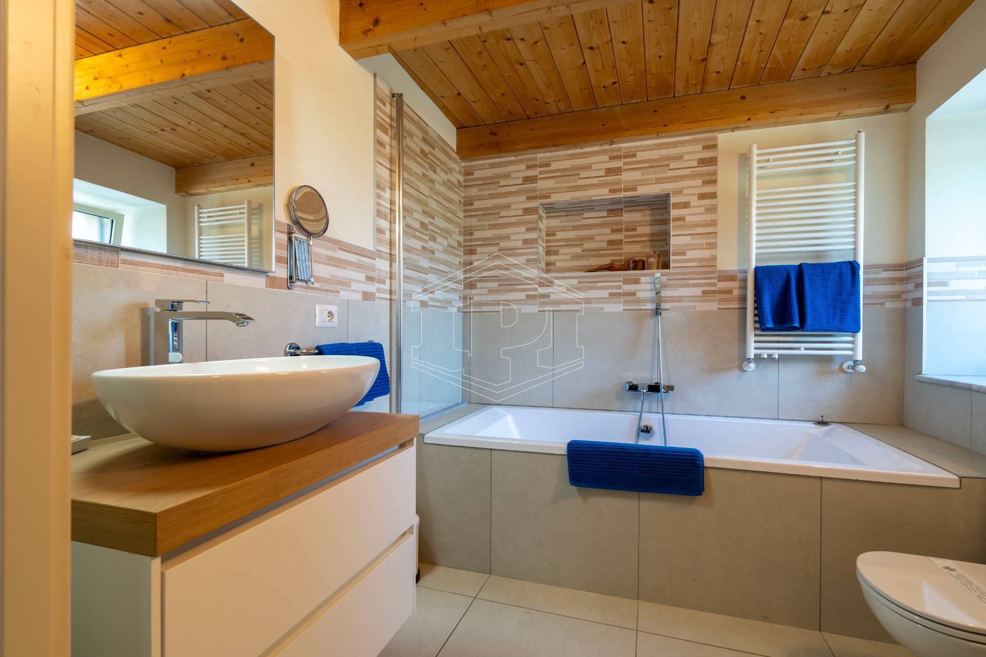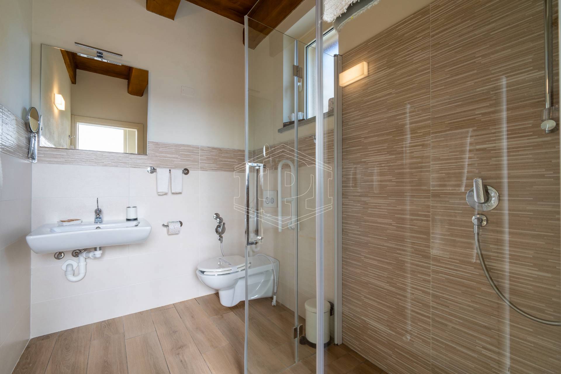 Al primo piano: altre tre camere matrimoniali con bagno interno privato, il tutto rifinito con materiali di pregio, locale lavanderia/servizio, piccolo disimpegno ad uso deposito.